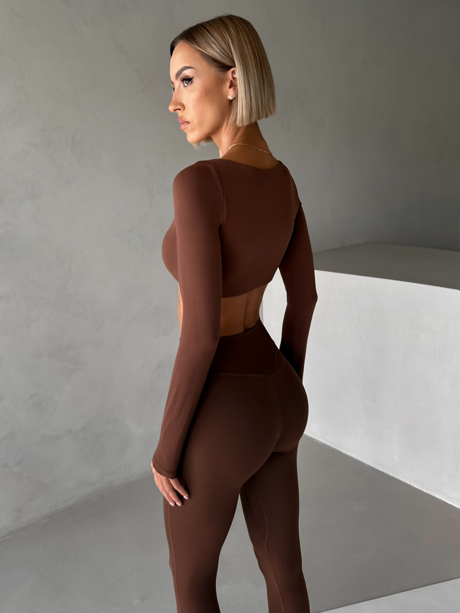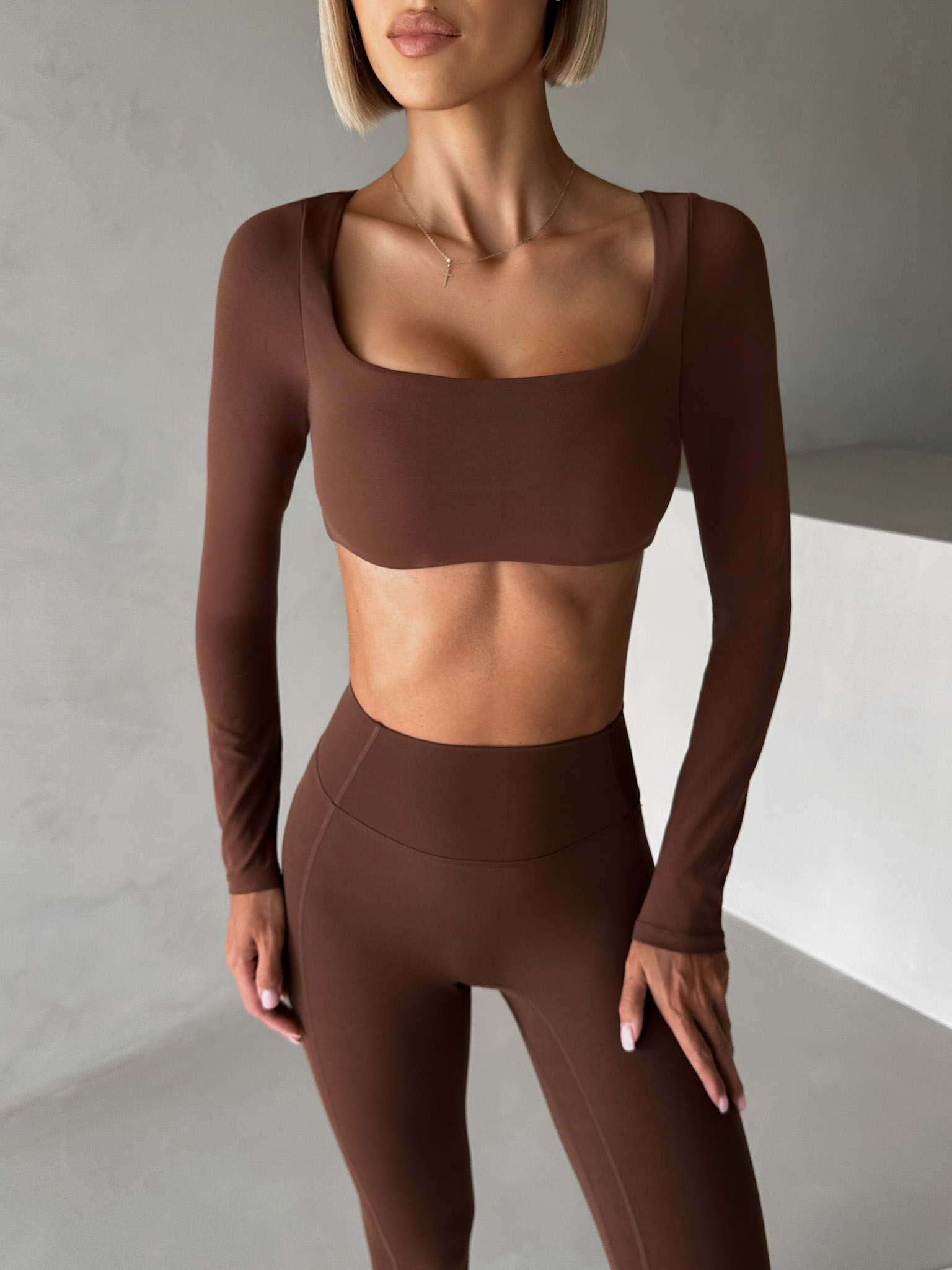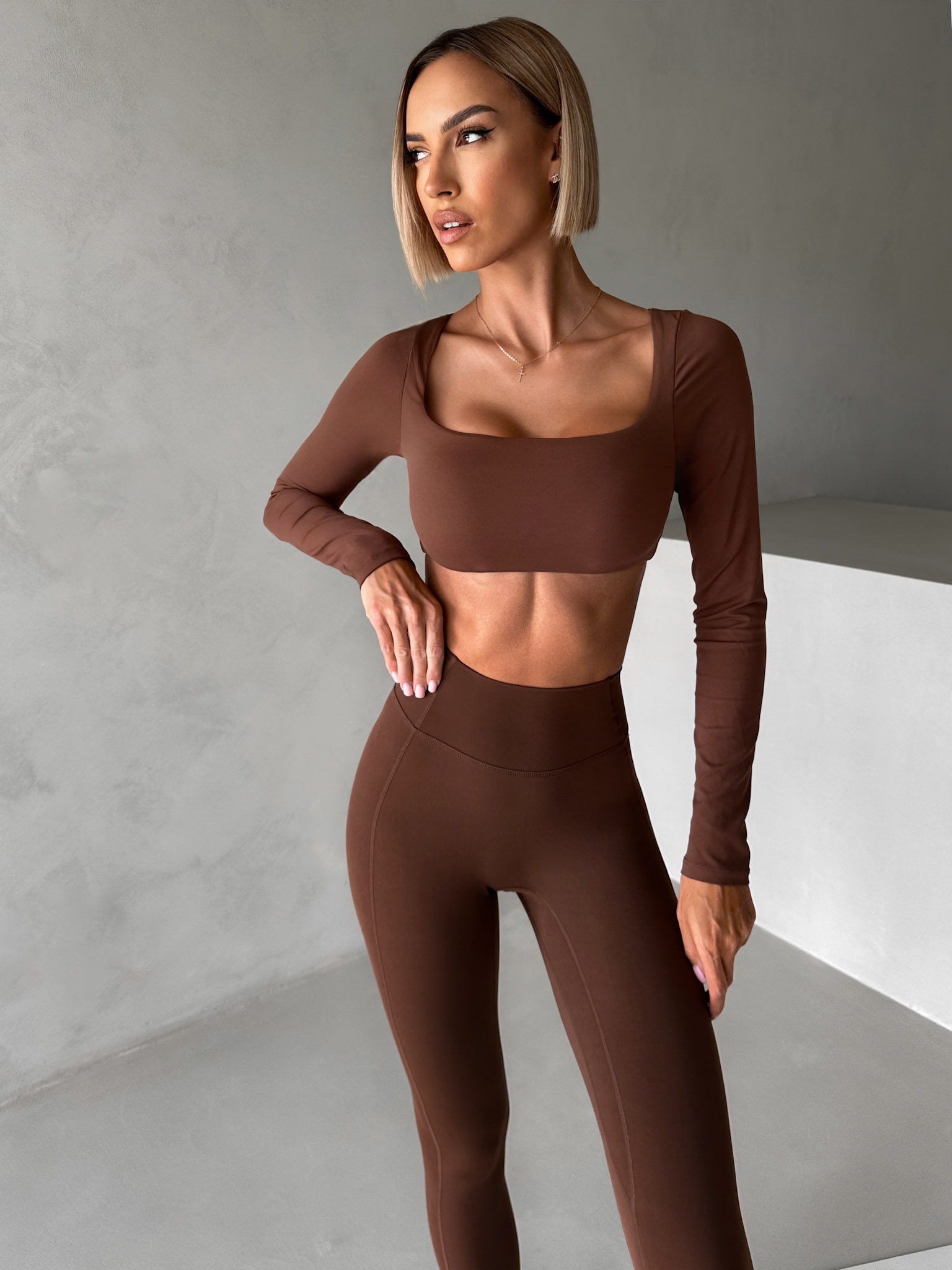 Hnědý jóga krátký top JIMELA s dlouhým rukávem Velikost: M