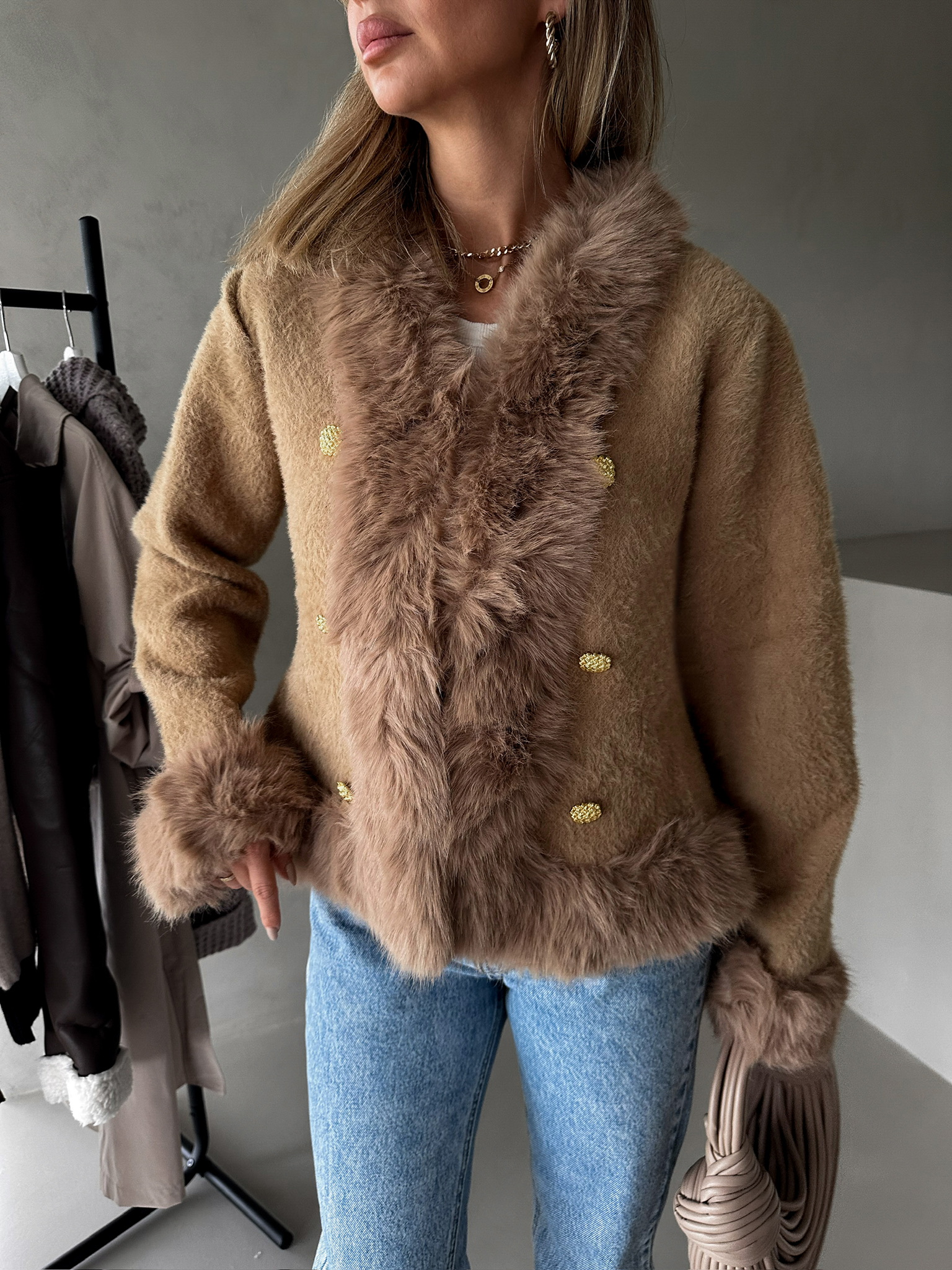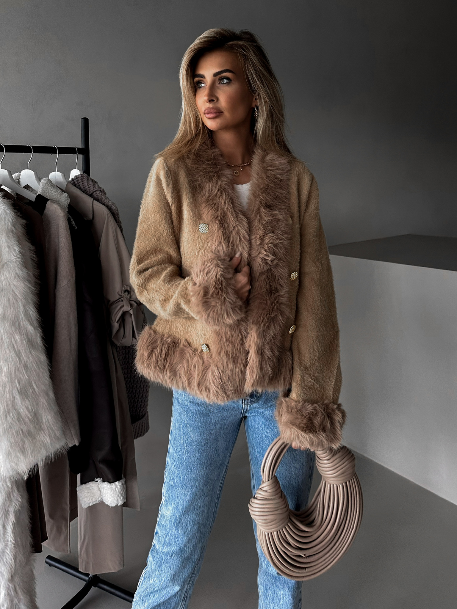 Hnědý kabátek s kožešinkou GIOIA na knoflíky Velikost: ONESIZE