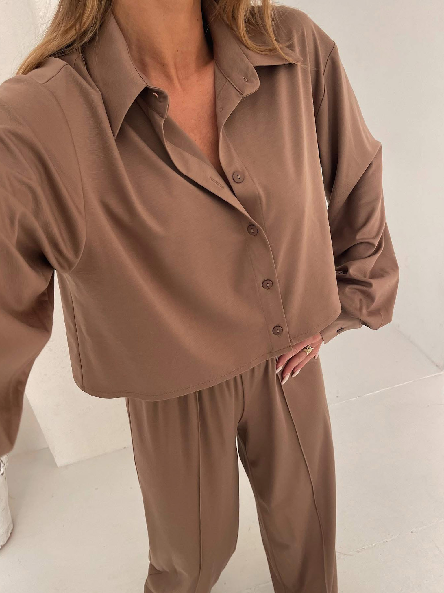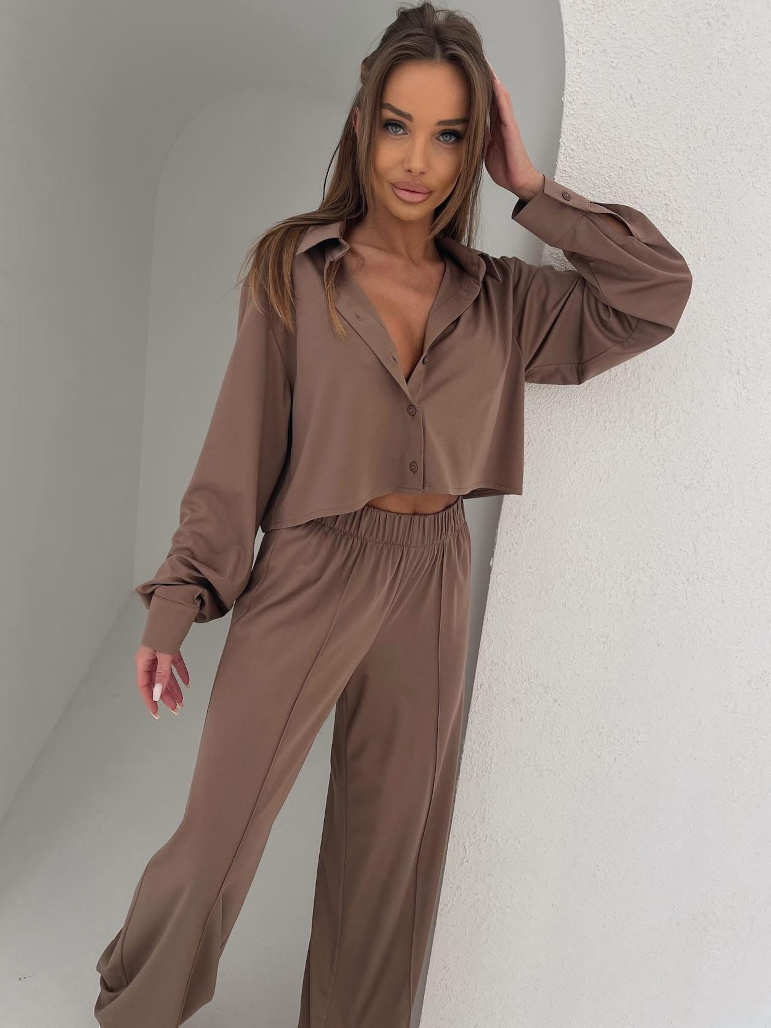 Hnědý kalhotový elegantní komplet COLEMYA Velikost: ONESIZE