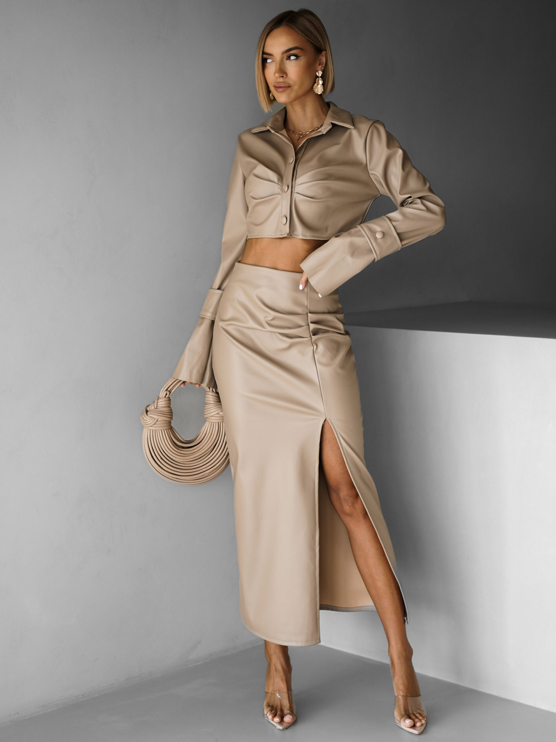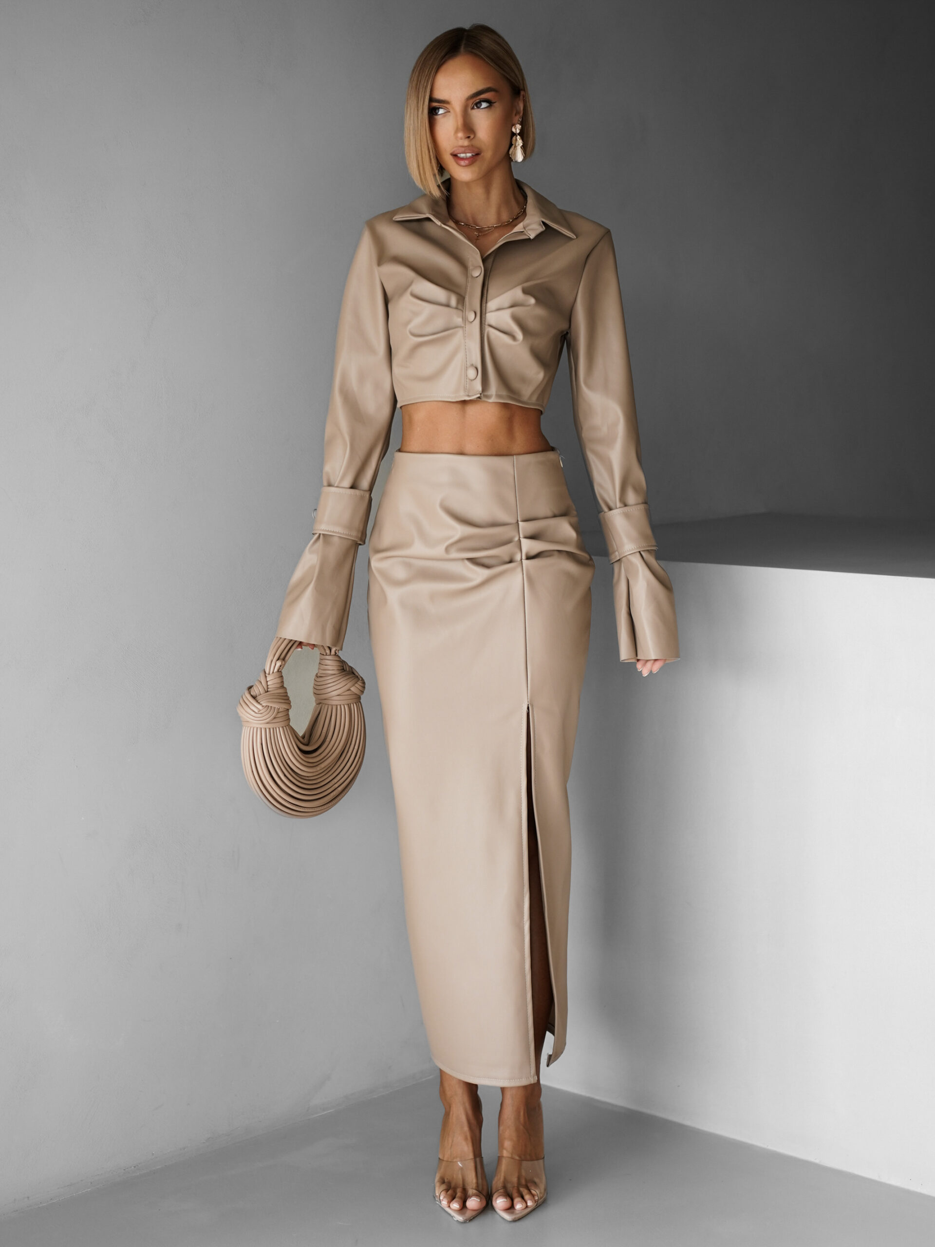 Hnědý koženkový komplet se sukní AVITAL Velikost: ONESIZE