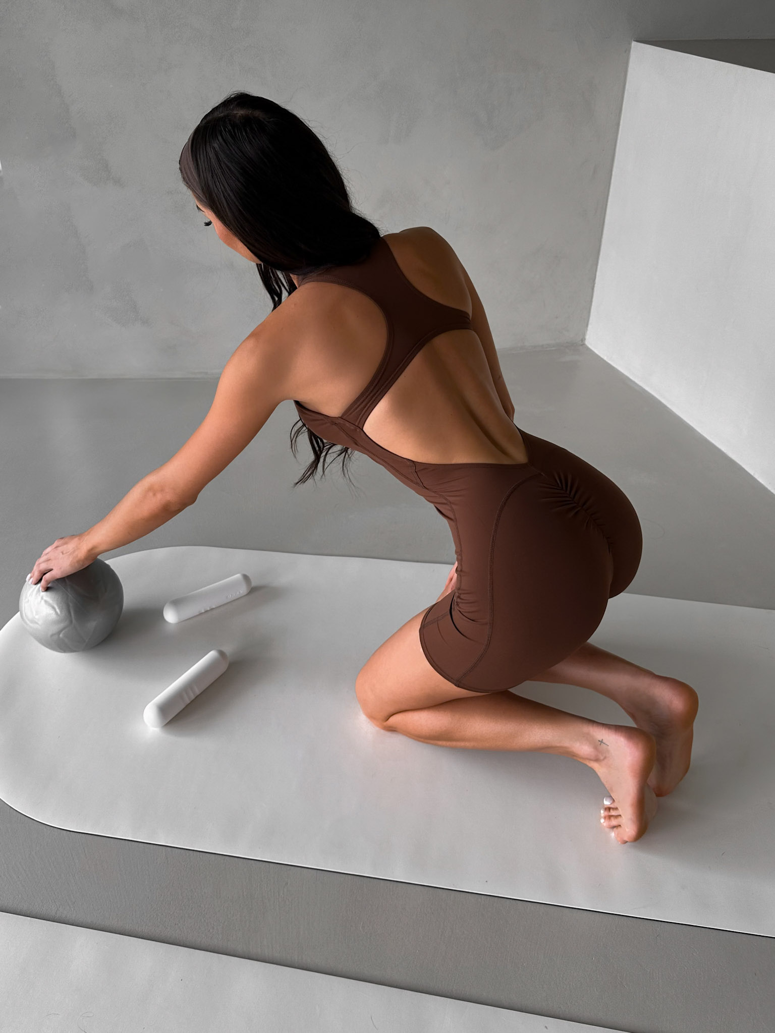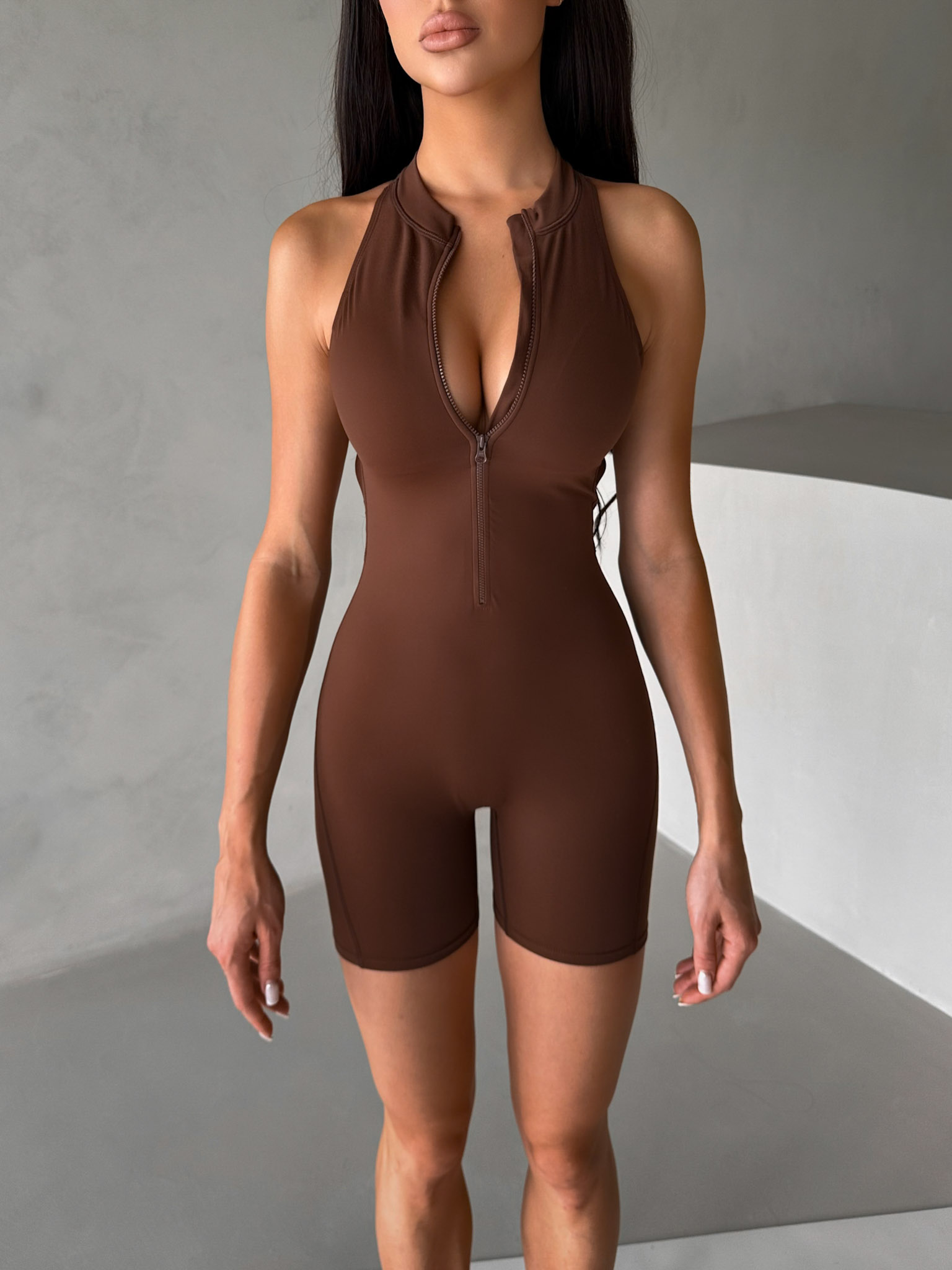 Hnědý krátký sportovní push up overal ULMORA Velikost: S