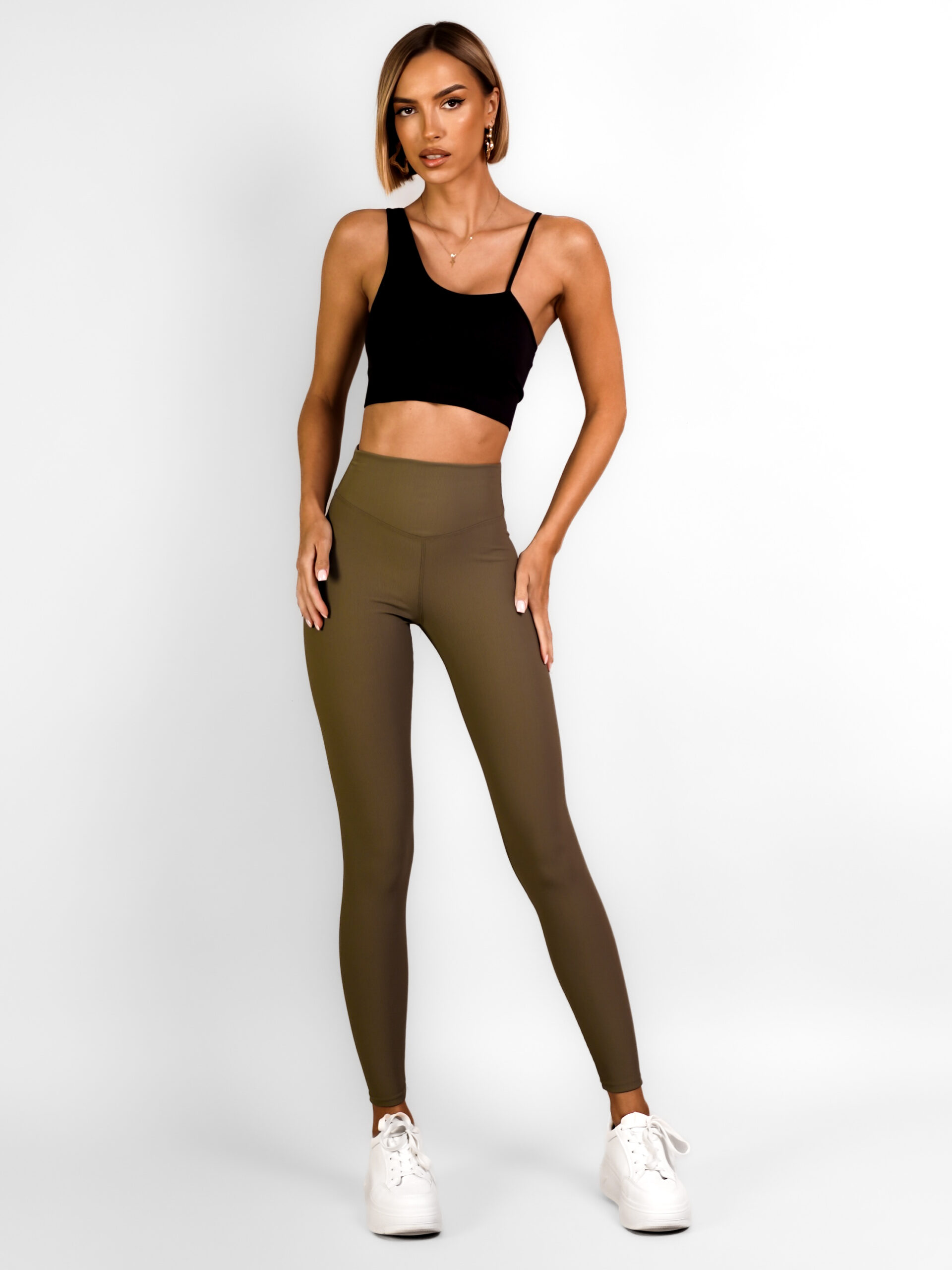 Khaki basic sportovní elastické legíny AVOSIA Velikost: S/M
