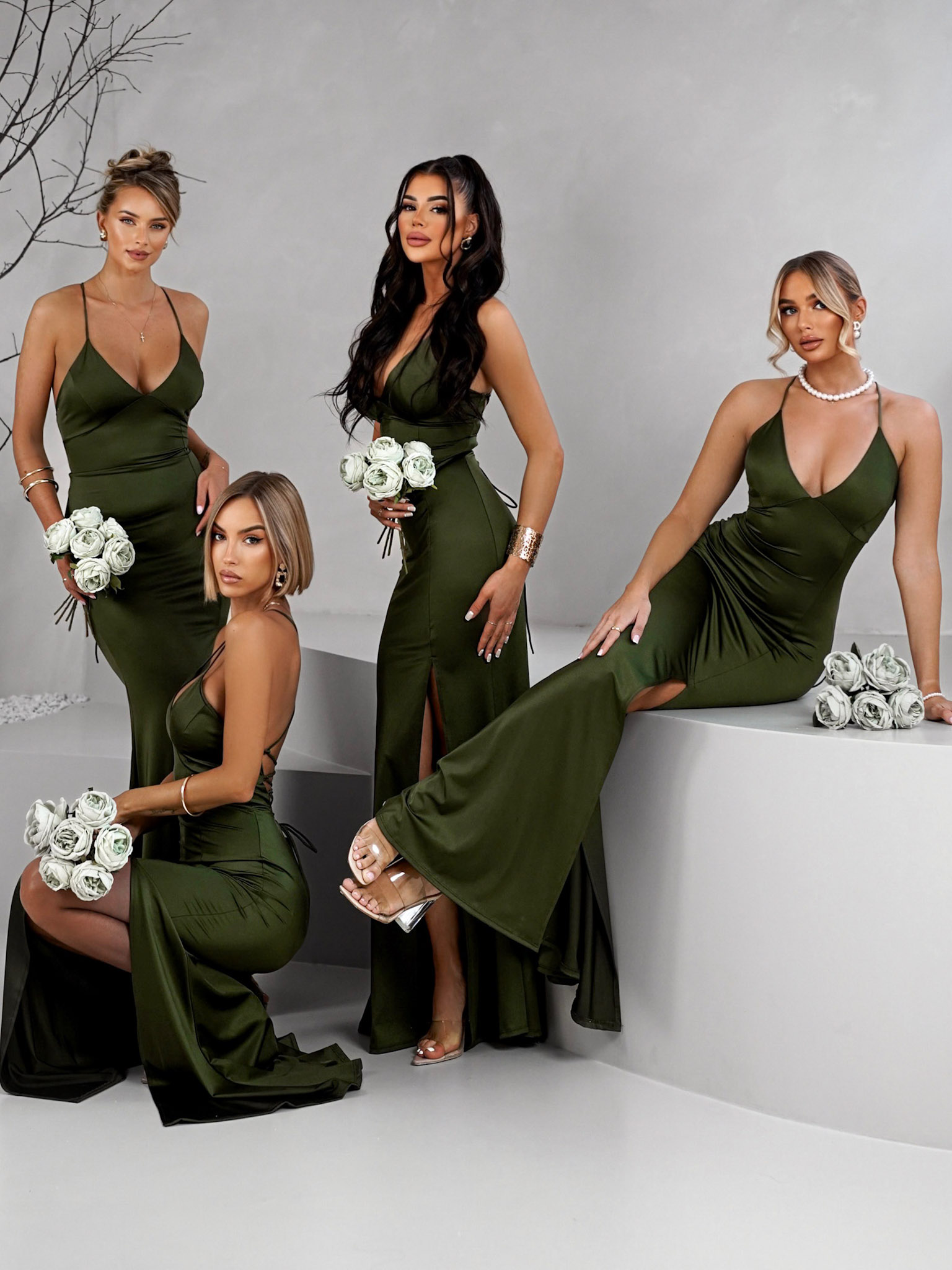 Khaki dlouhé šaty ERIKAL pro družičky s rozparkem Velikost: ONESIZE