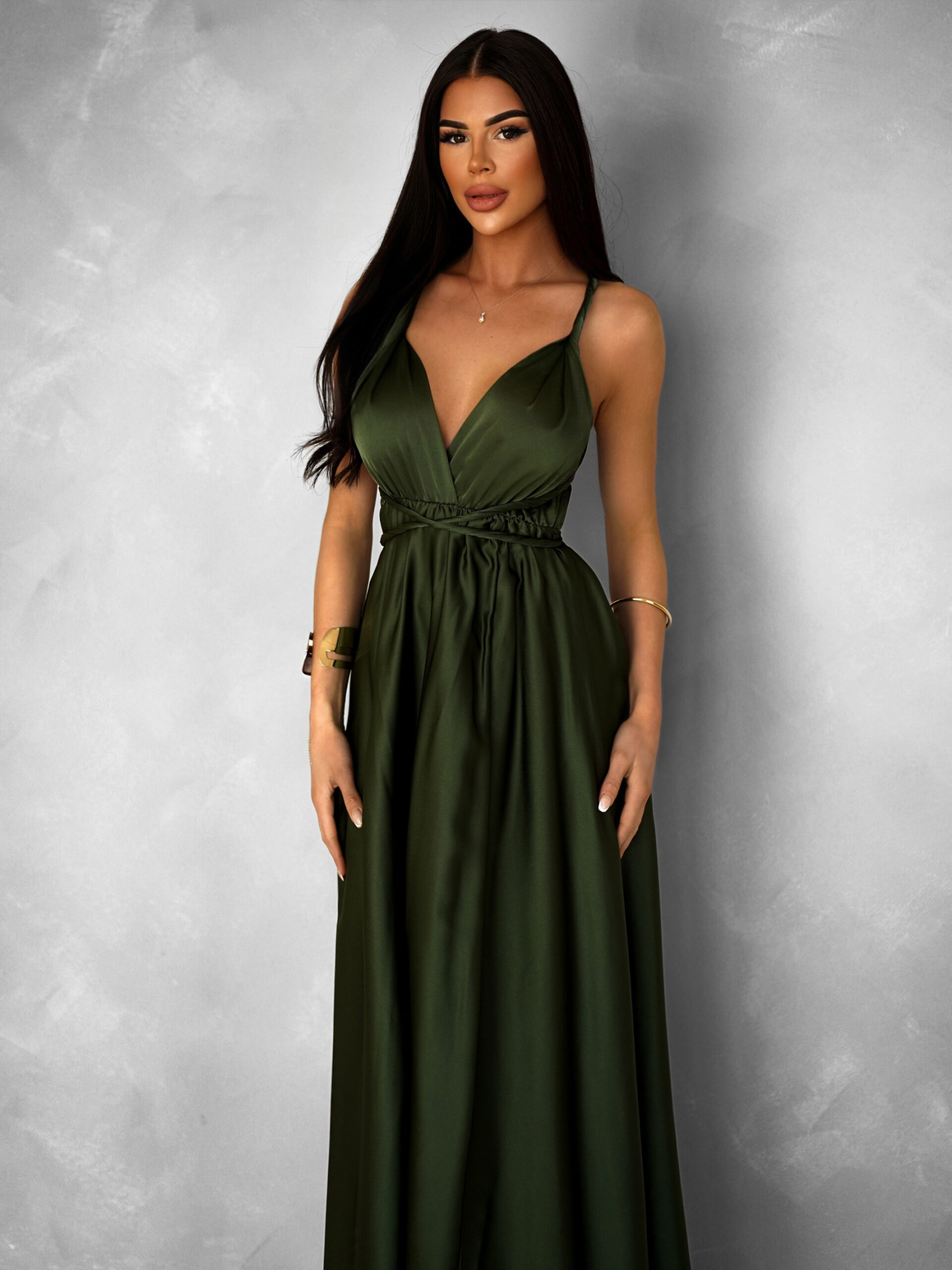Tyto nádherné šaty jsou dokonalou volbou pro plesy i jako družičkovské šaty. Lesklý materiál dodává luxusní vzhled, zatímco rozparek přidává špetku sexy vzhledu. Variabilní vázání zajišťuje perfektní padnutí pro všechny typy postavy. Ideální kombinace elegance a pohodlí, která vás promění v hvězdu každé společenské události.
