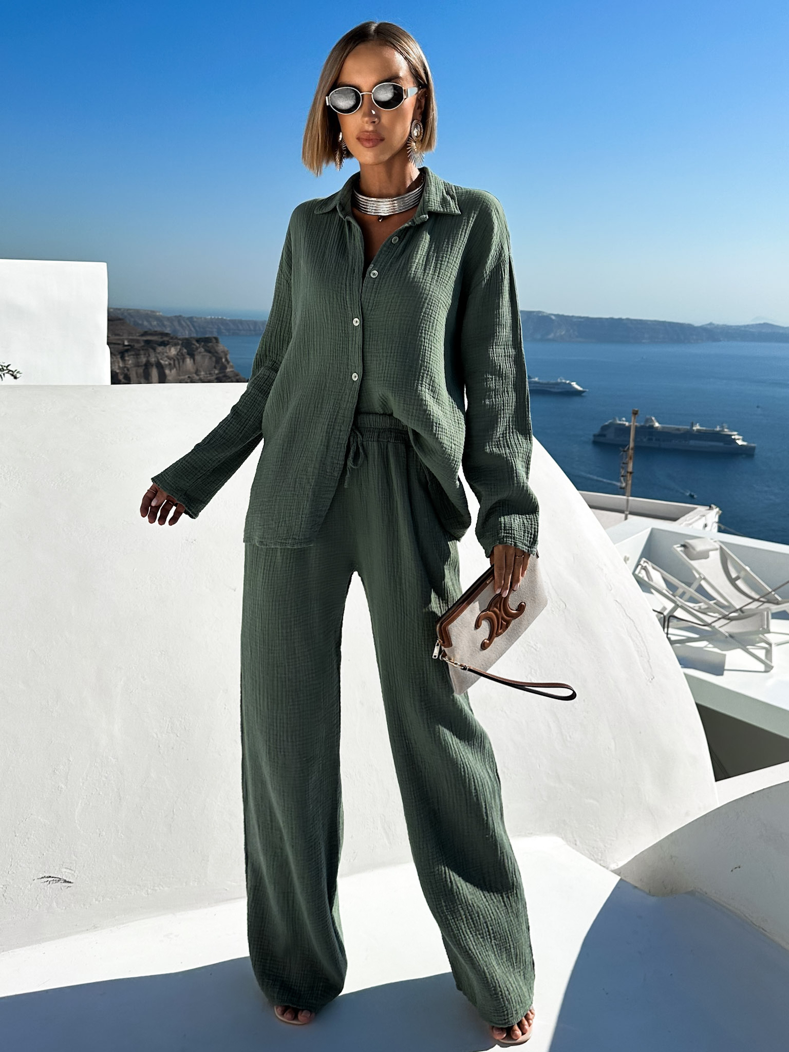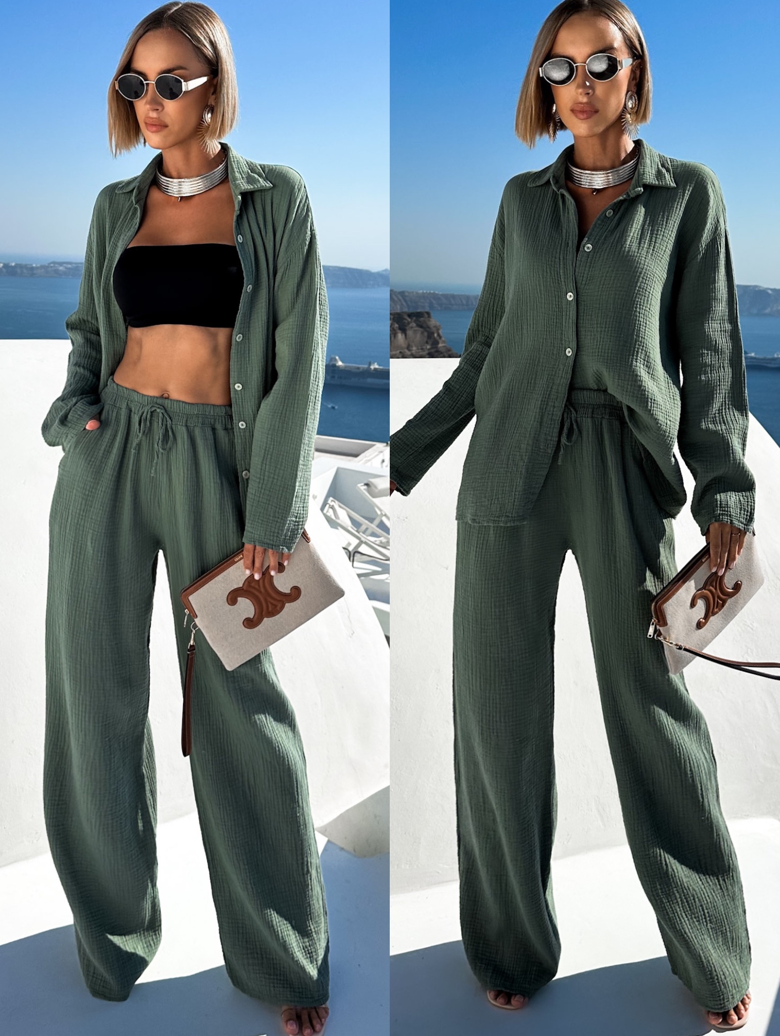 Khaki kalhotový mušelínový komplet THEIA s košilí Velikost: ONESIZE