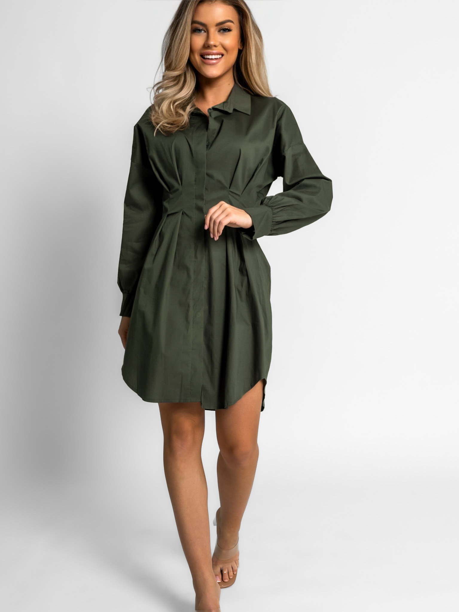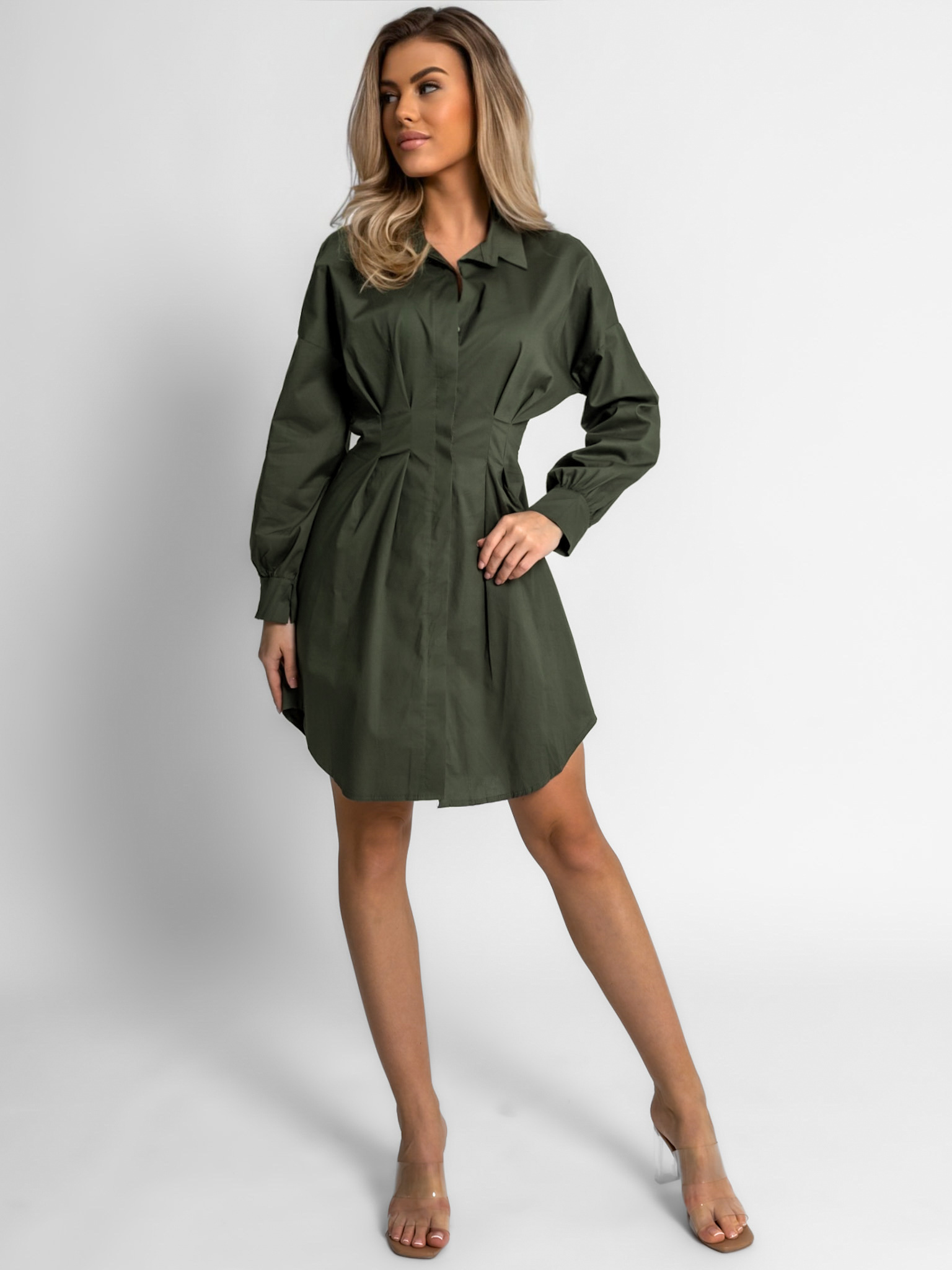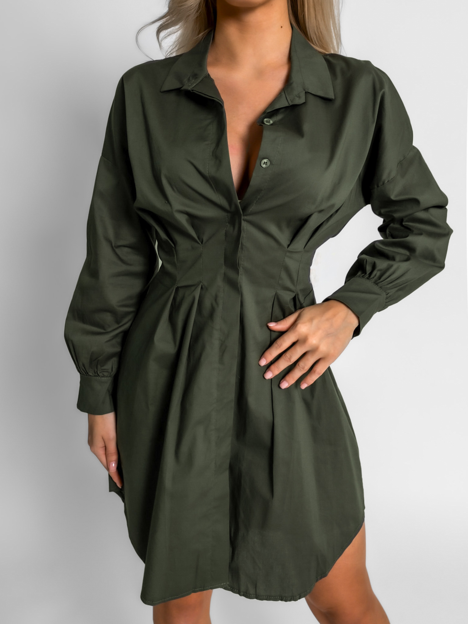 Khaki košilové šaty SIERRA na knoflíky