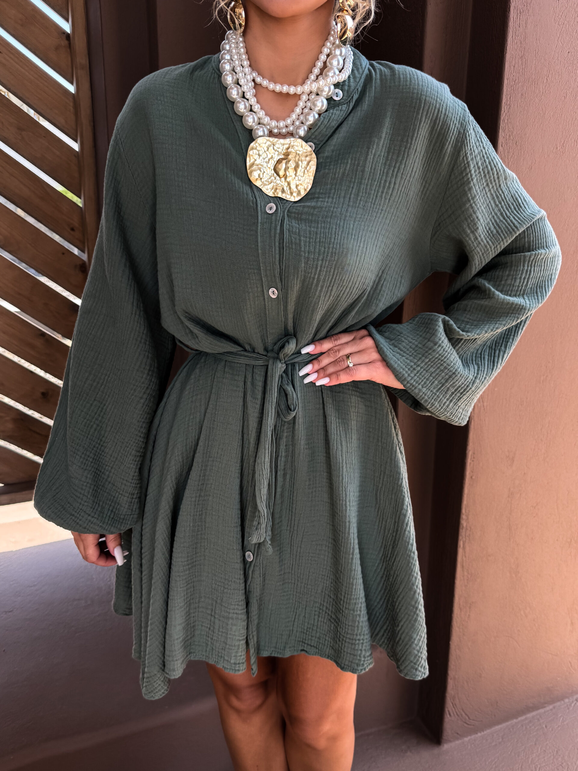 Khaki krátké košilové mušelínové šaty STEFANIE Velikost: ONESIZE