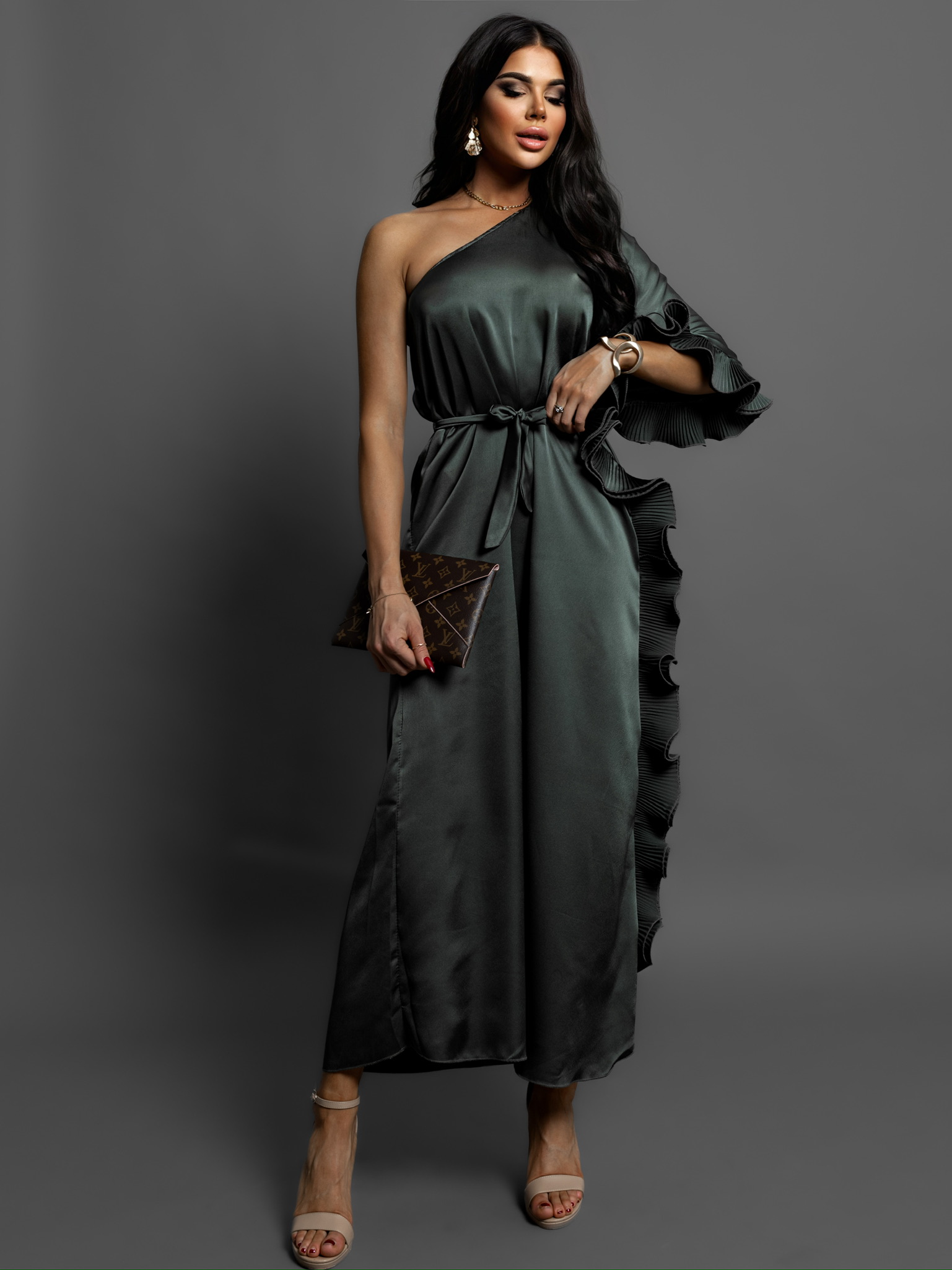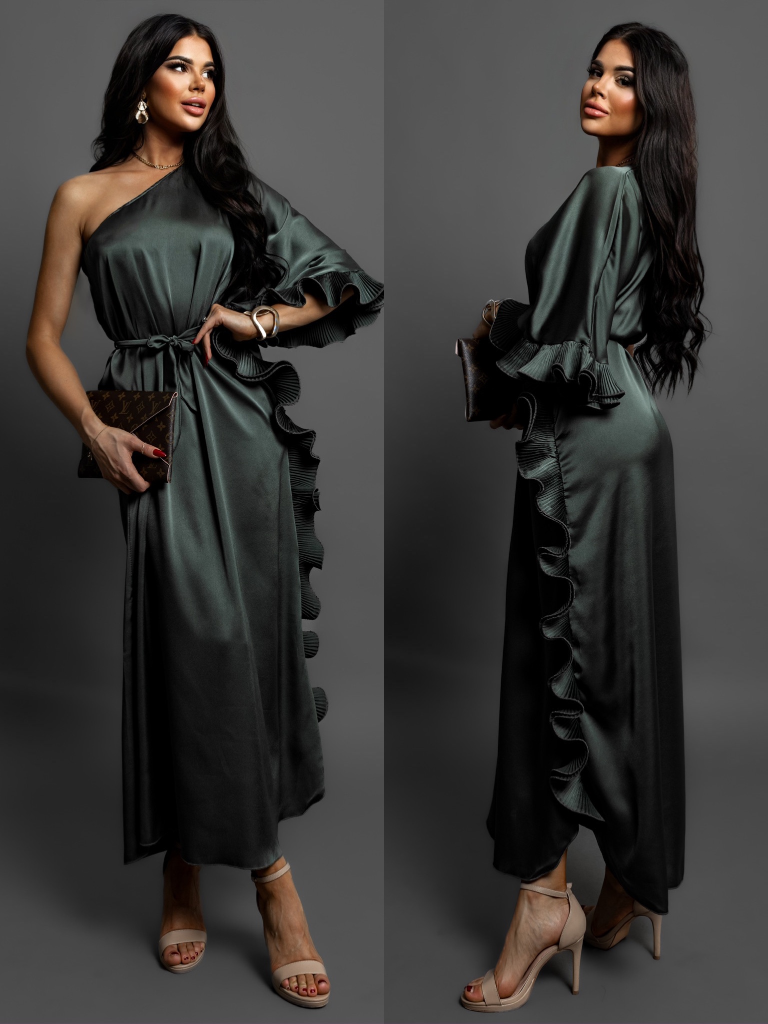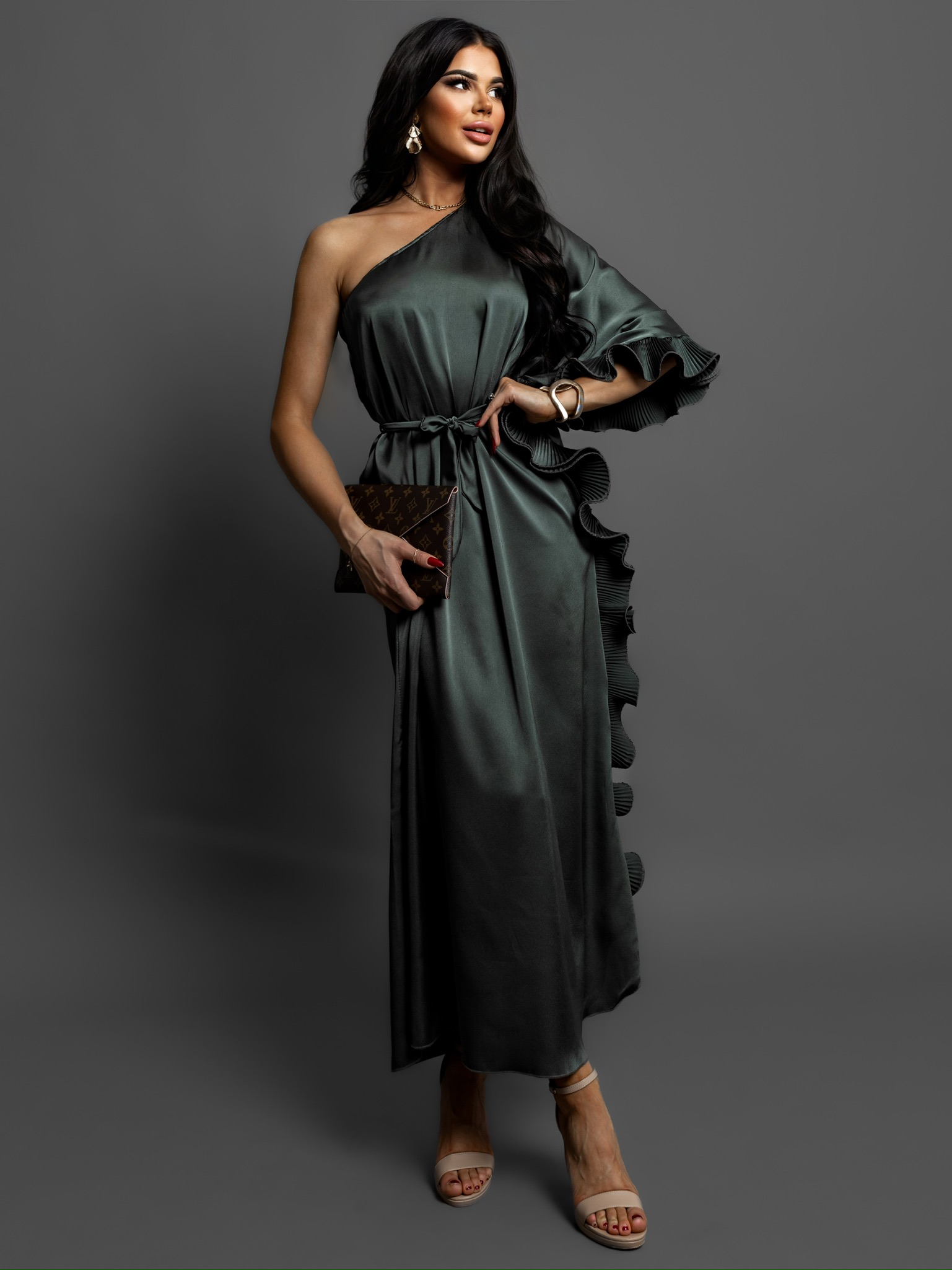 Khaki volánkové šaty DORRY přes jedno rameno Velikost: ONESIZE