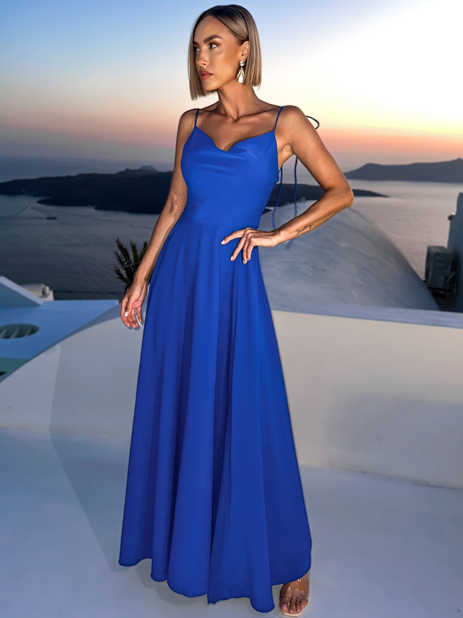 Královsky modré dlouhé splývavé šaty LERDISEL Velikost: ONESIZE