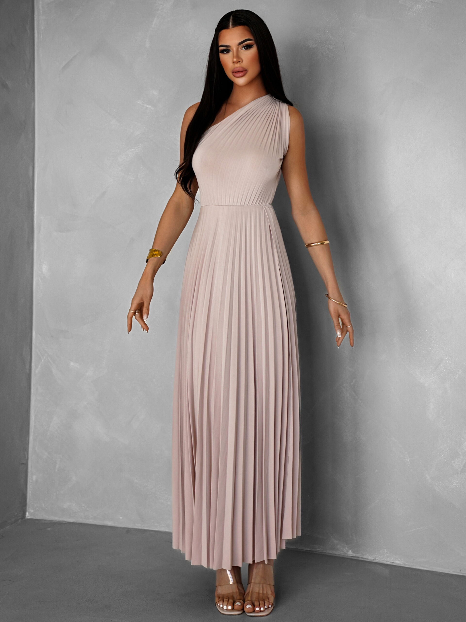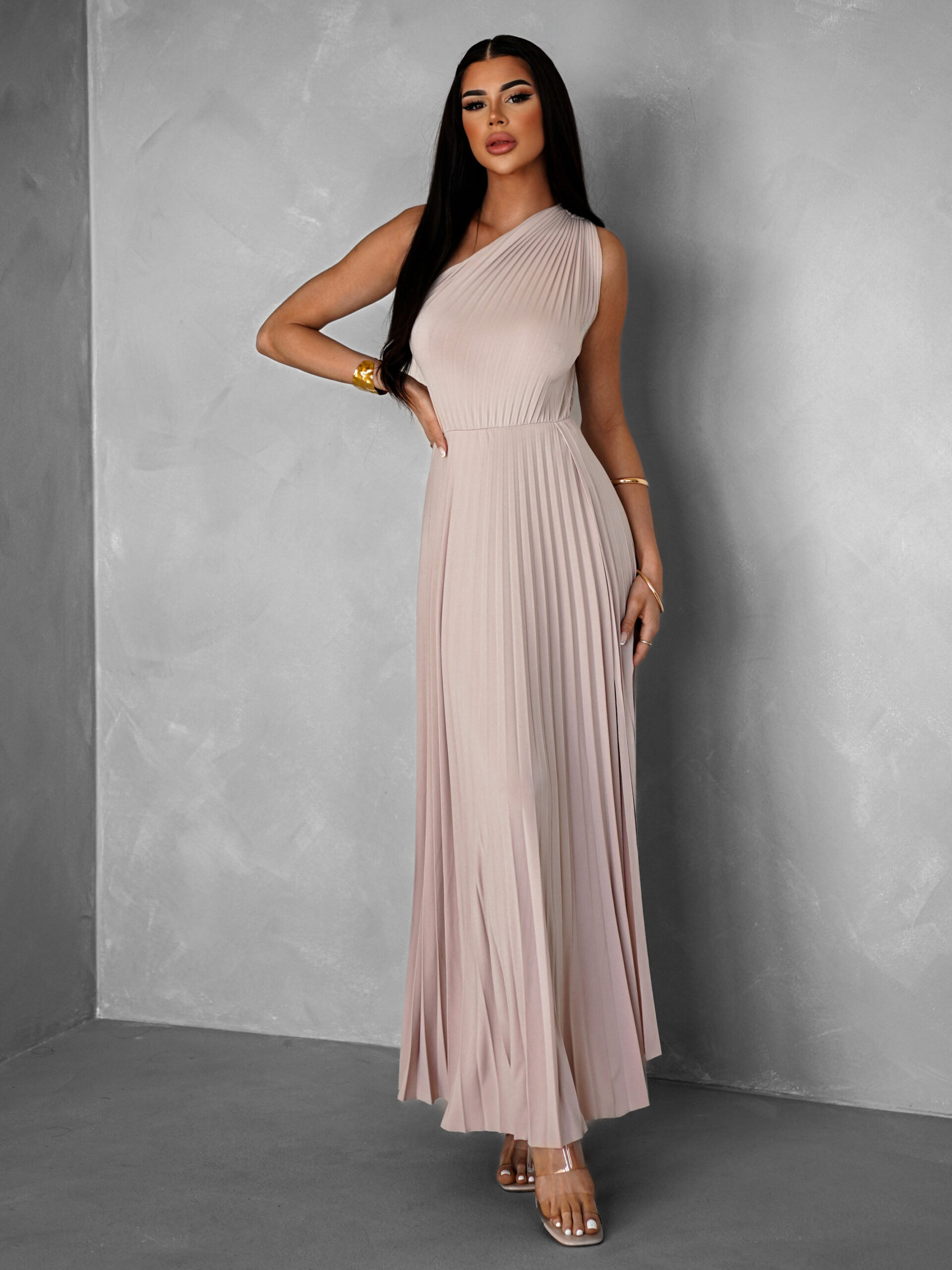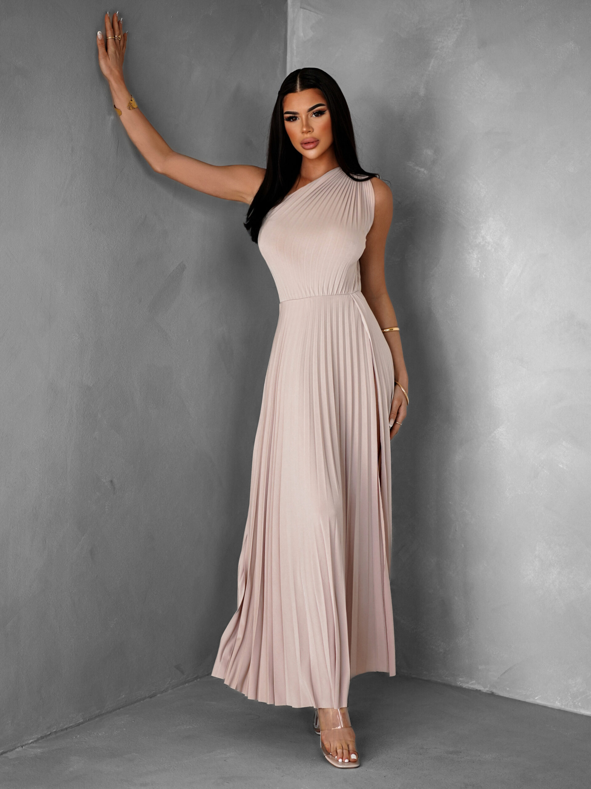 Krémové asymetrické plisované šaty OLIVIE Velikost: ONESIZE