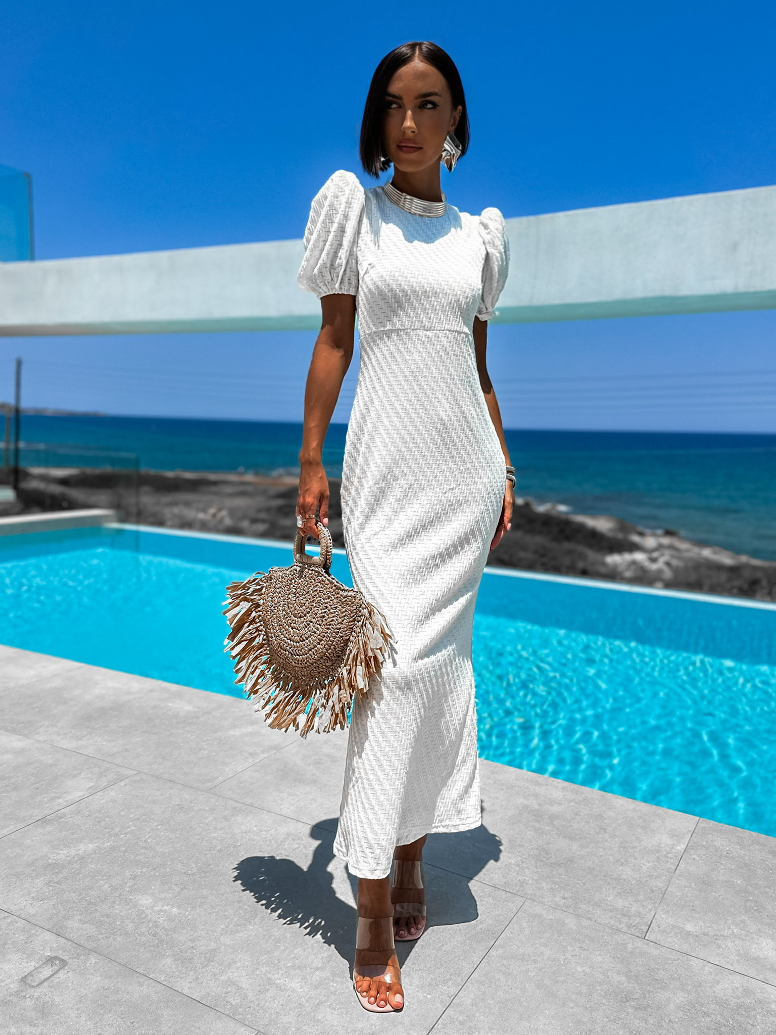 Krémové dlouhé elegantní šaty MATTHISEN Velikost: M/L