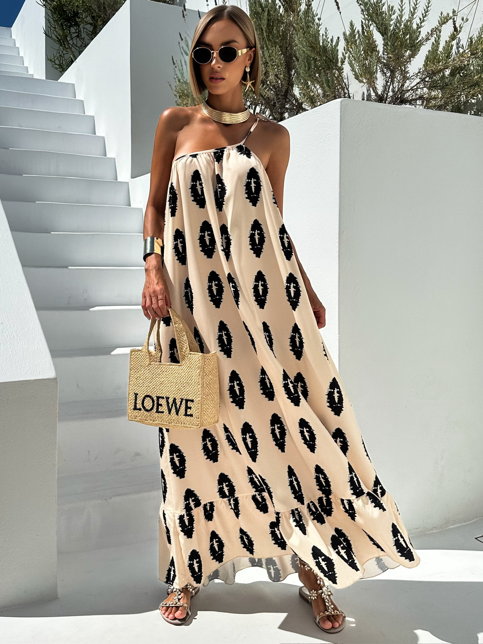 Krémové dlouhé maxi šaty STEFAL na jedno rameno Velikost: ONESIZE