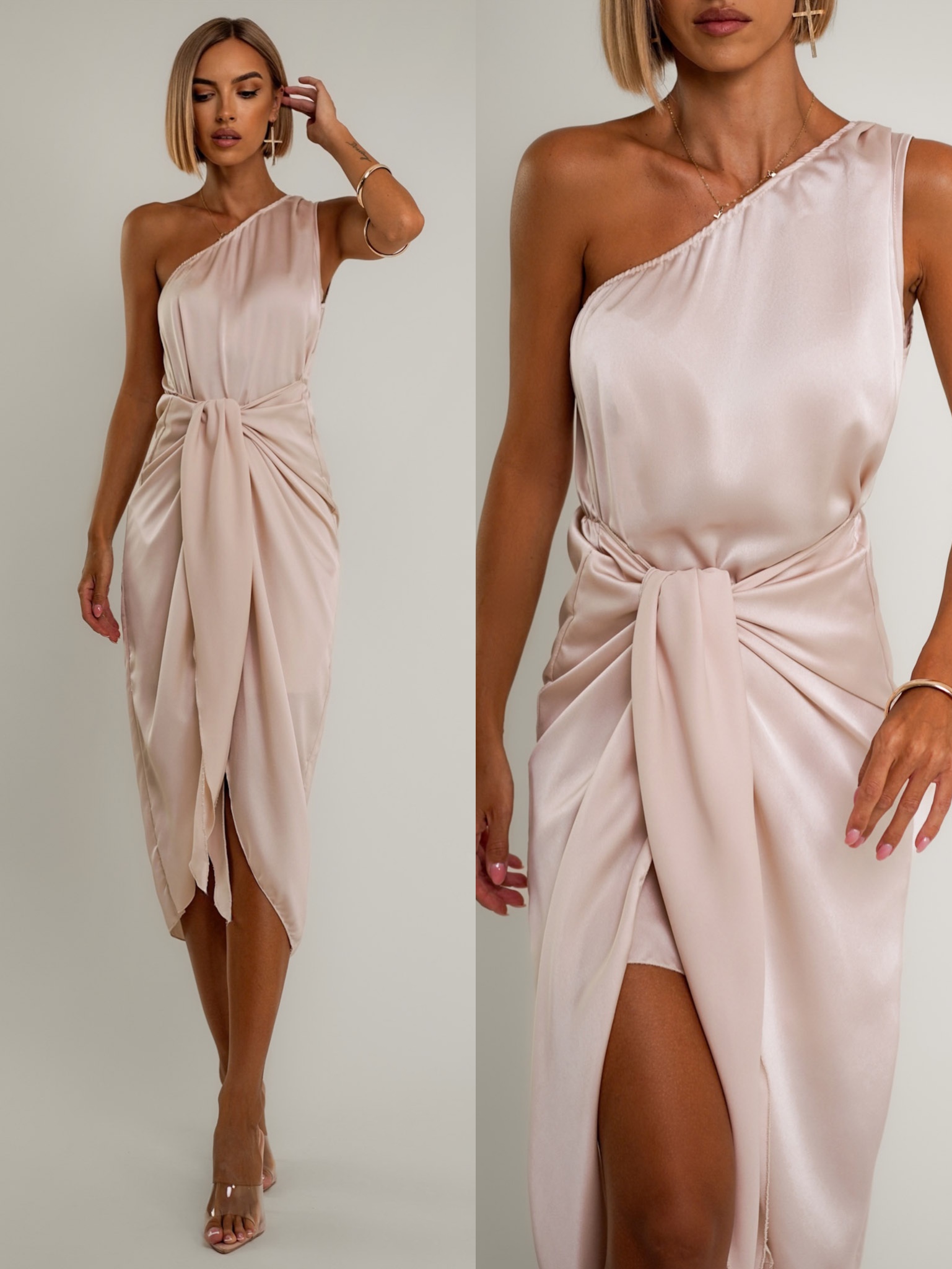 Krémové elegantní šaty LIBIOSI na jedno rameno Velikost: ONESIZE - Obrázek 2