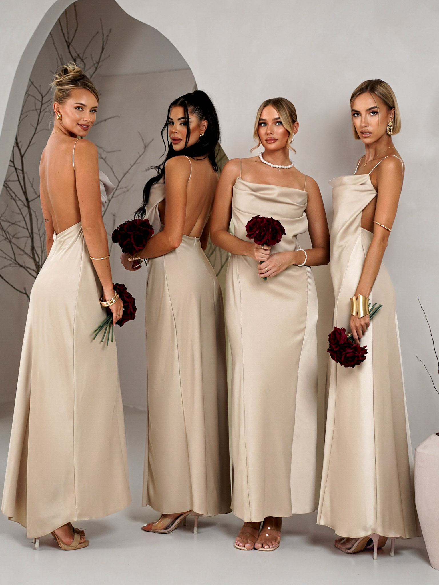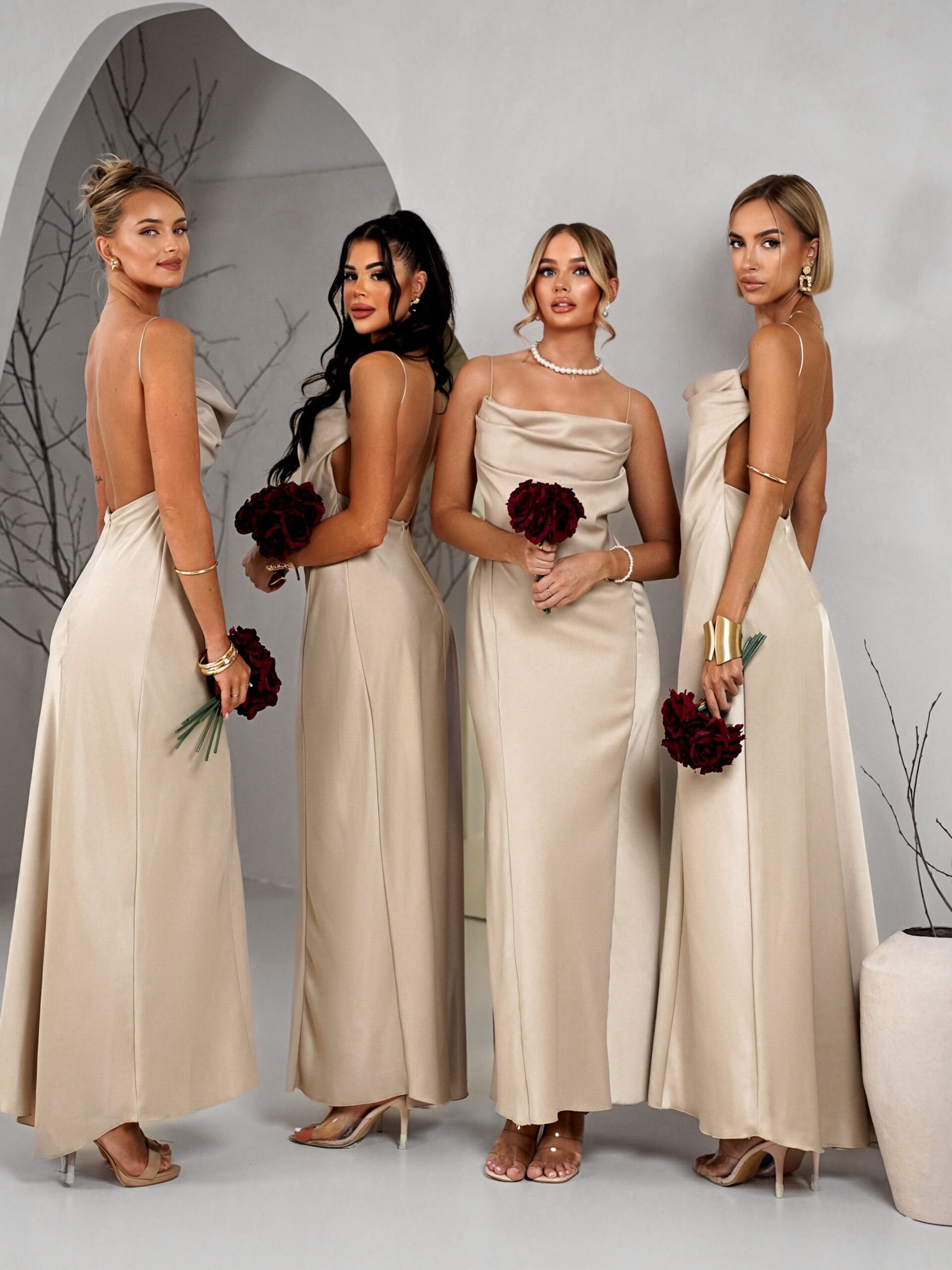Krémové saténové šaty UNUTA pro družičky Velikost: ONESIZE