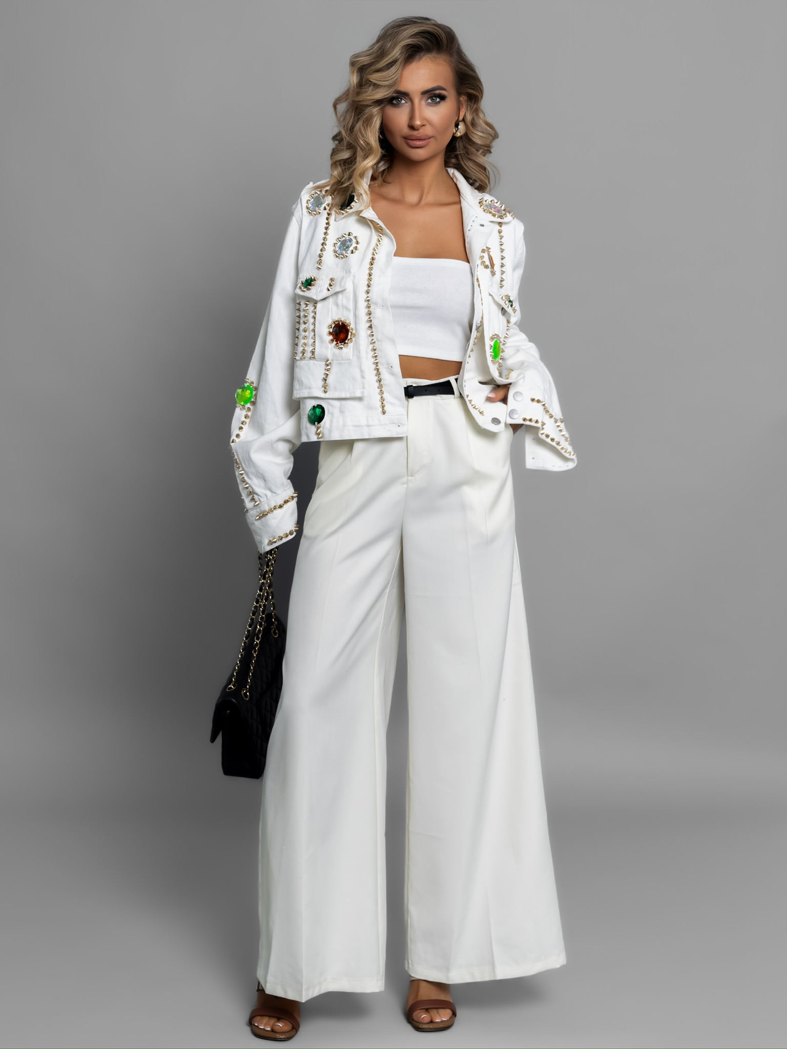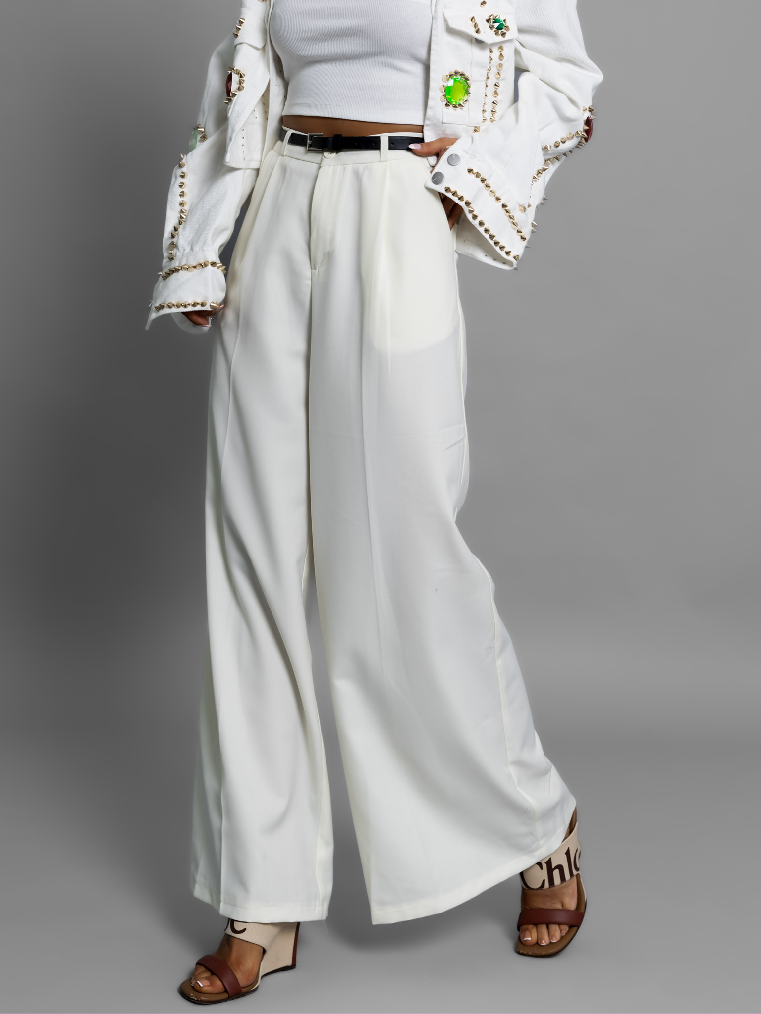 Krémové společenské široké kalhoty BERGAMOT s páskem Velikost: L