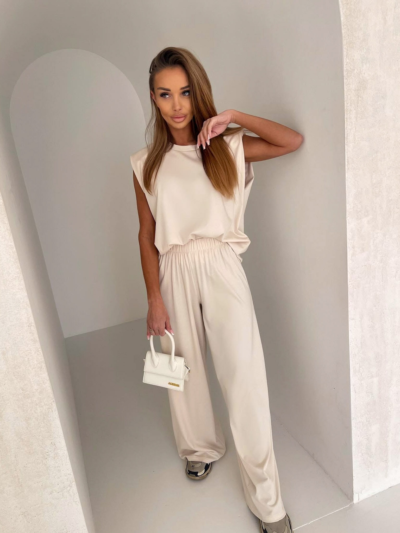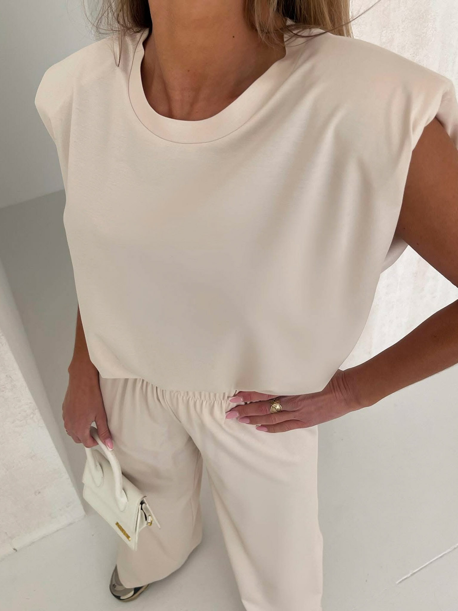 Krémový basic kalhotový stylový komplet CORINE Velikost: ONESIZE