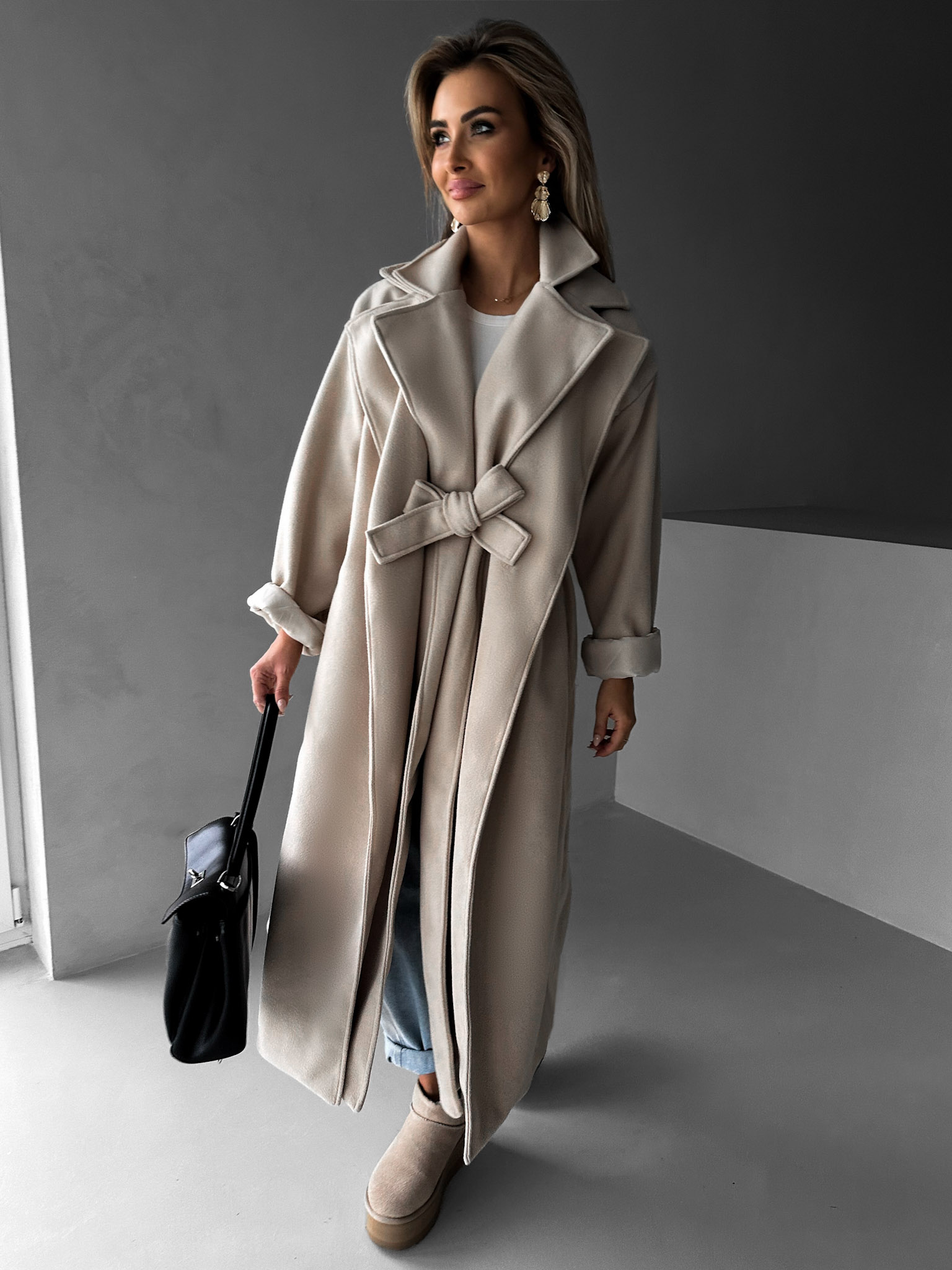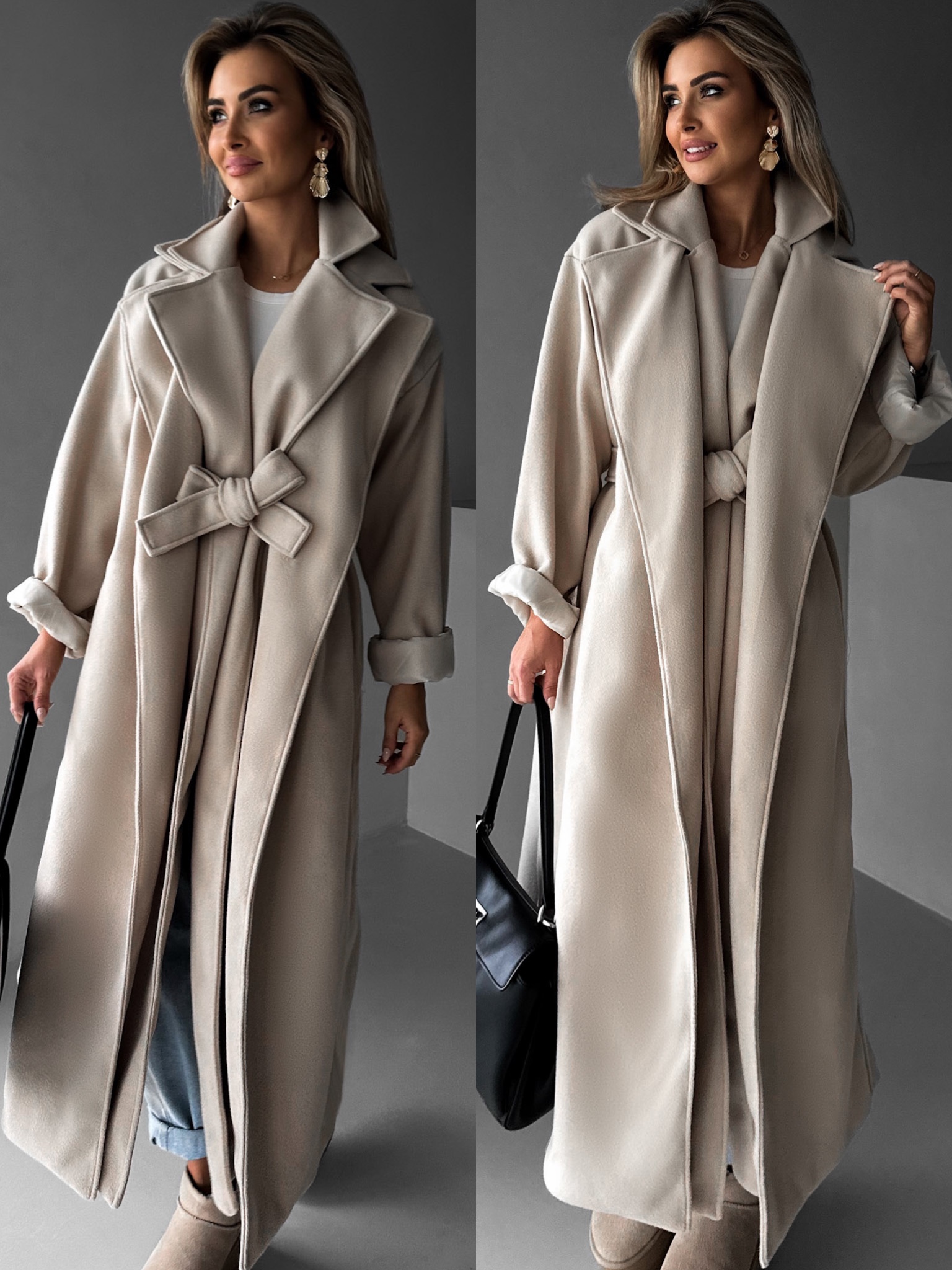 Krémový dlouhý variabilní flaušový kabát KALDEM Velikost: ONESIZE