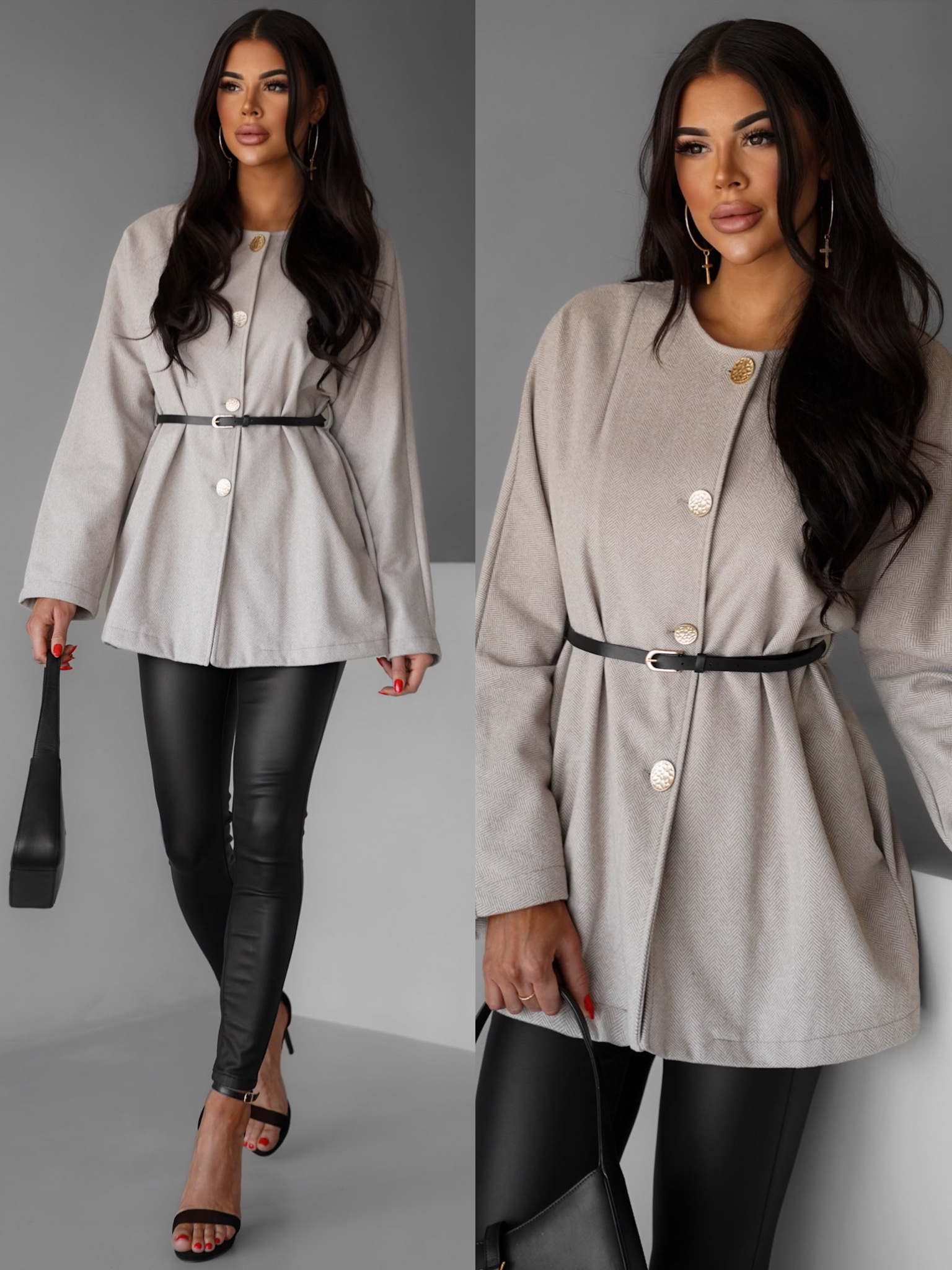 Krémový krátký kabátek DREWYN s páskem Velikost: ONESIZE