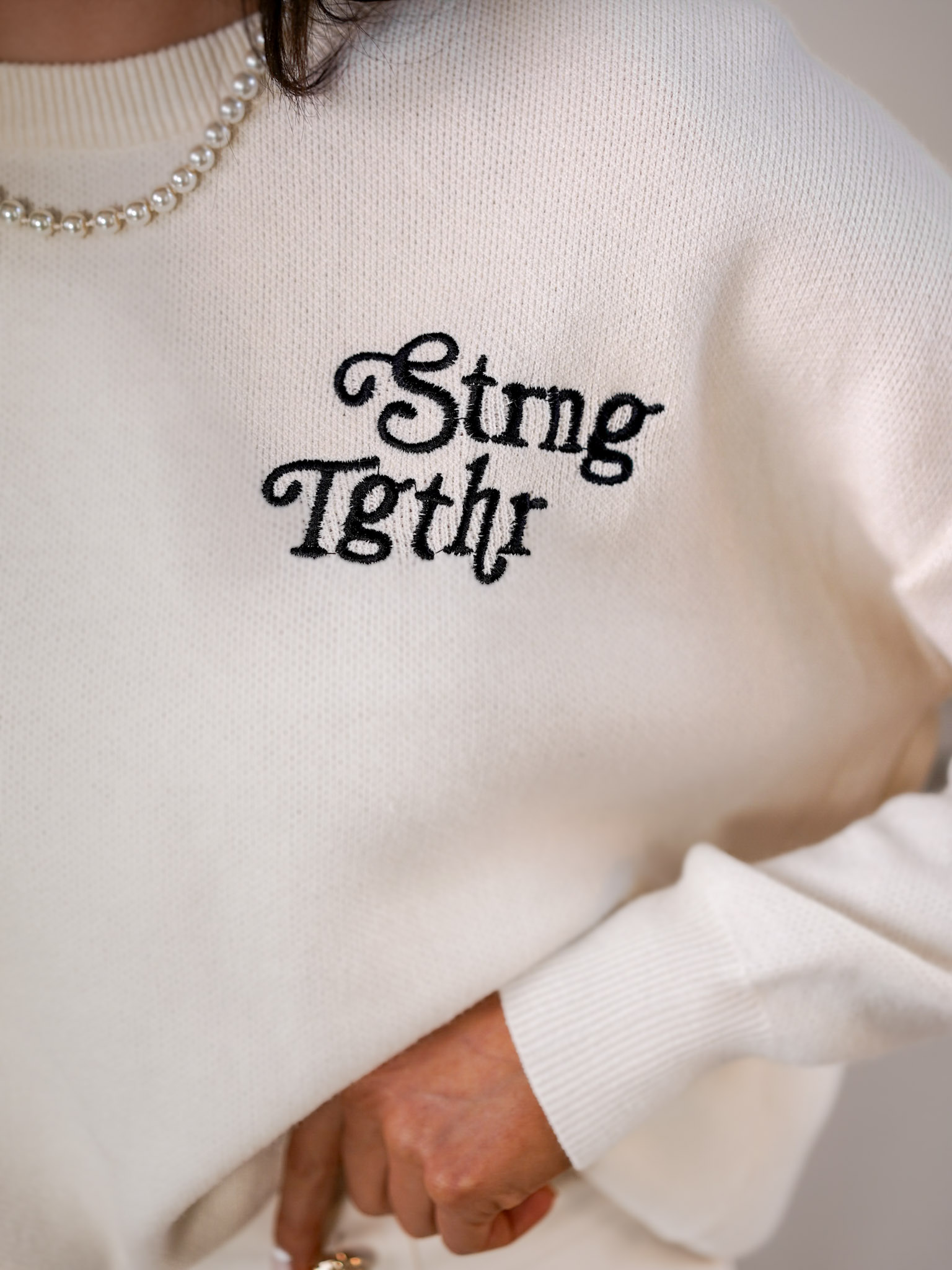 Krémový oversize svetřík MARIE s černou výšivkou Velikost: ONESIZE