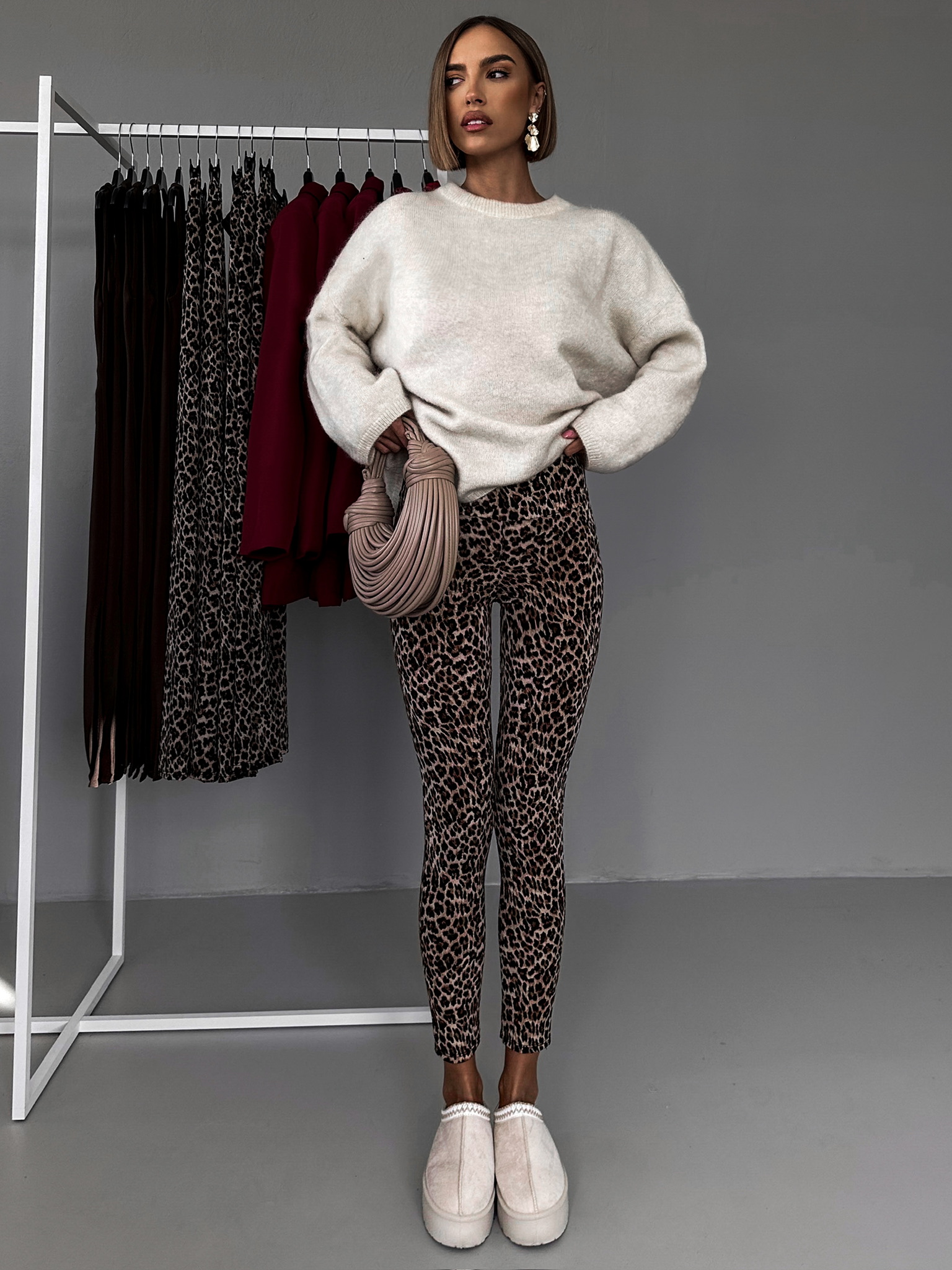 Leopardí elastické legíny DARYNKA s vyšším pasem Velikost: ONESIZE