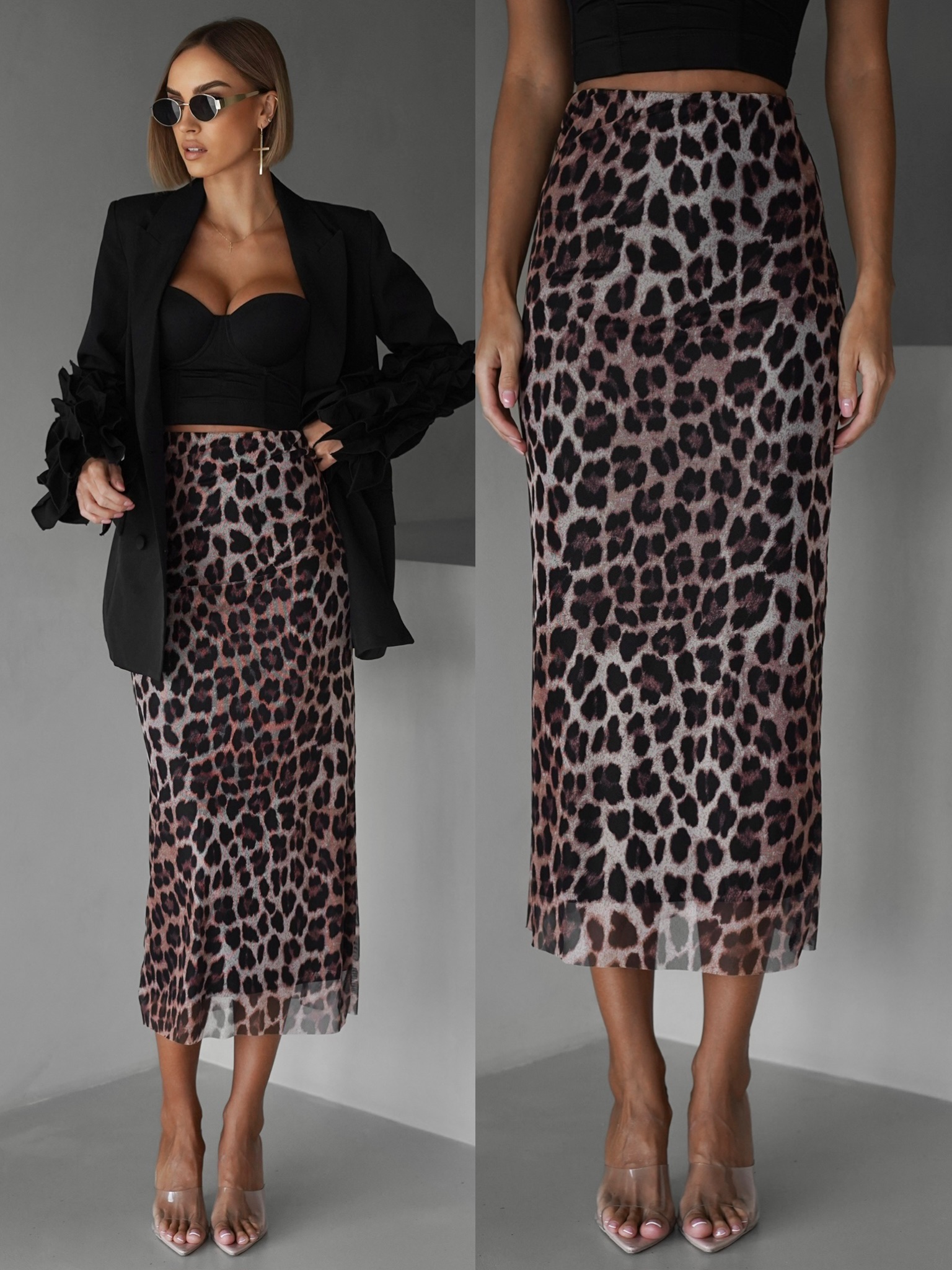 Leopardí elegantní midi sukně SLOZTH Velikost: ONESIZE