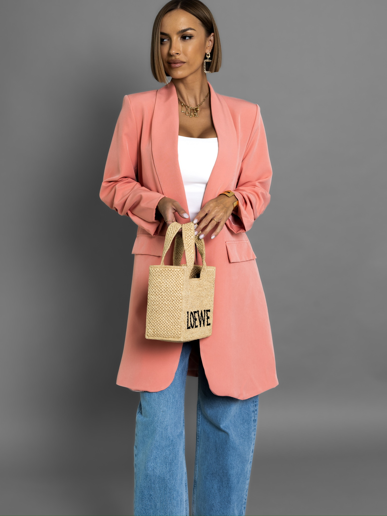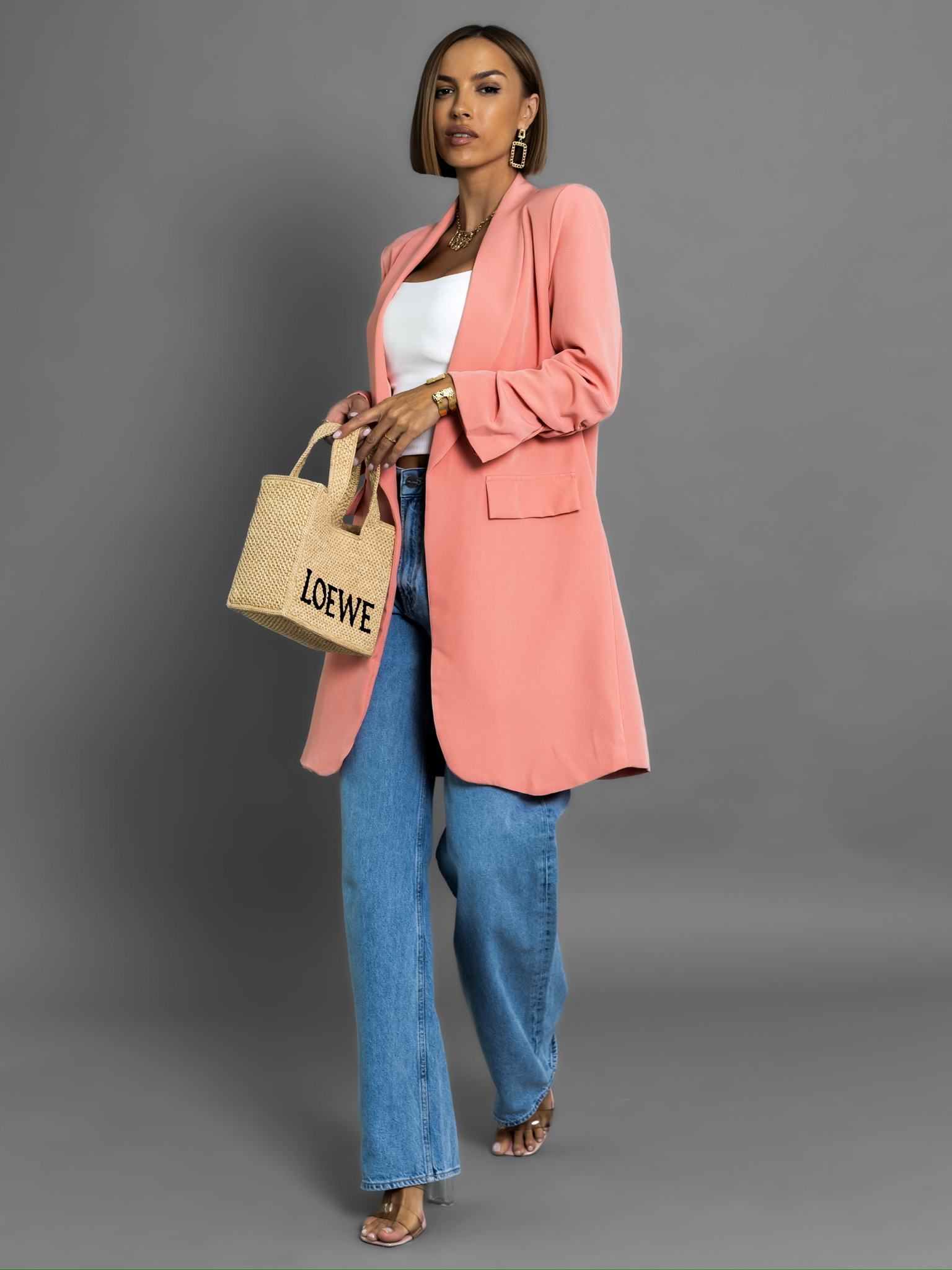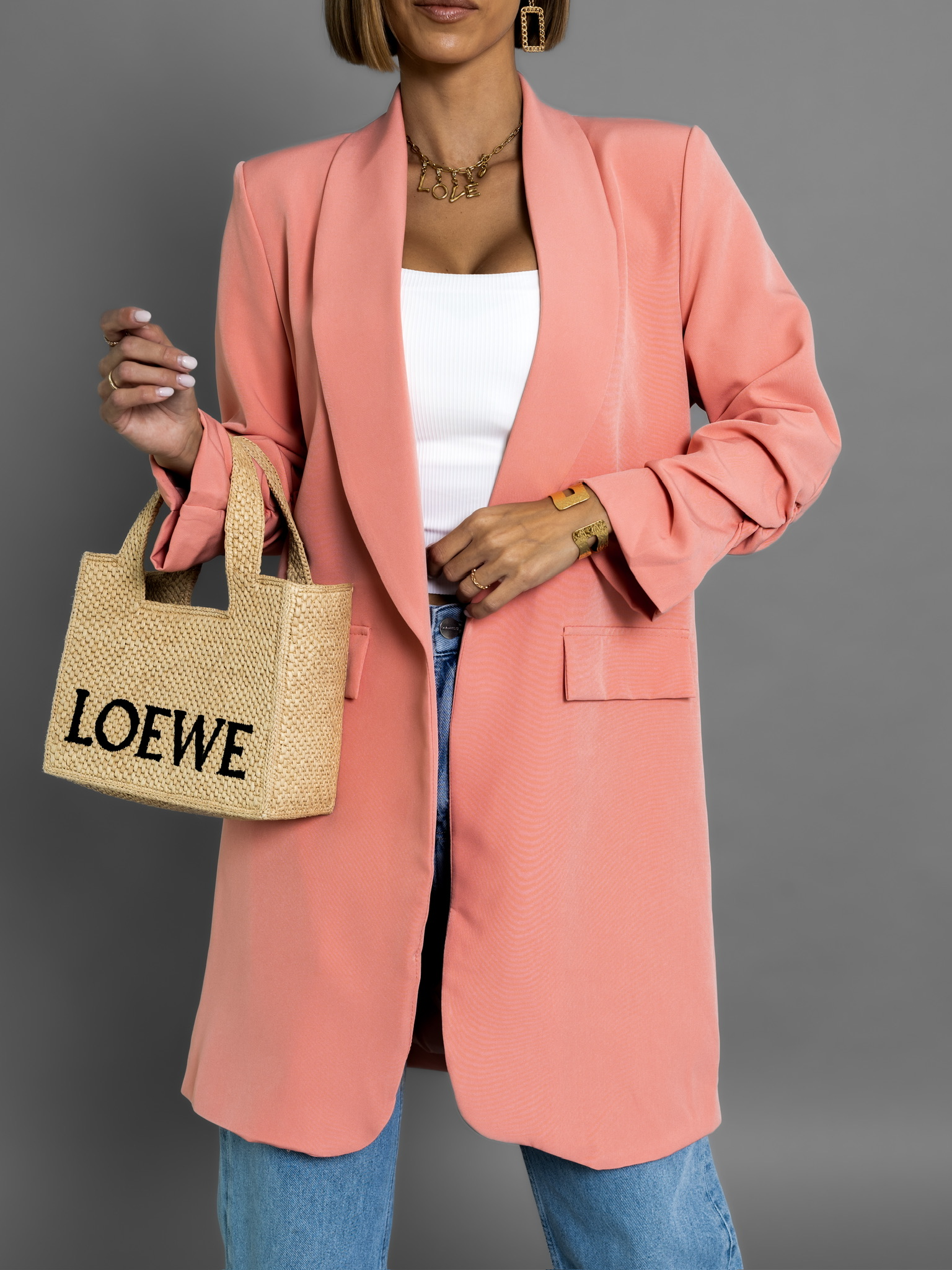 Lososové dlouhé sako CASTIEL otevřeného stylu Velikost: ONESIZE