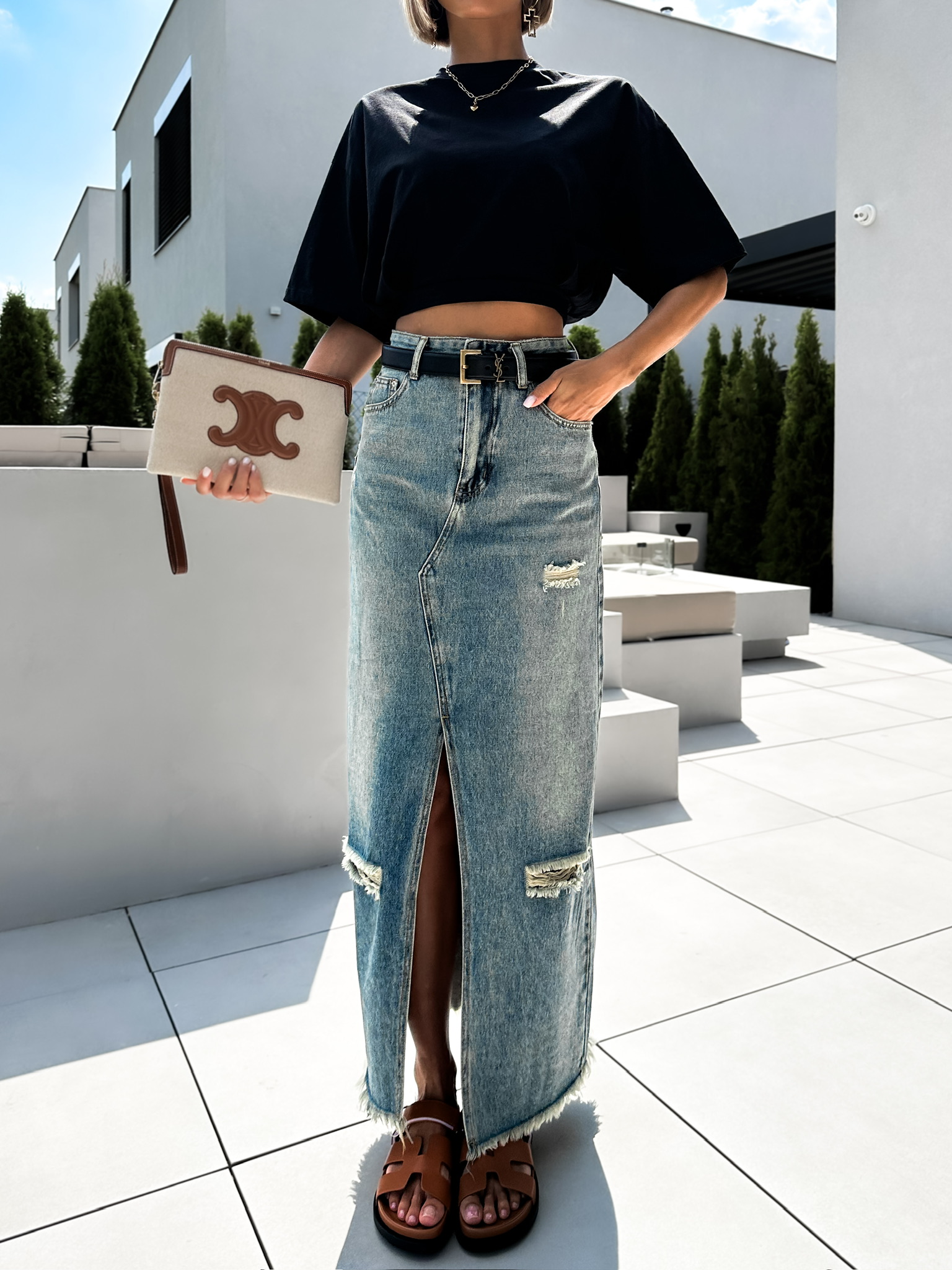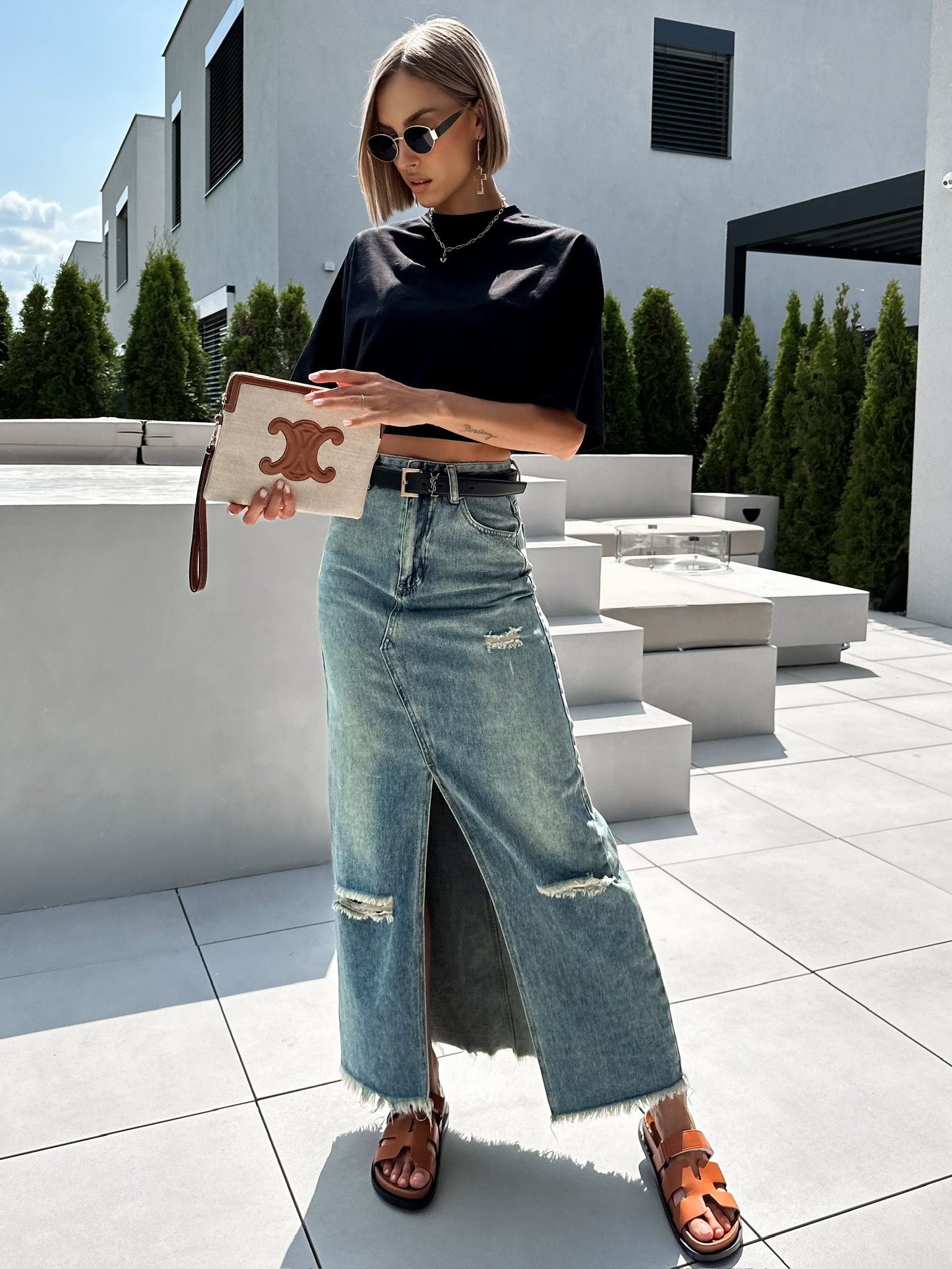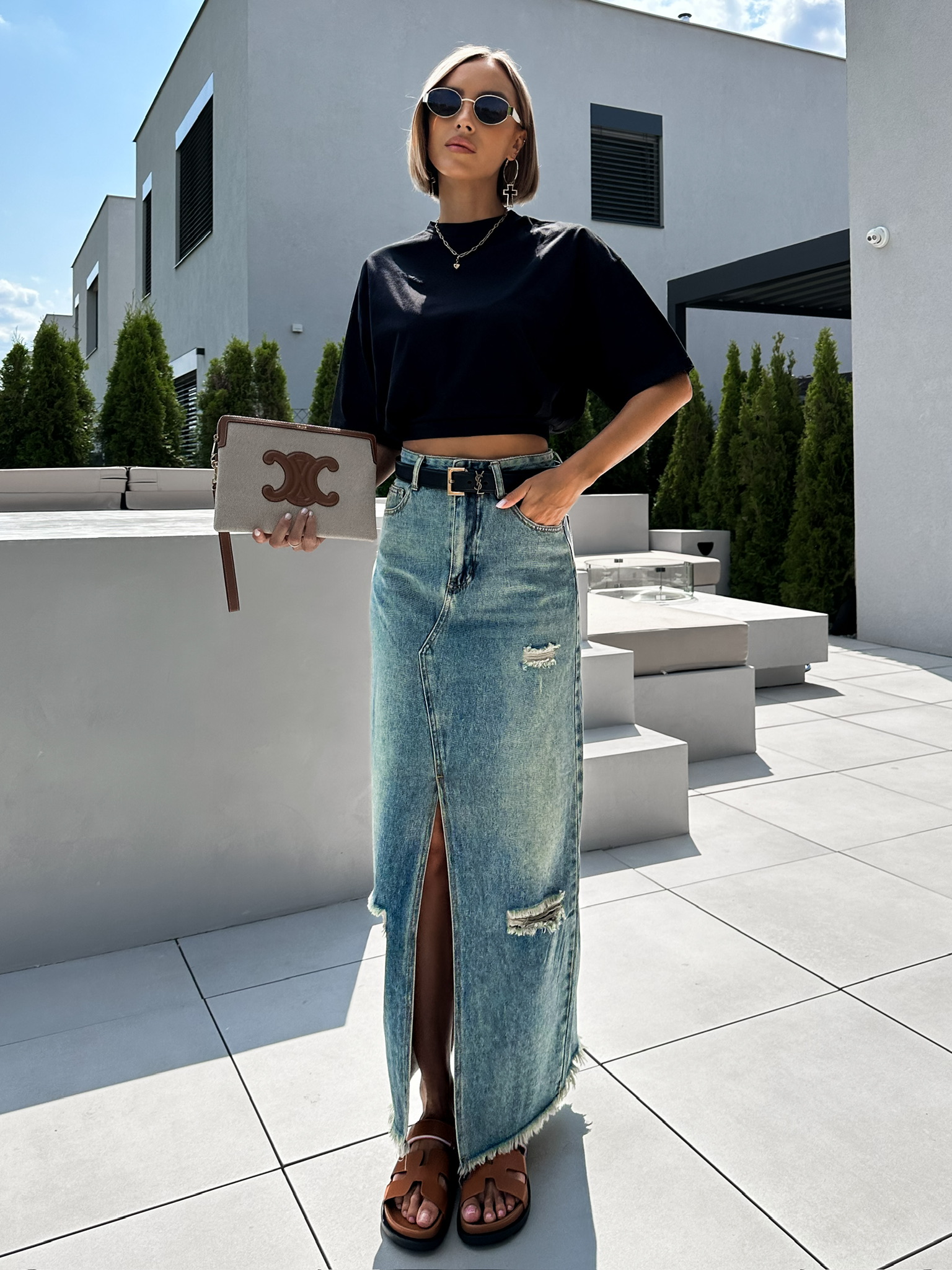 Modrá dlouhá džinová maxi sukně KIRILO Velikost: S