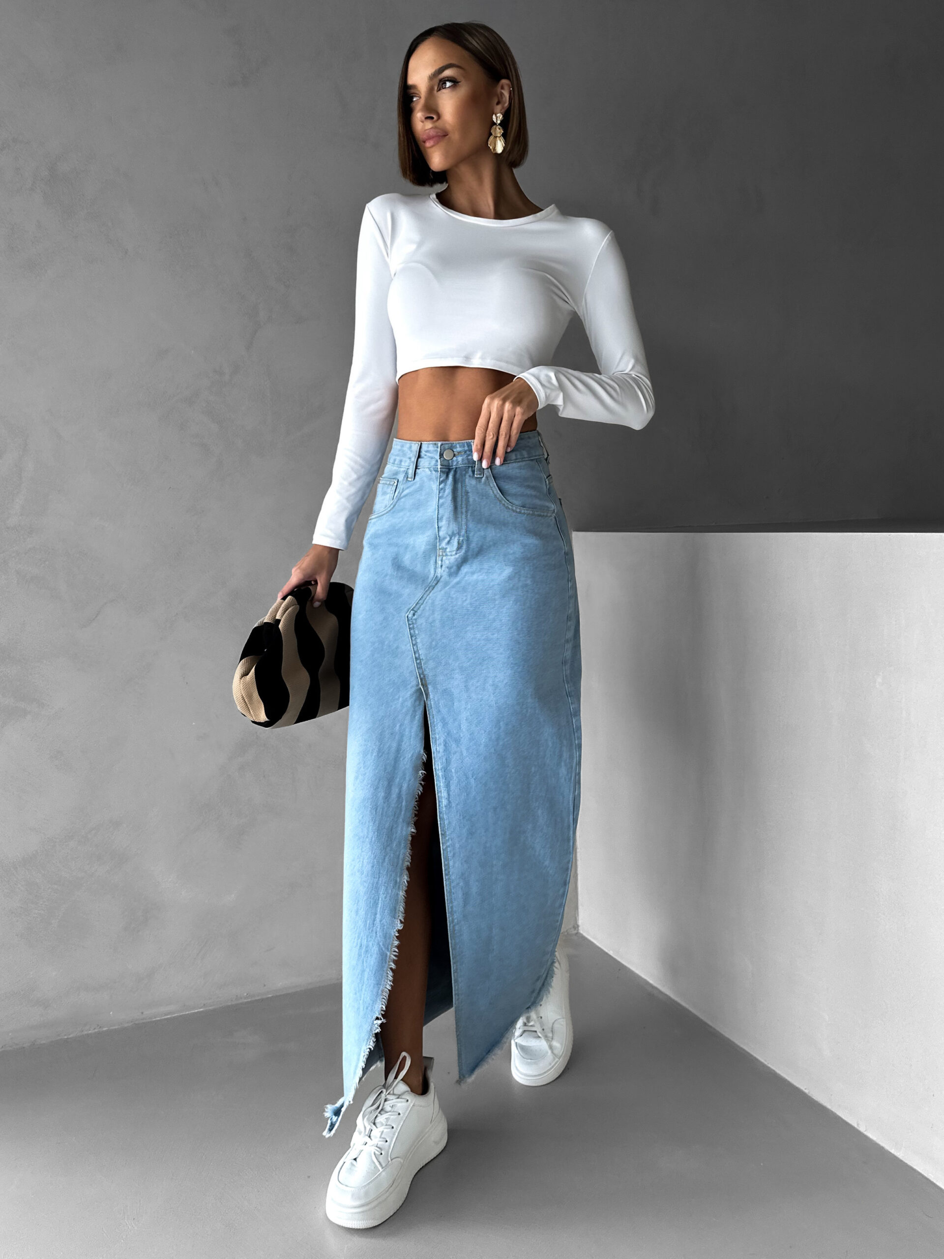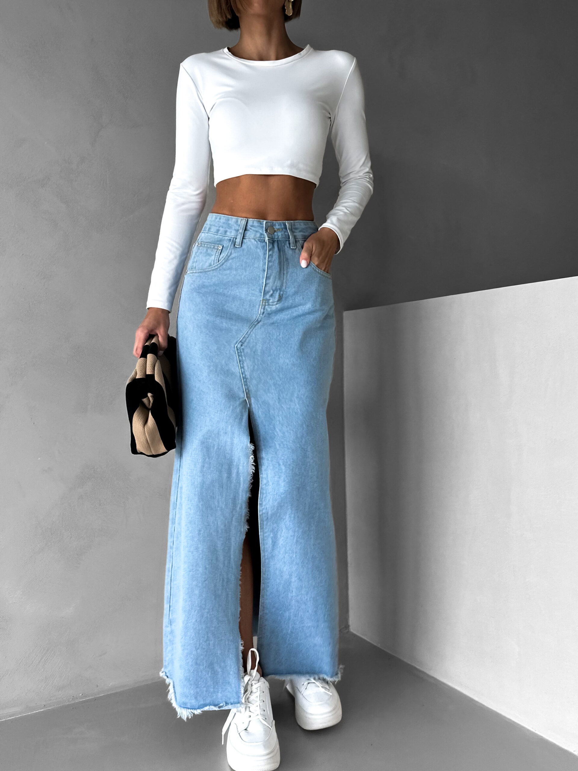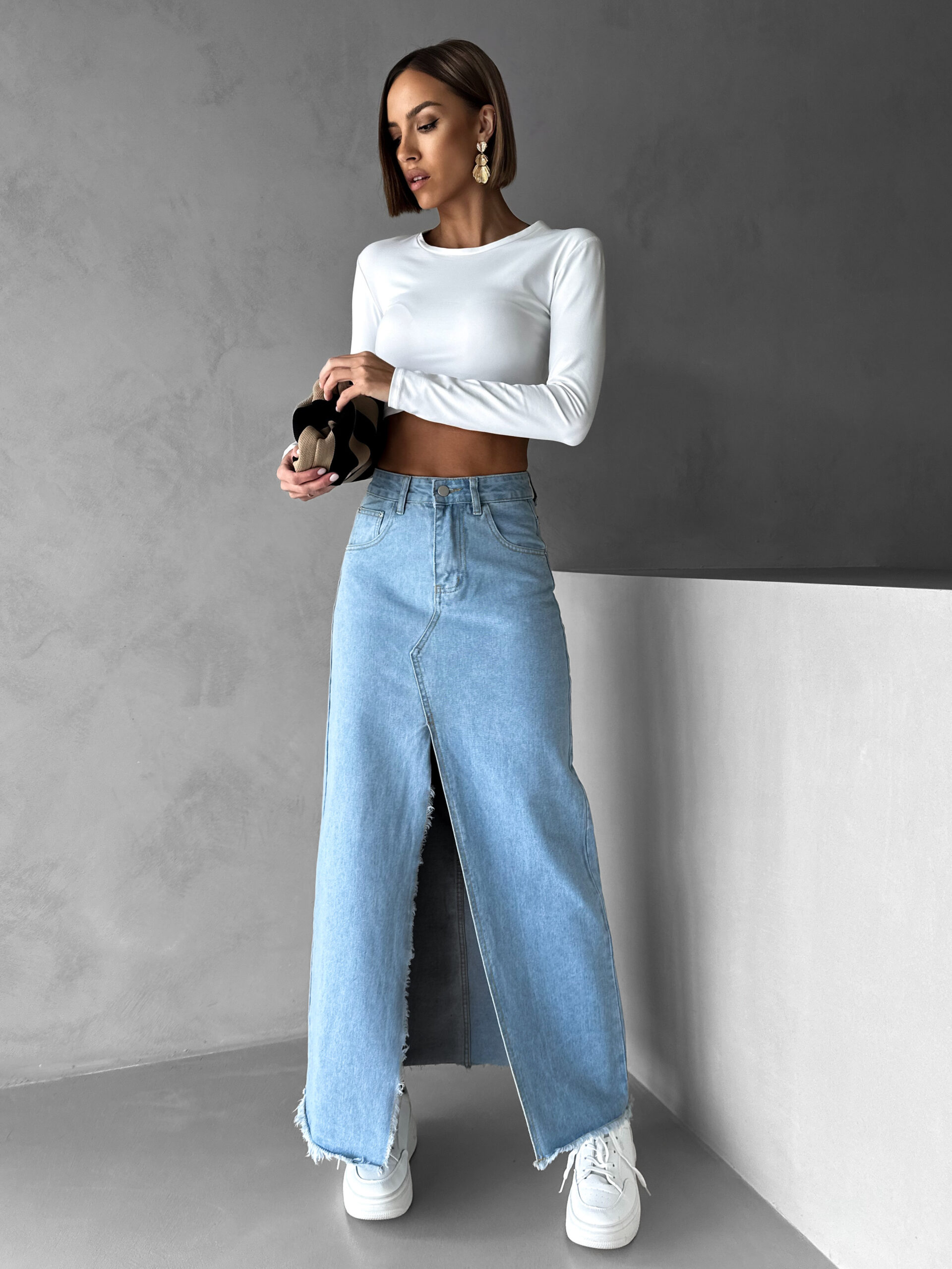 Modrá dlouhá long džínová sukně WIDALAN Velikost: M