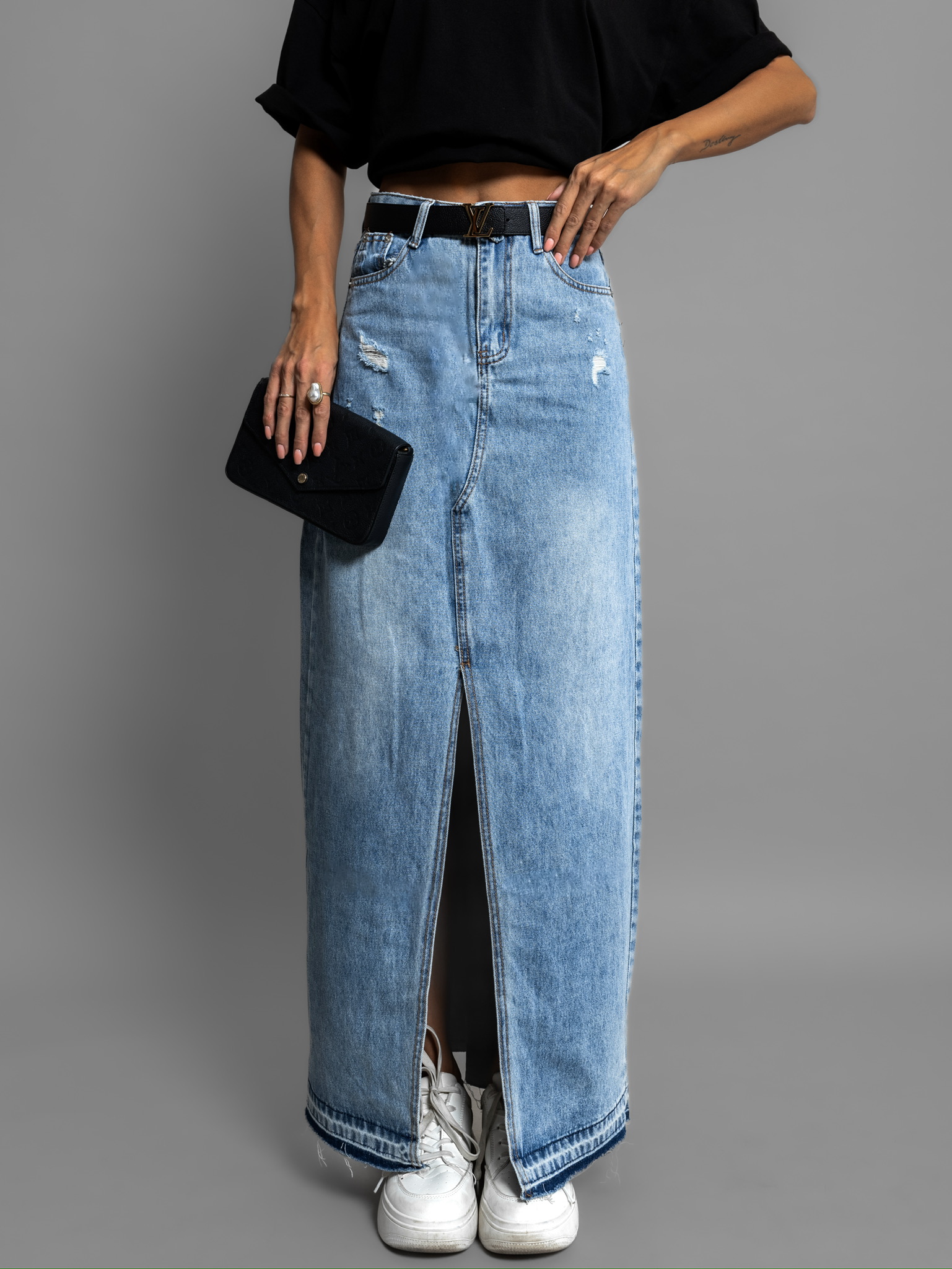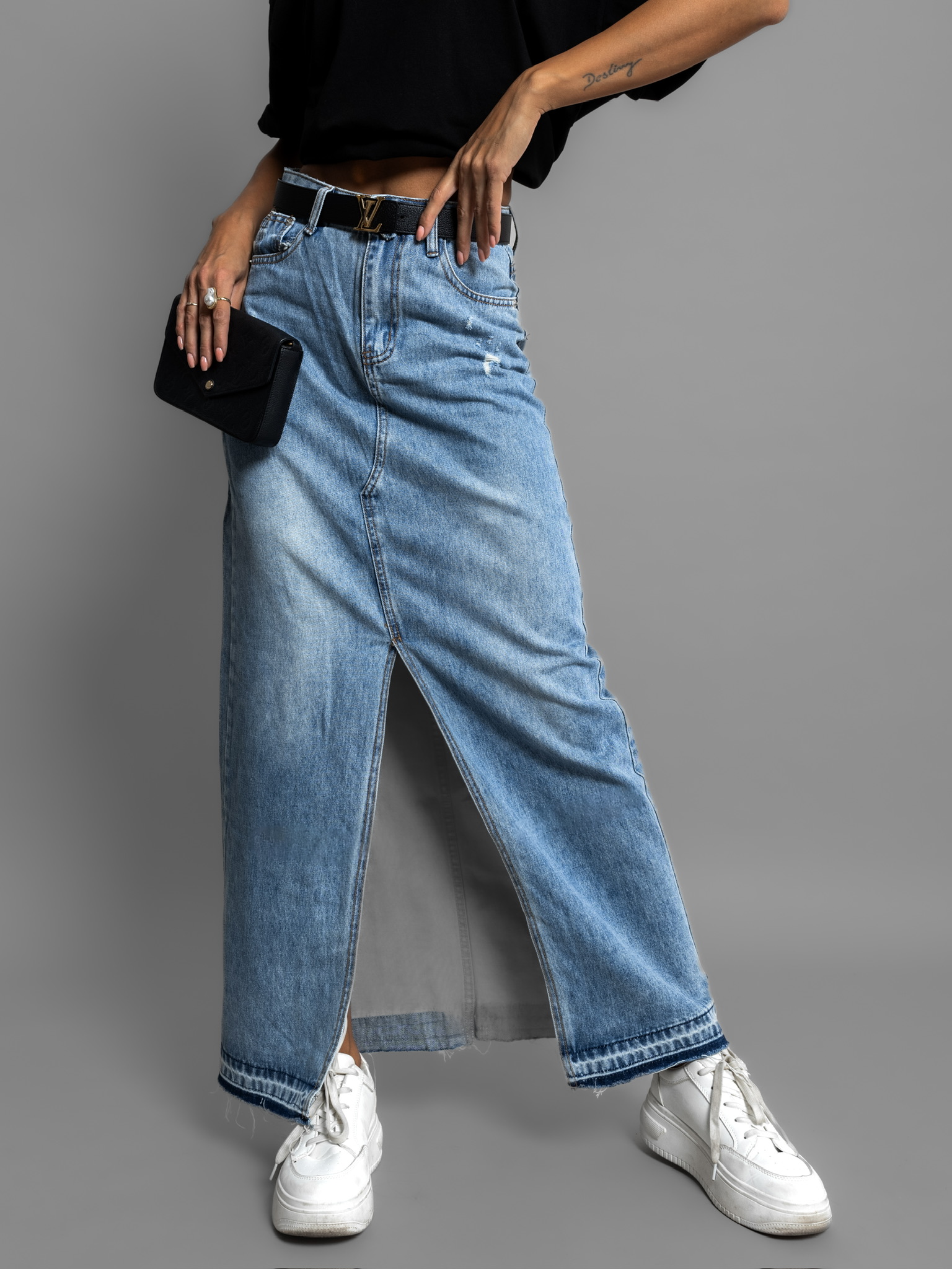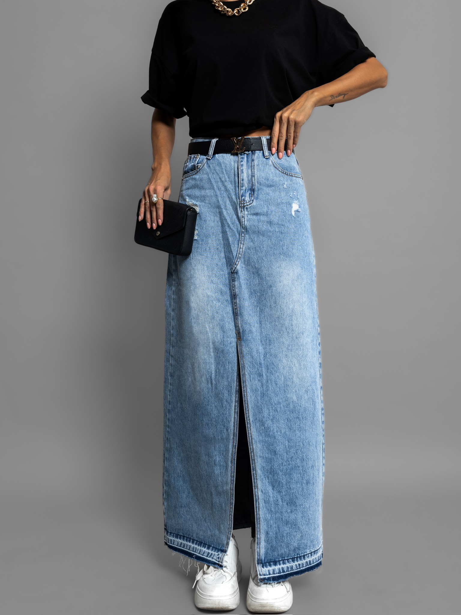 Modrá džínová dlouhá sukně MONIQUE Velikost: S
