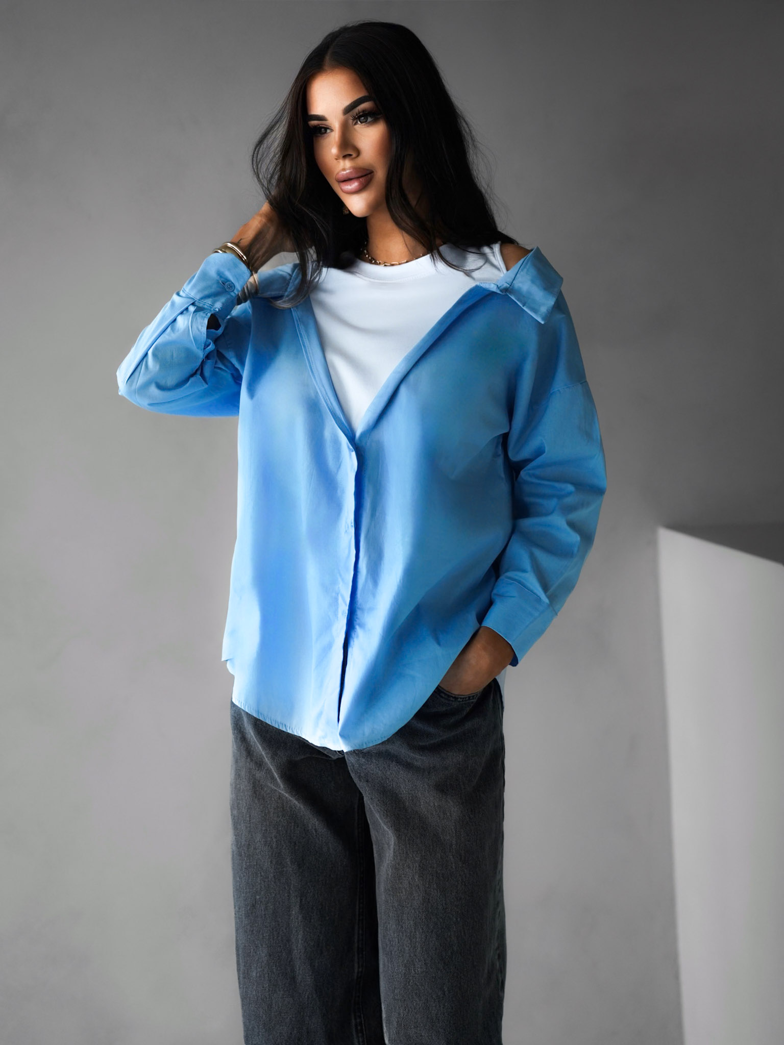 Modrá košile ELVIRE s dlouhým rukávem Velikost: ONESIZE