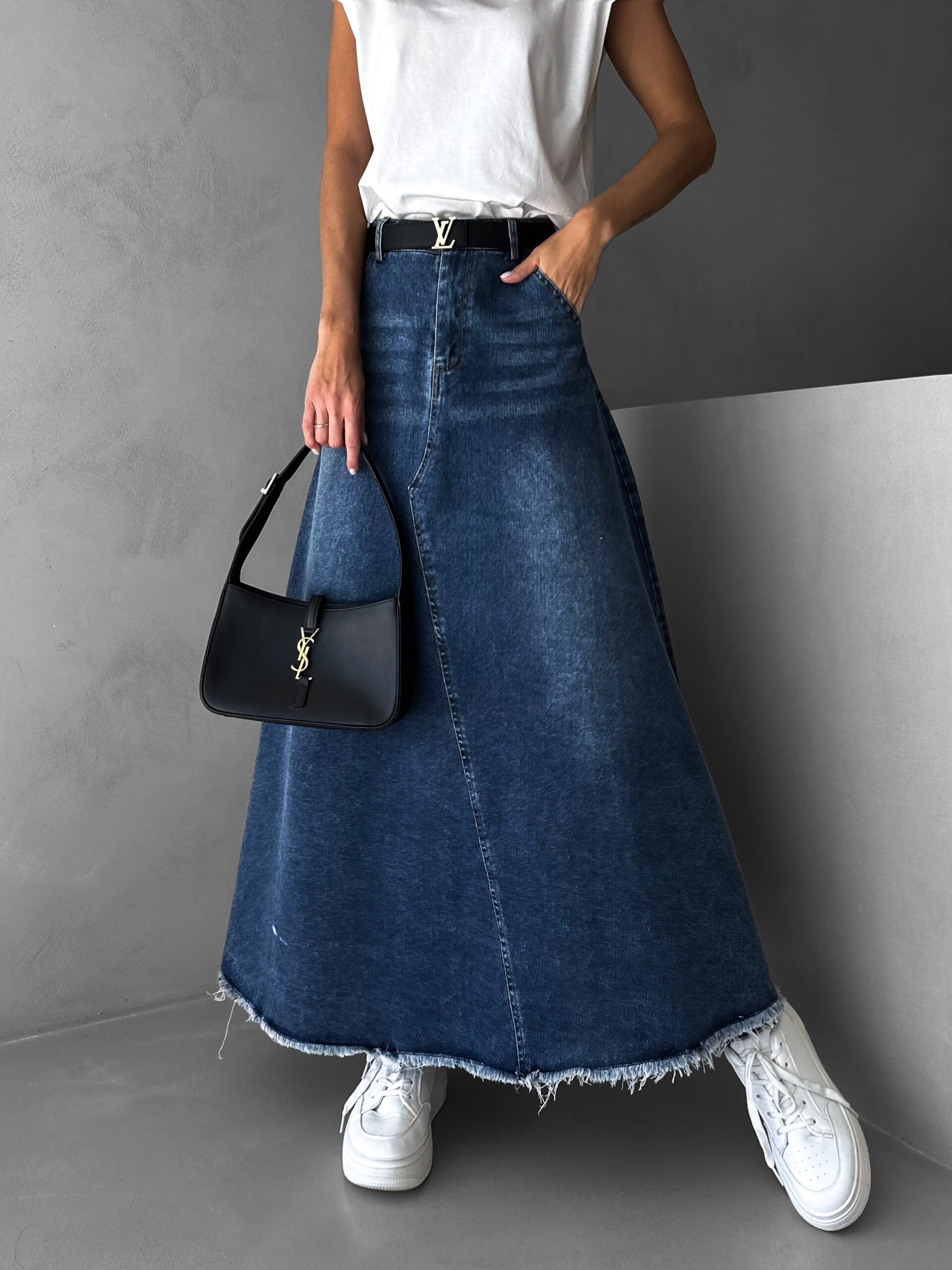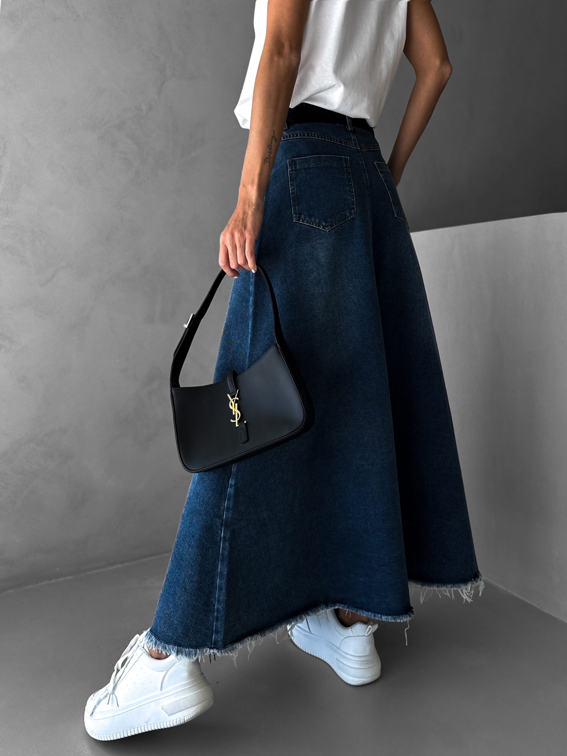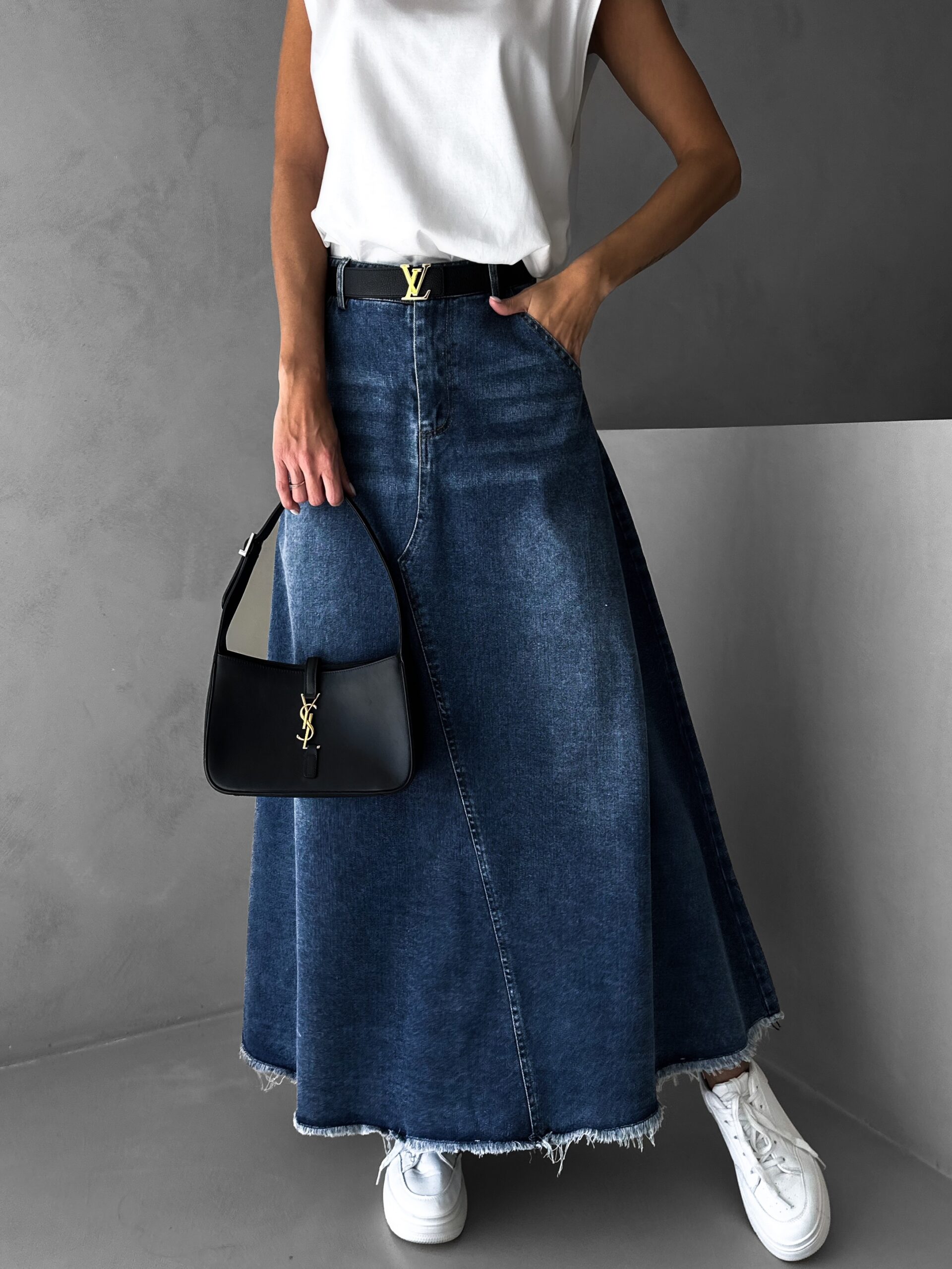 Modrá široká džínová dlouhá sukně LAUCEN Velikost: M