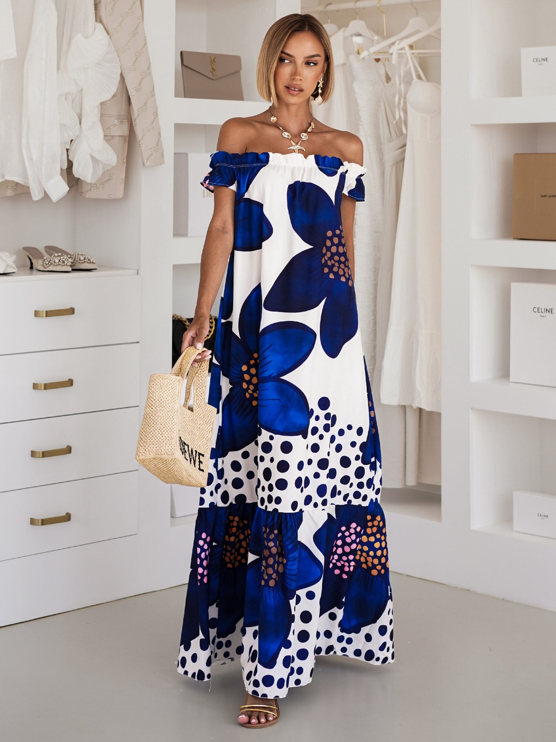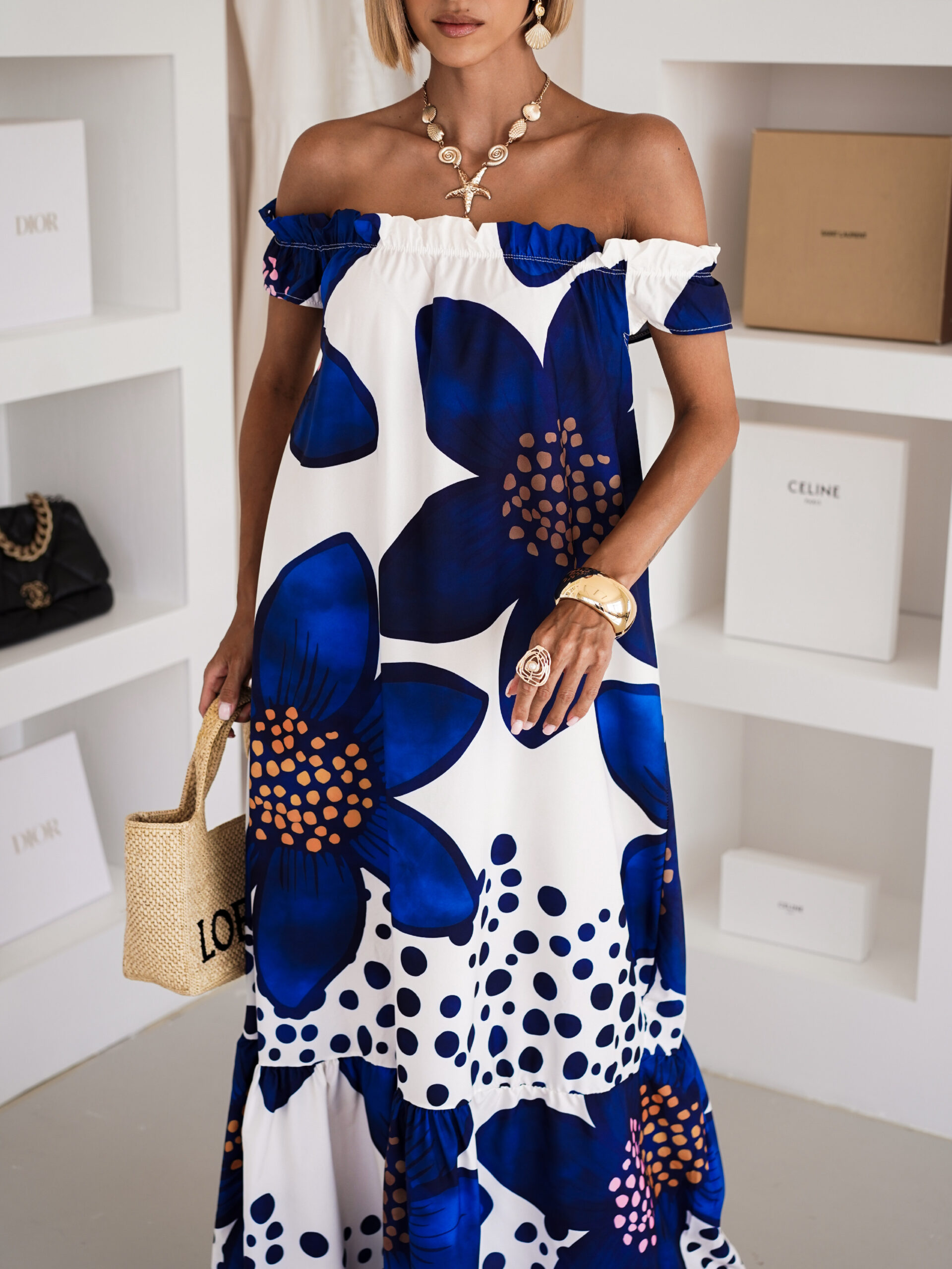 Modré dlouhé maxi široké šaty ELISIENNE Velikost: ONESIZE