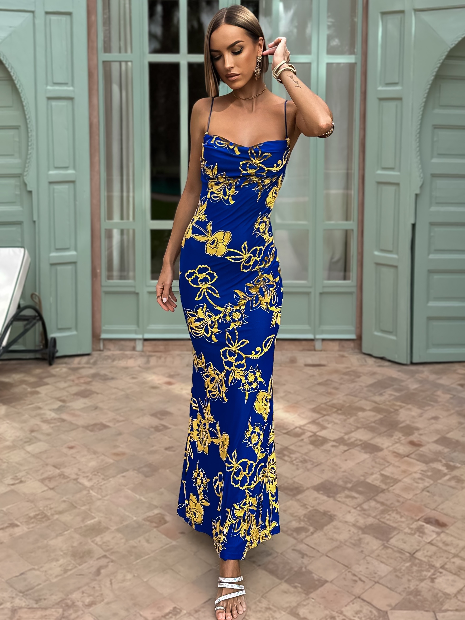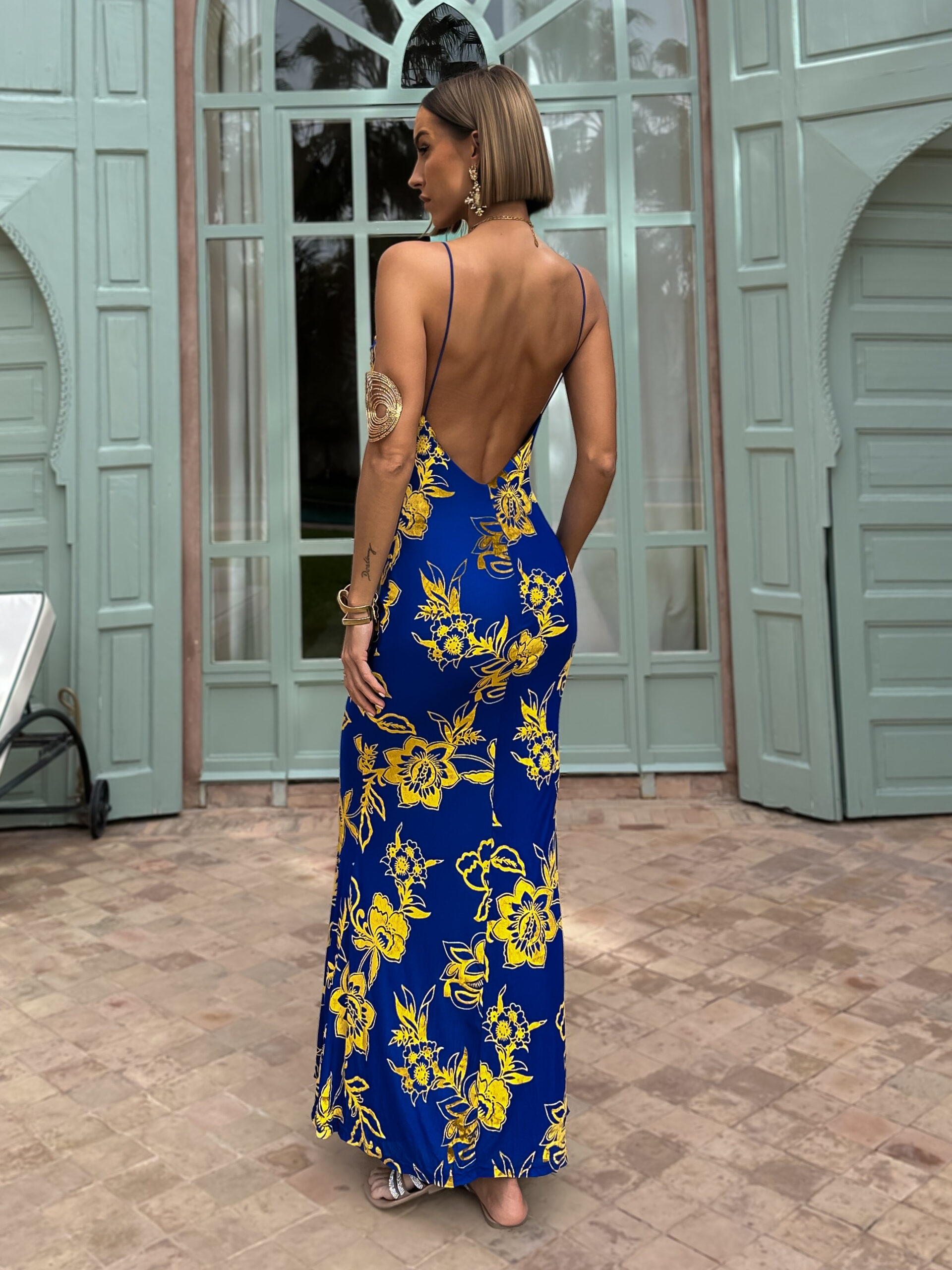 Modré dlouhé šaty MARCHENCI s holými zády Velikost: L