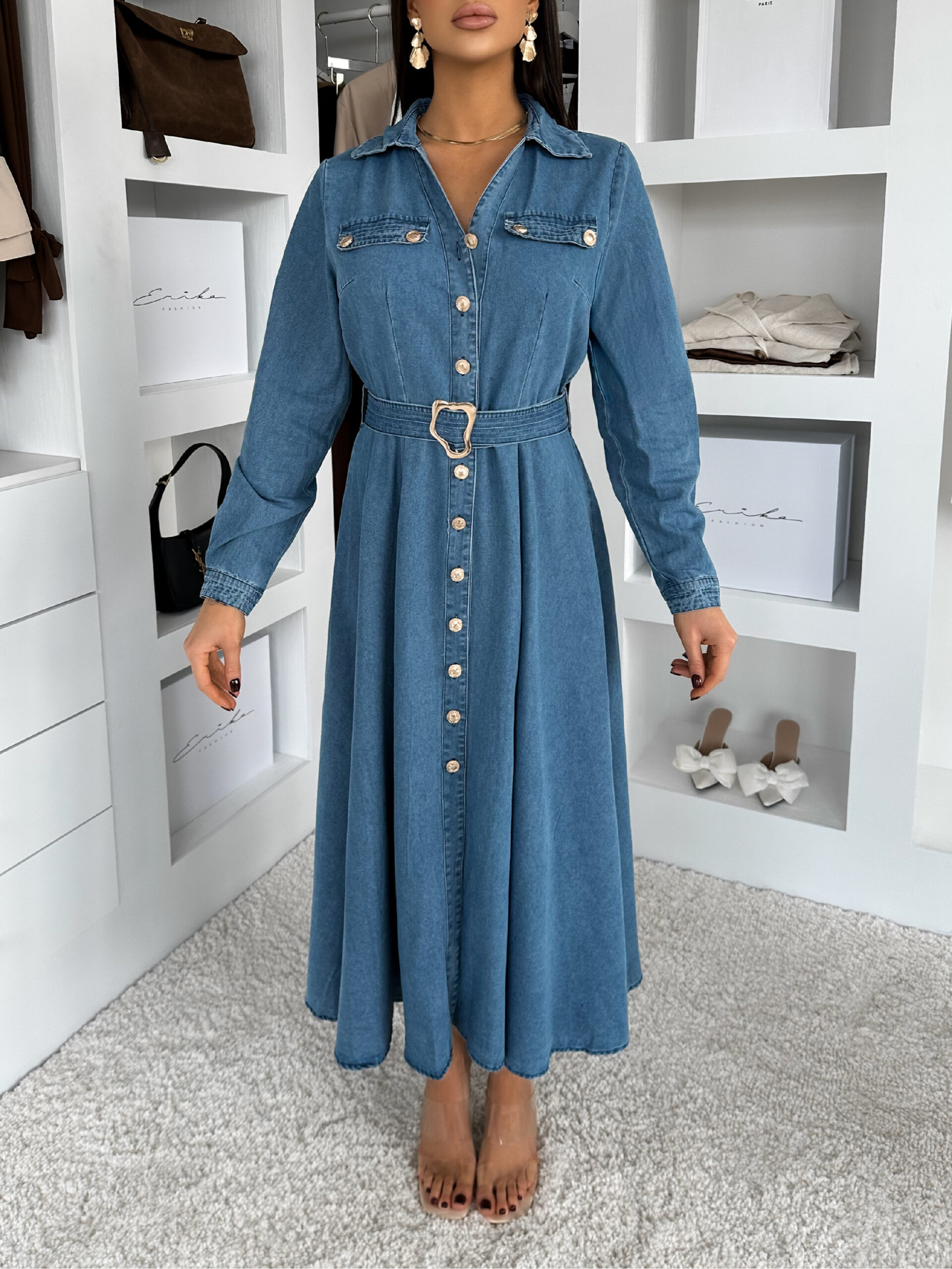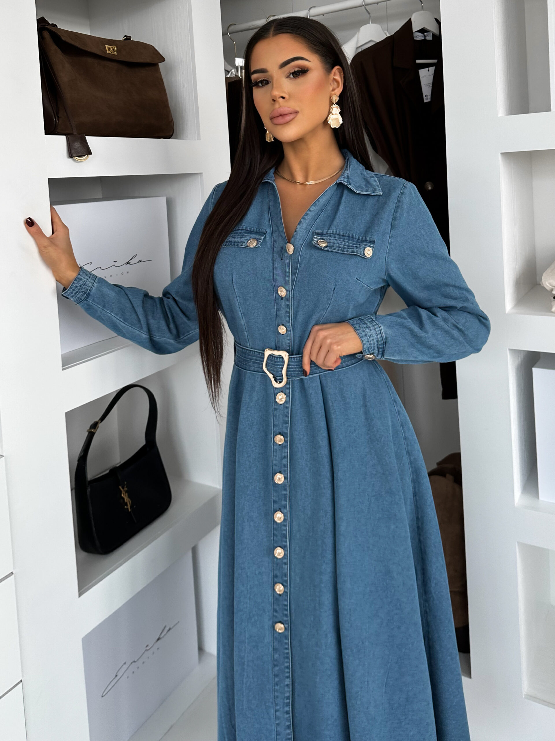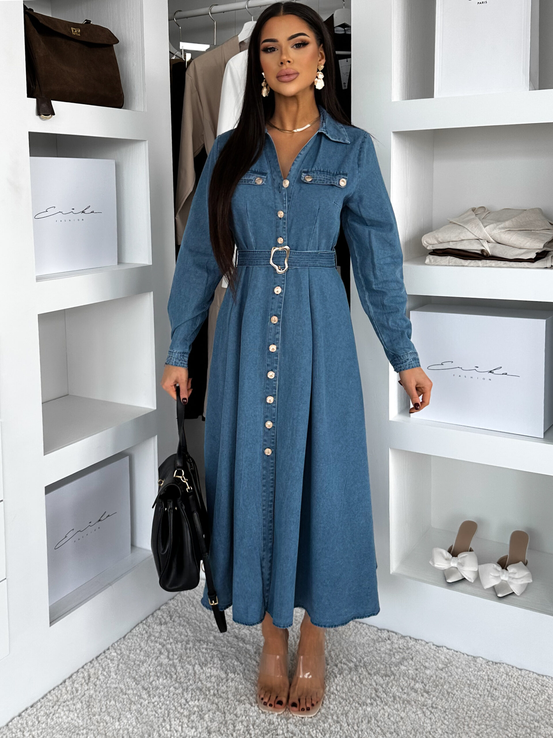 Modré džínové midi šaty CAELIA s páskem Velikost: M/L