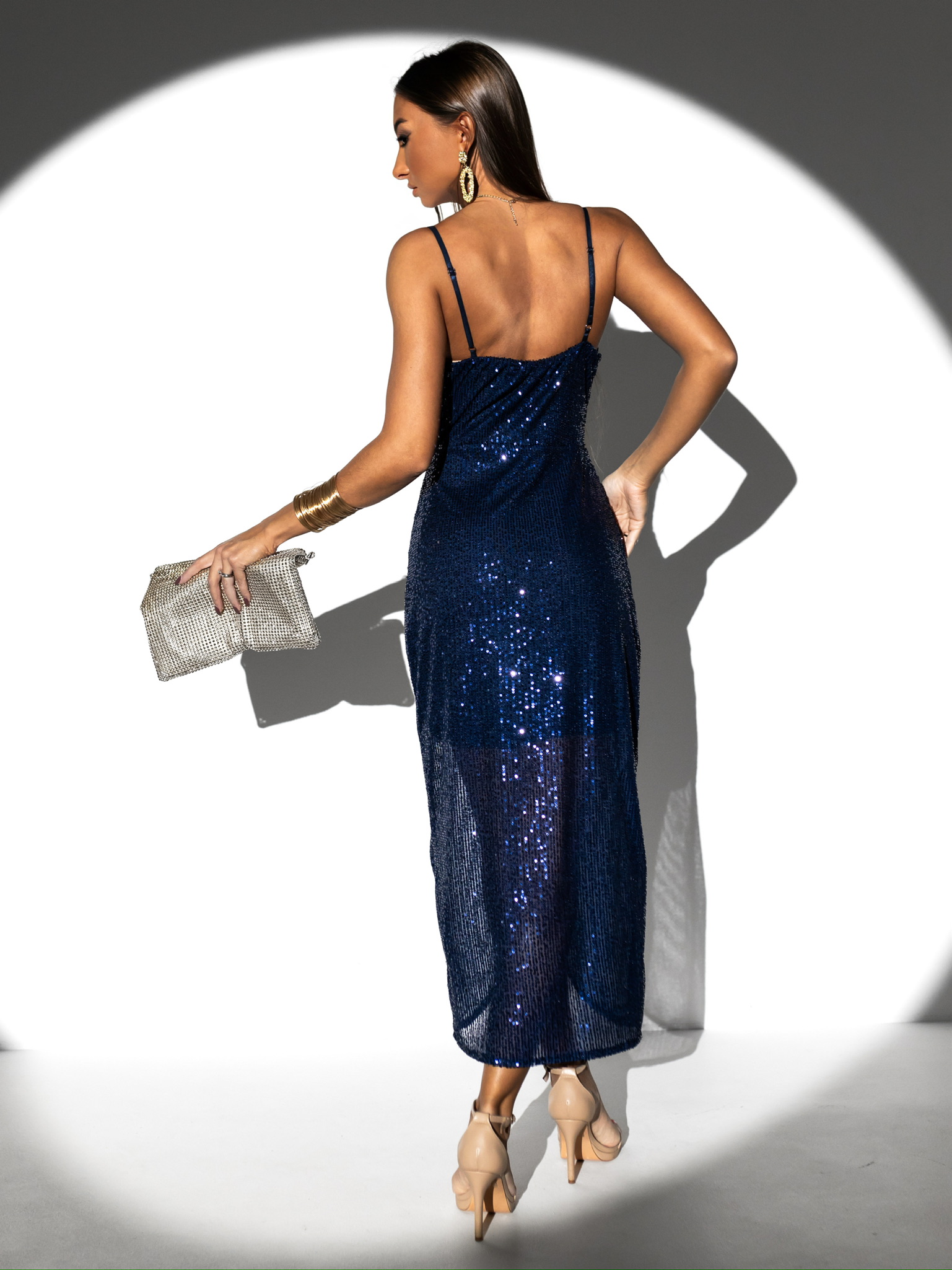 Modré koktejlové šaty AGUILO s flitry Velikost: ONESIZE