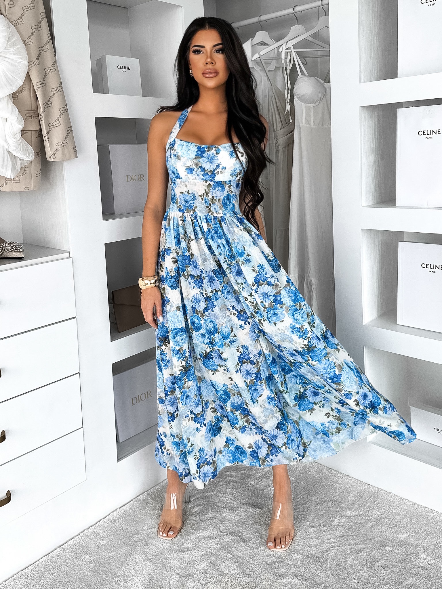Modré letní dlouhé květované šaty YSMERA Velikost: ONESIZE