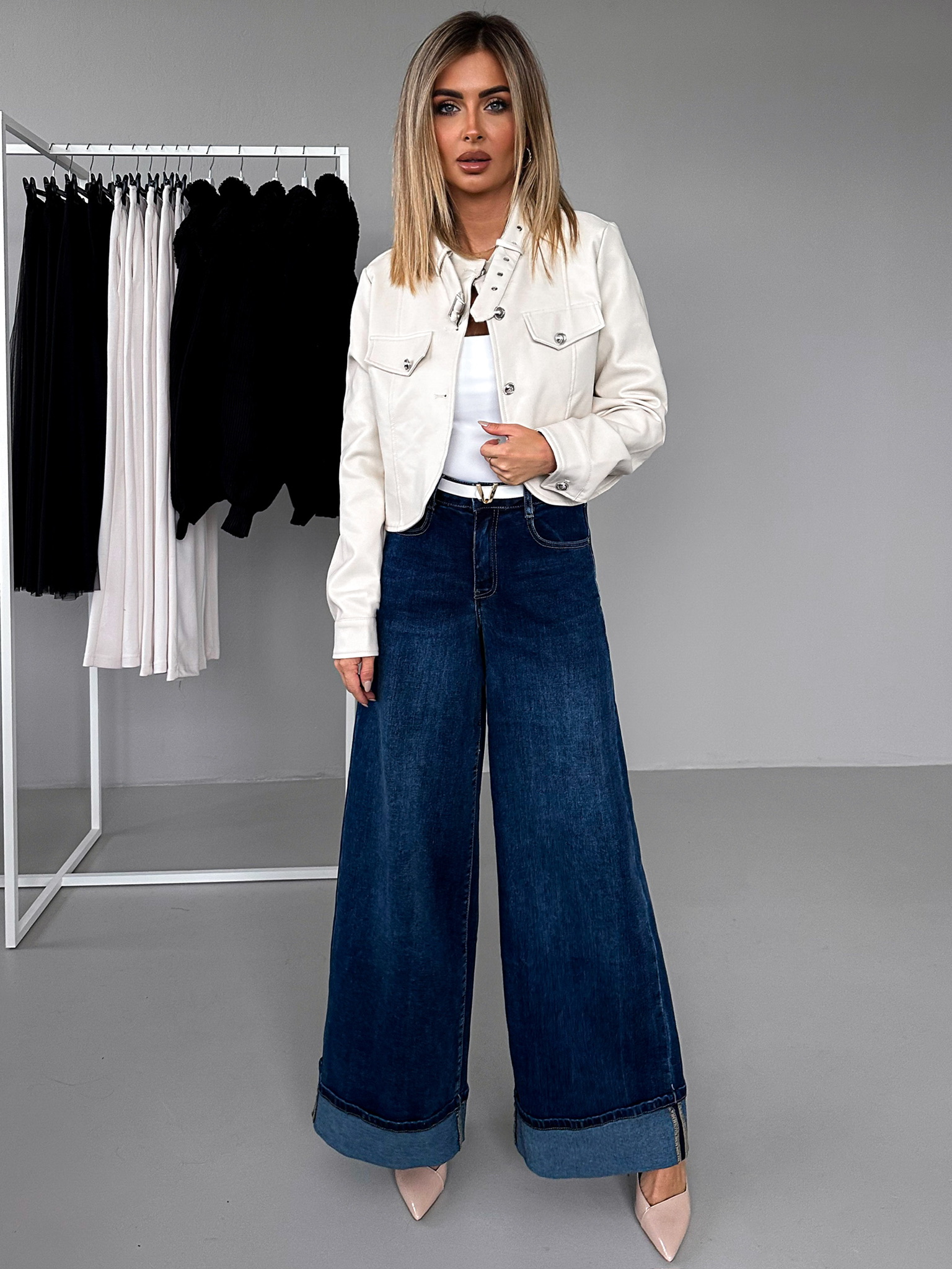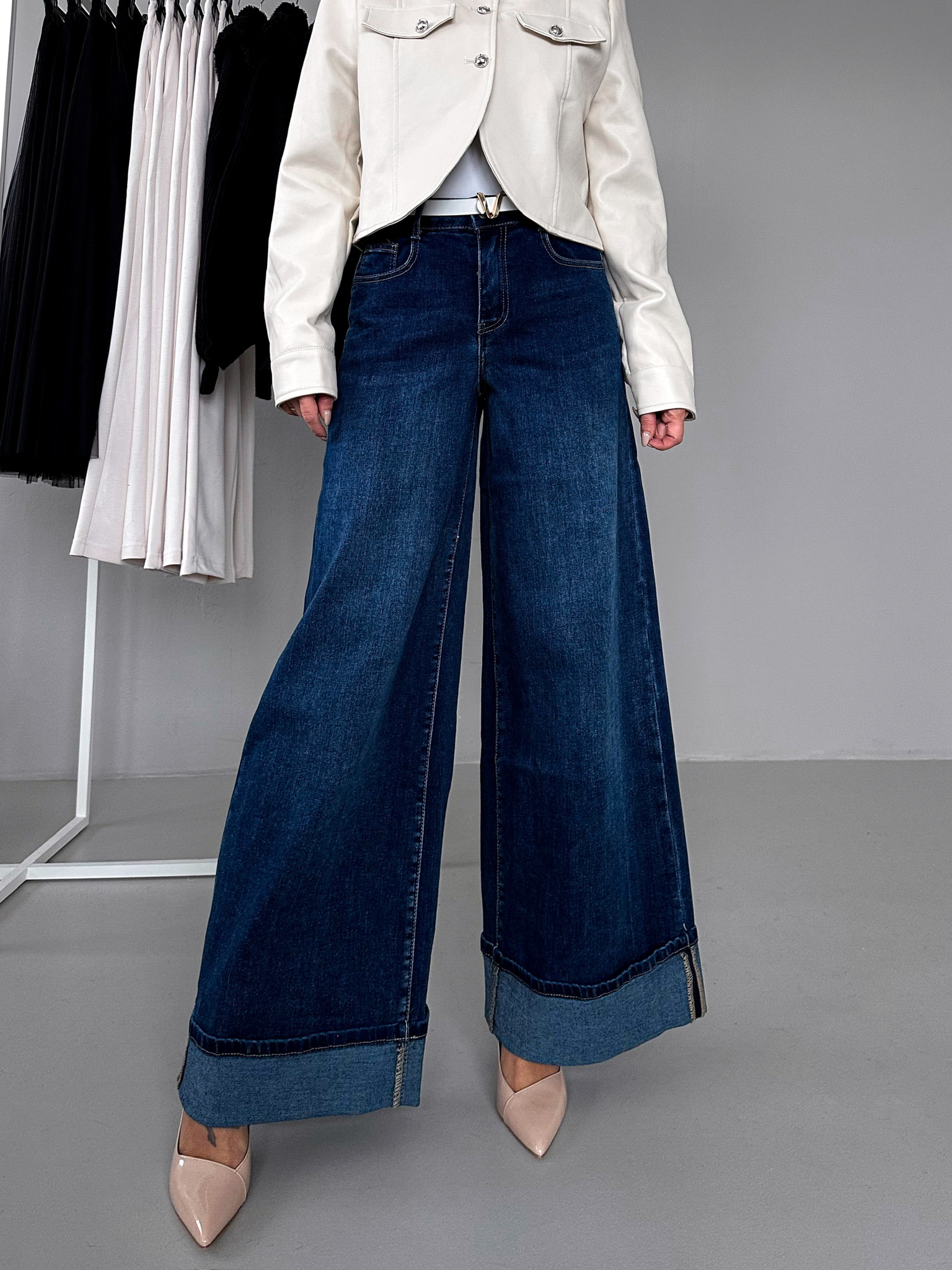 Modré široké wide leg džíny EVALOTTA s přehybem Velikost: L