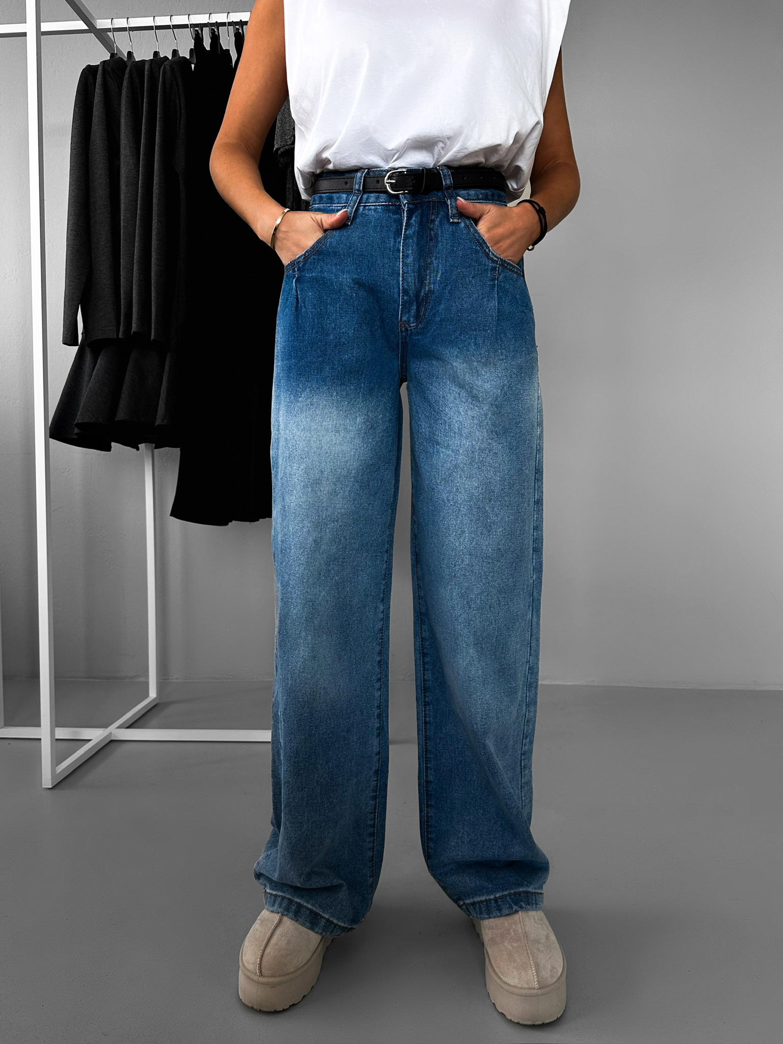 Modré široké wide leg tmavé džíny AYLYNN Velikost: S