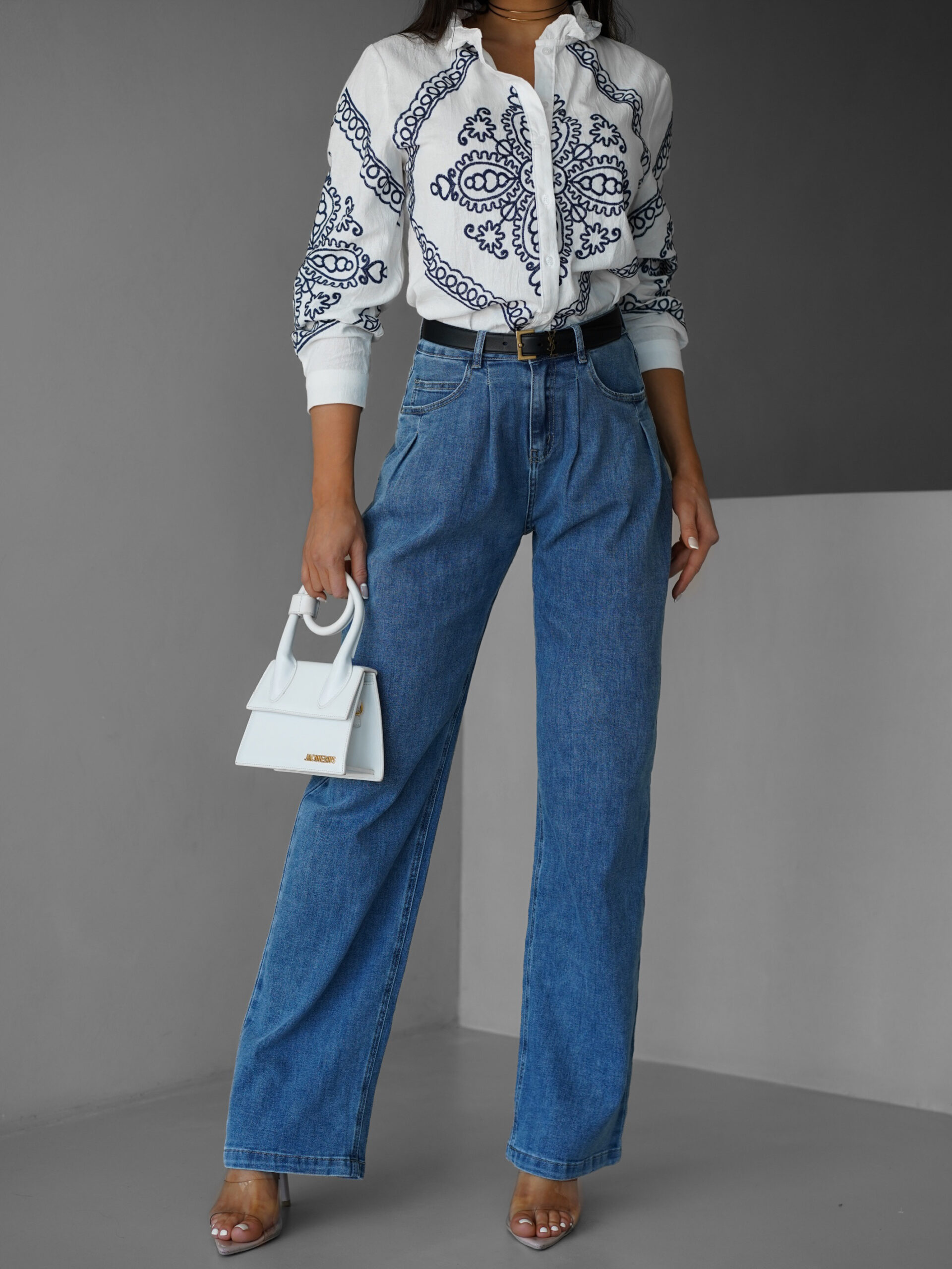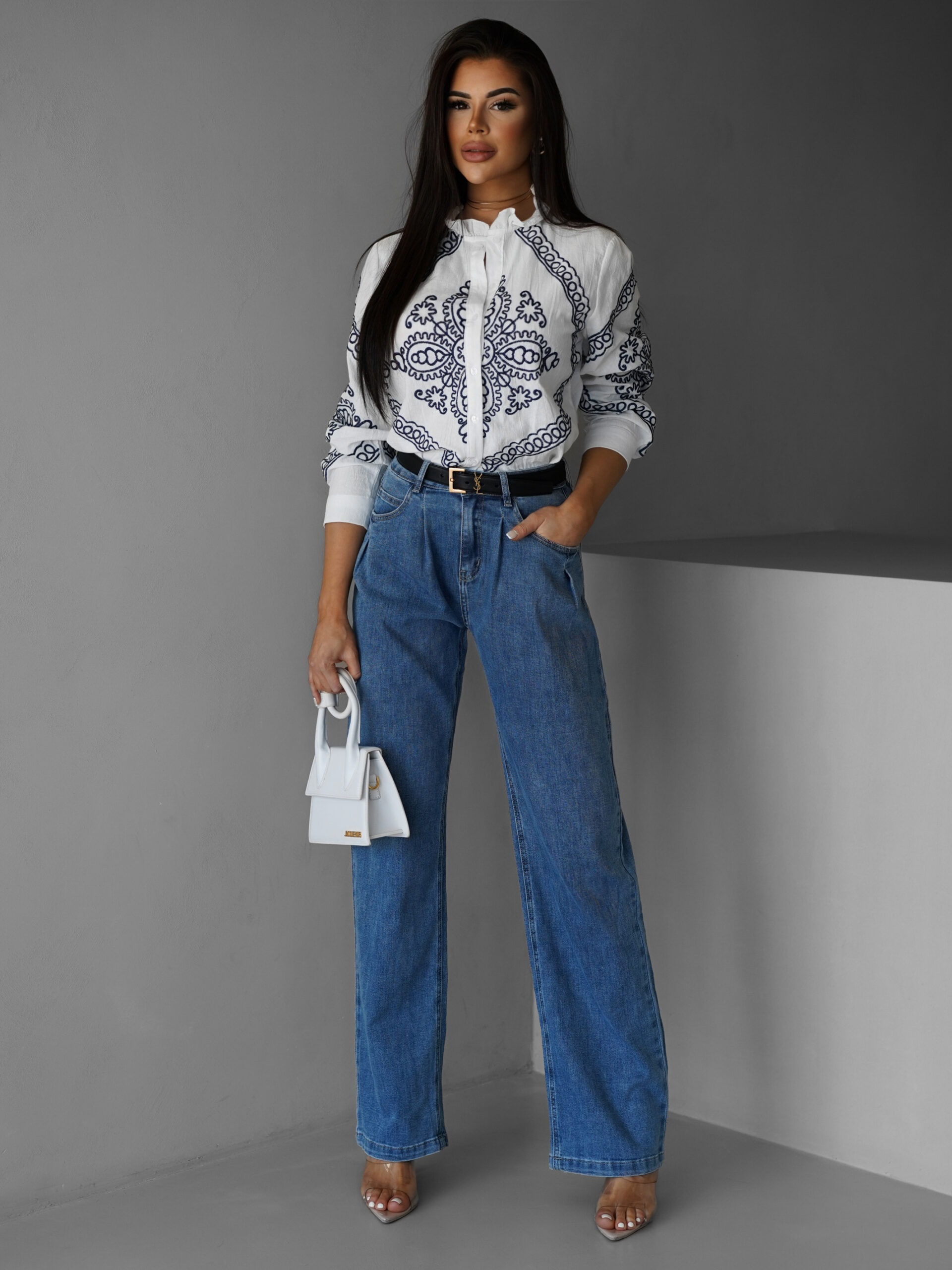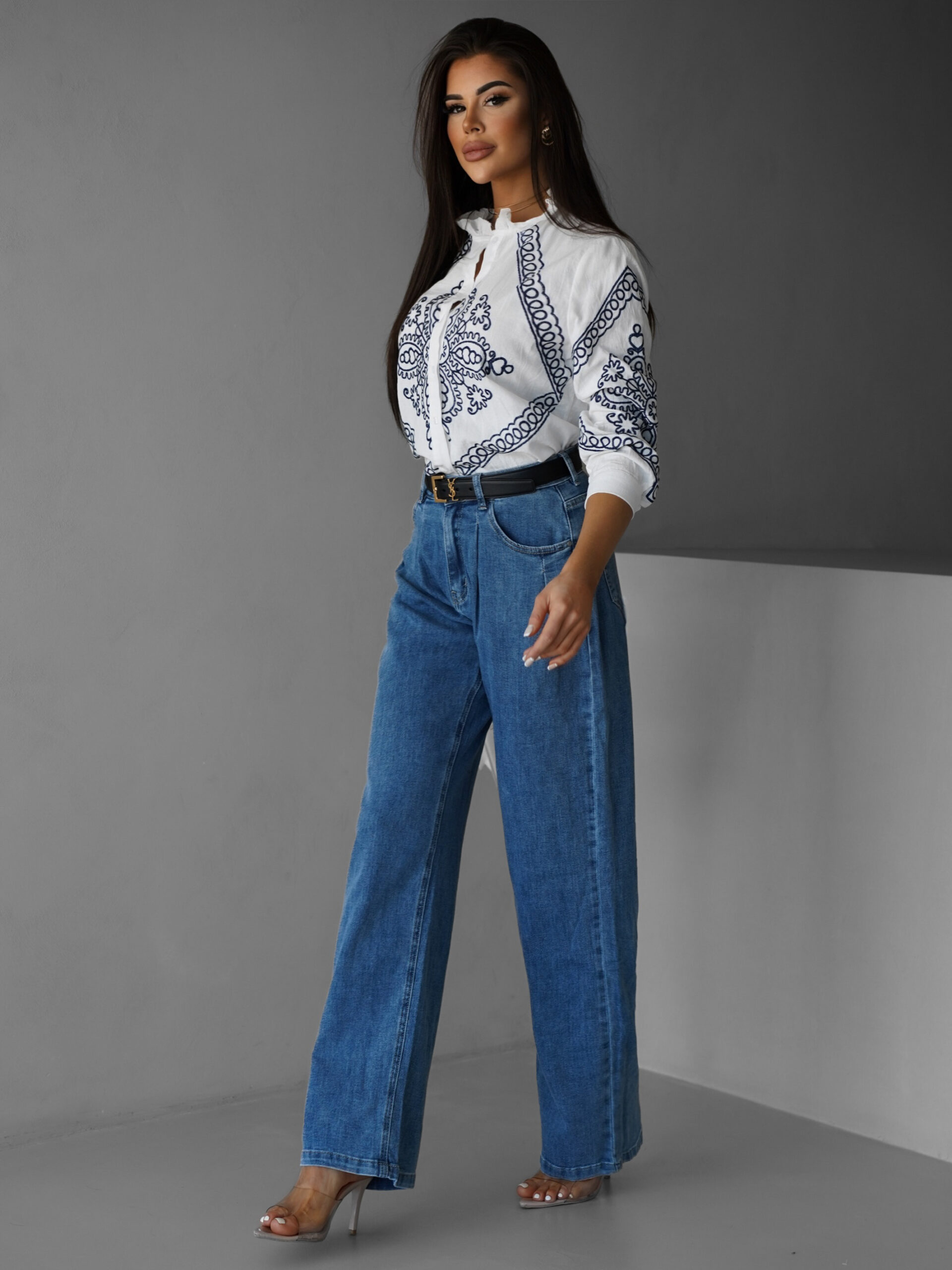 Modré stylové wide leg široké džíny FINDER Velikost: S