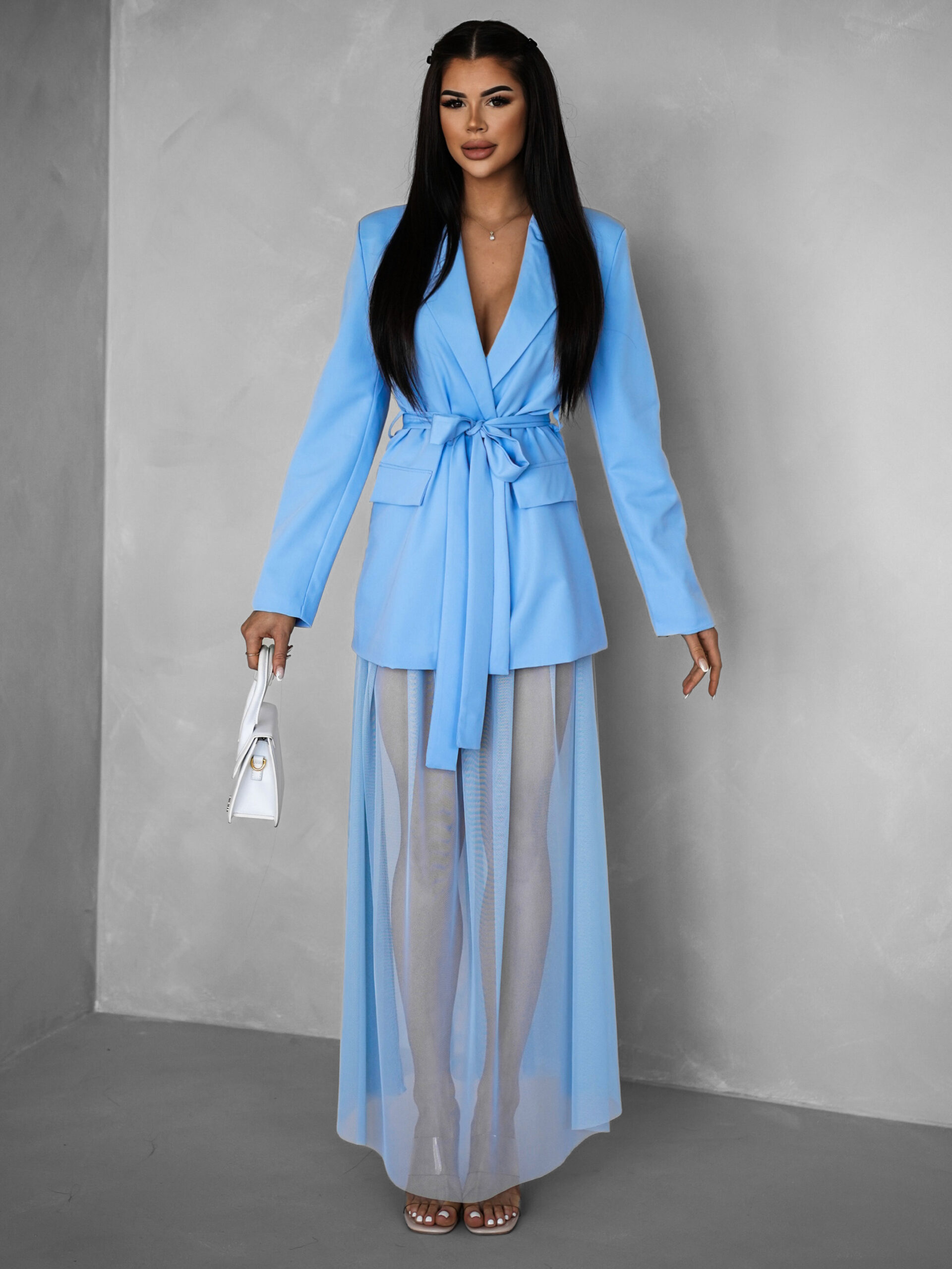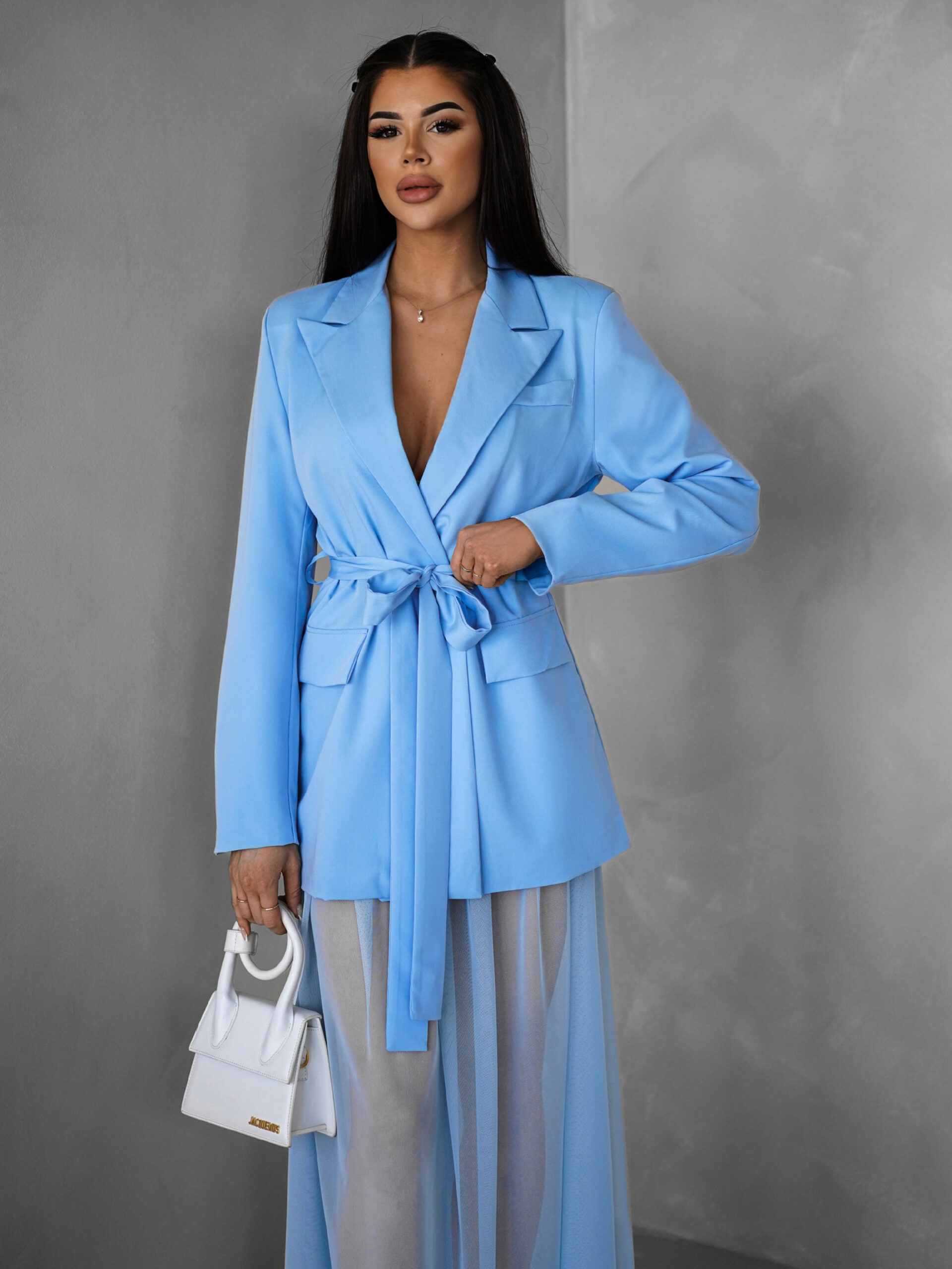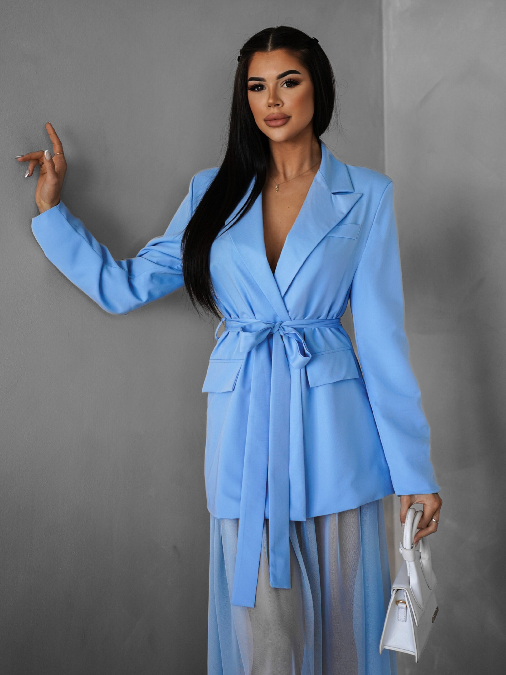 Modré stylové zavazovací sako ZENARA s páskem Velikost: ONESIZE