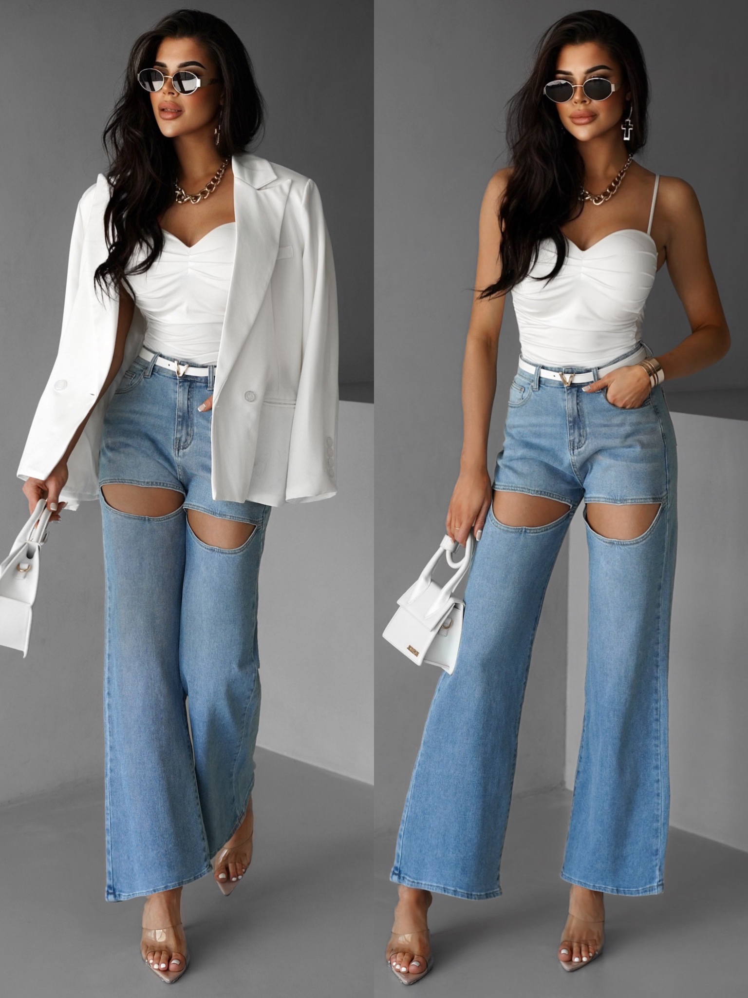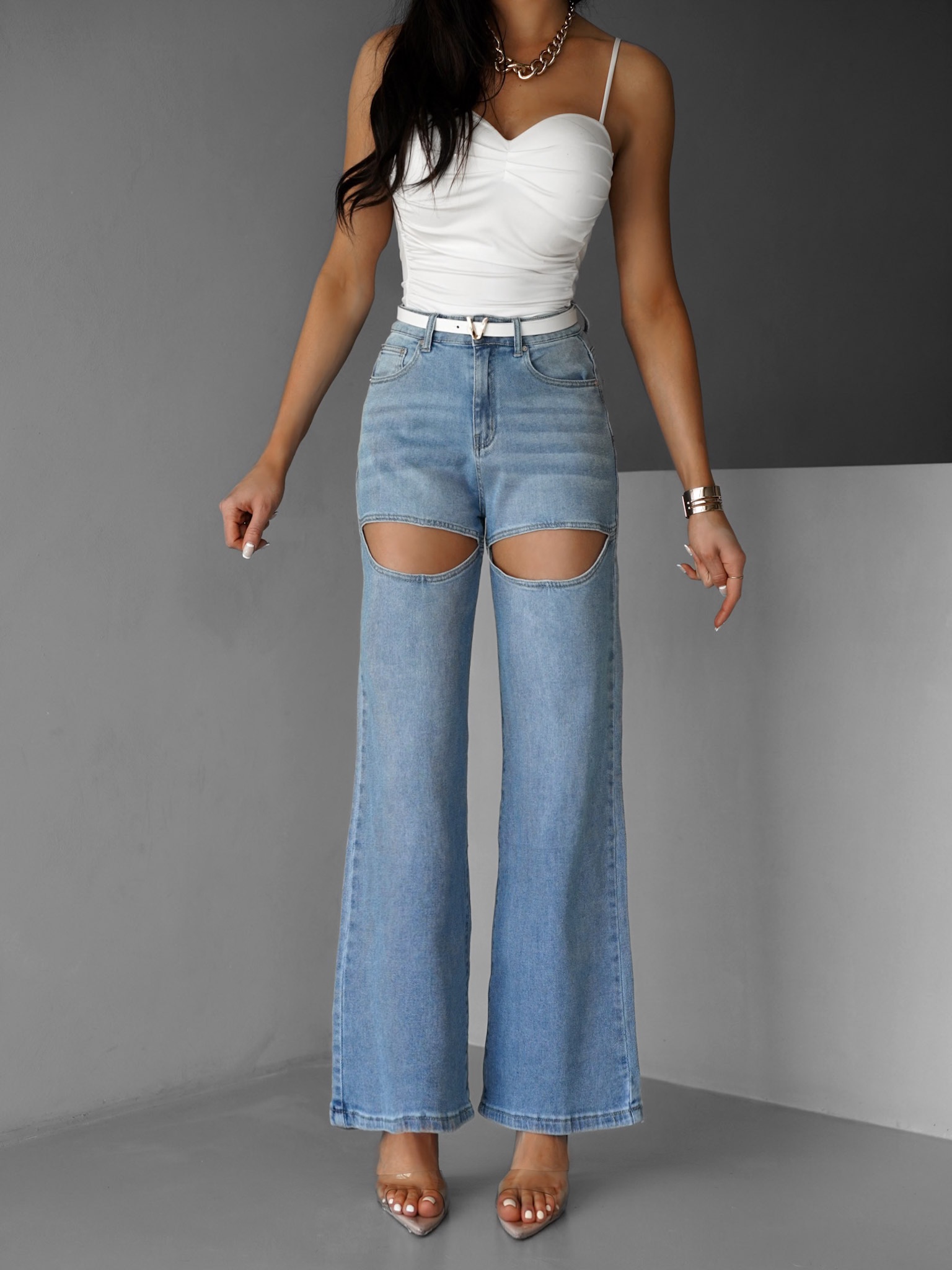 Modré wide leg široké džíny CHIMALLI s dírami Velikost: L