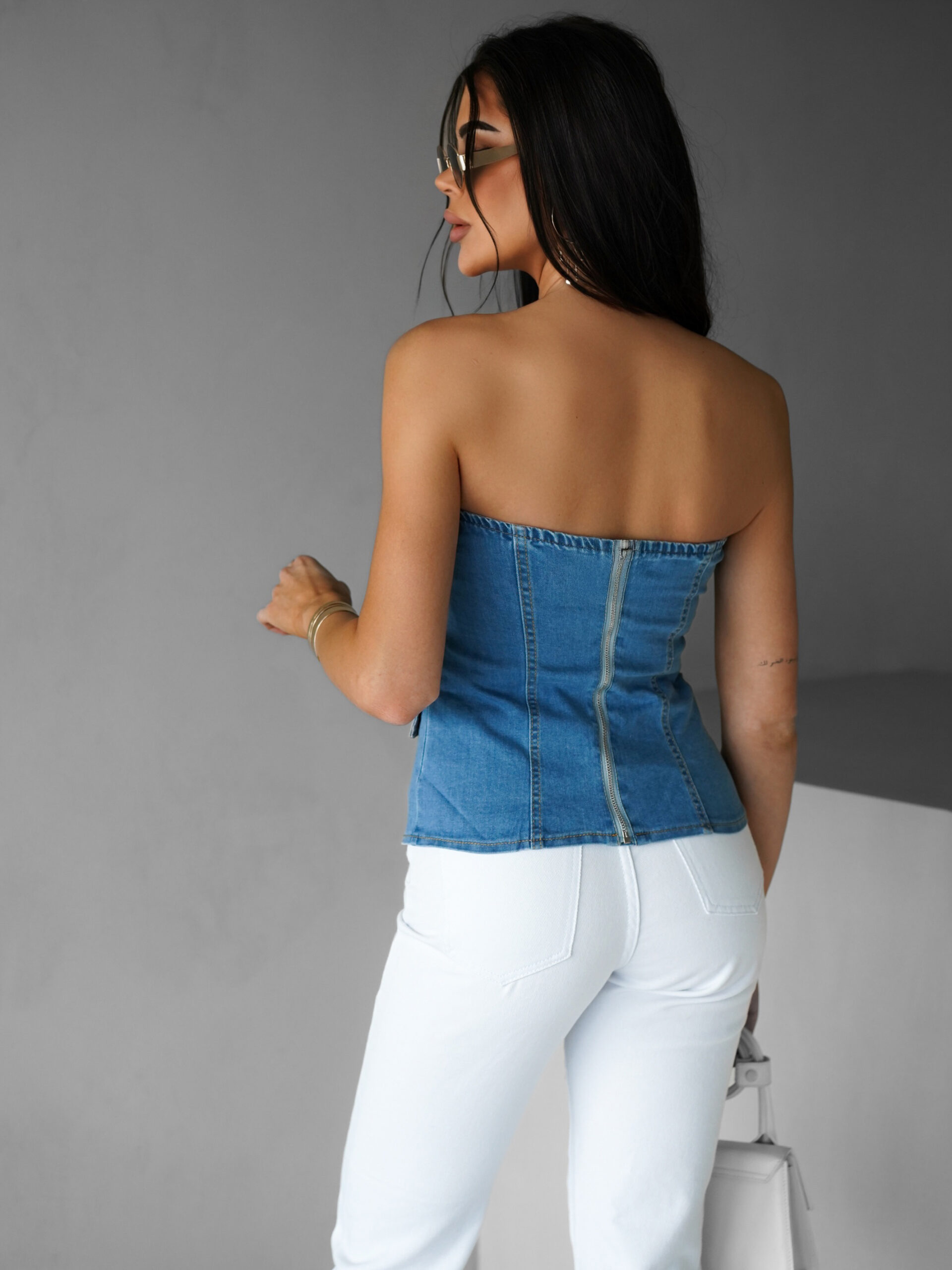 Modrý elegantní denim top ADAUT s mašlí Velikost: S