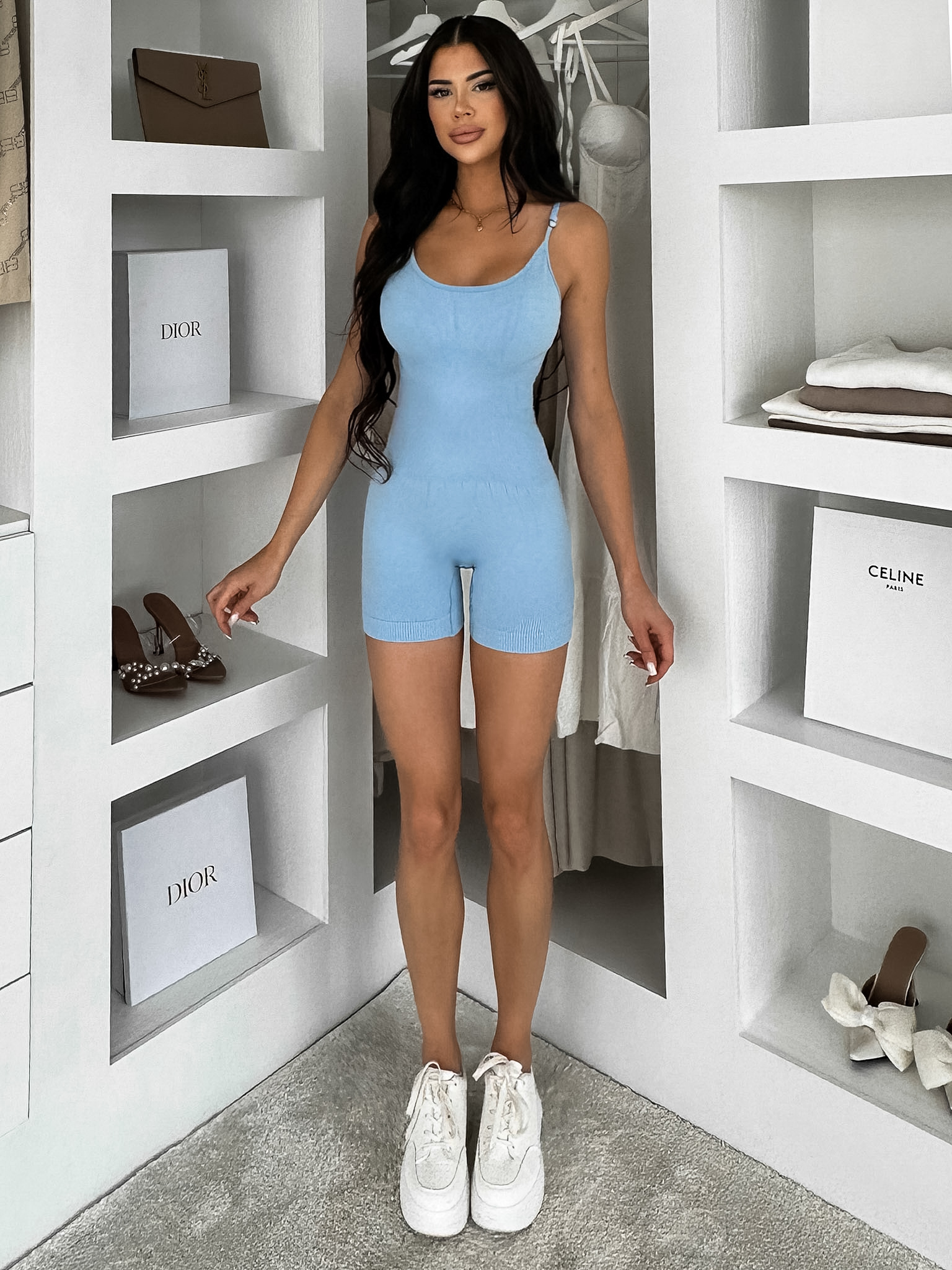 Modrý krátký tvarující overal KRASHA na ramínka Velikost: M/L