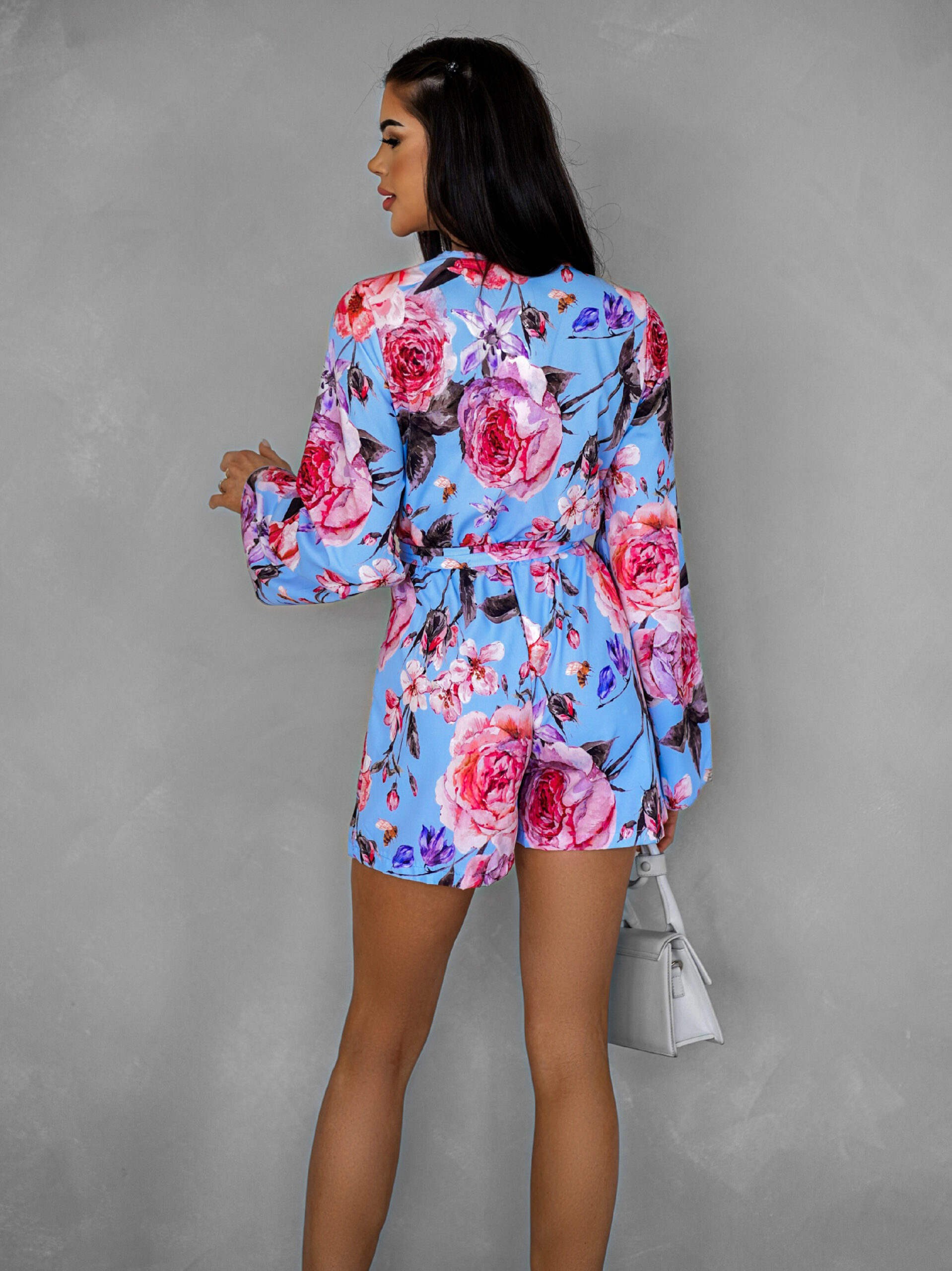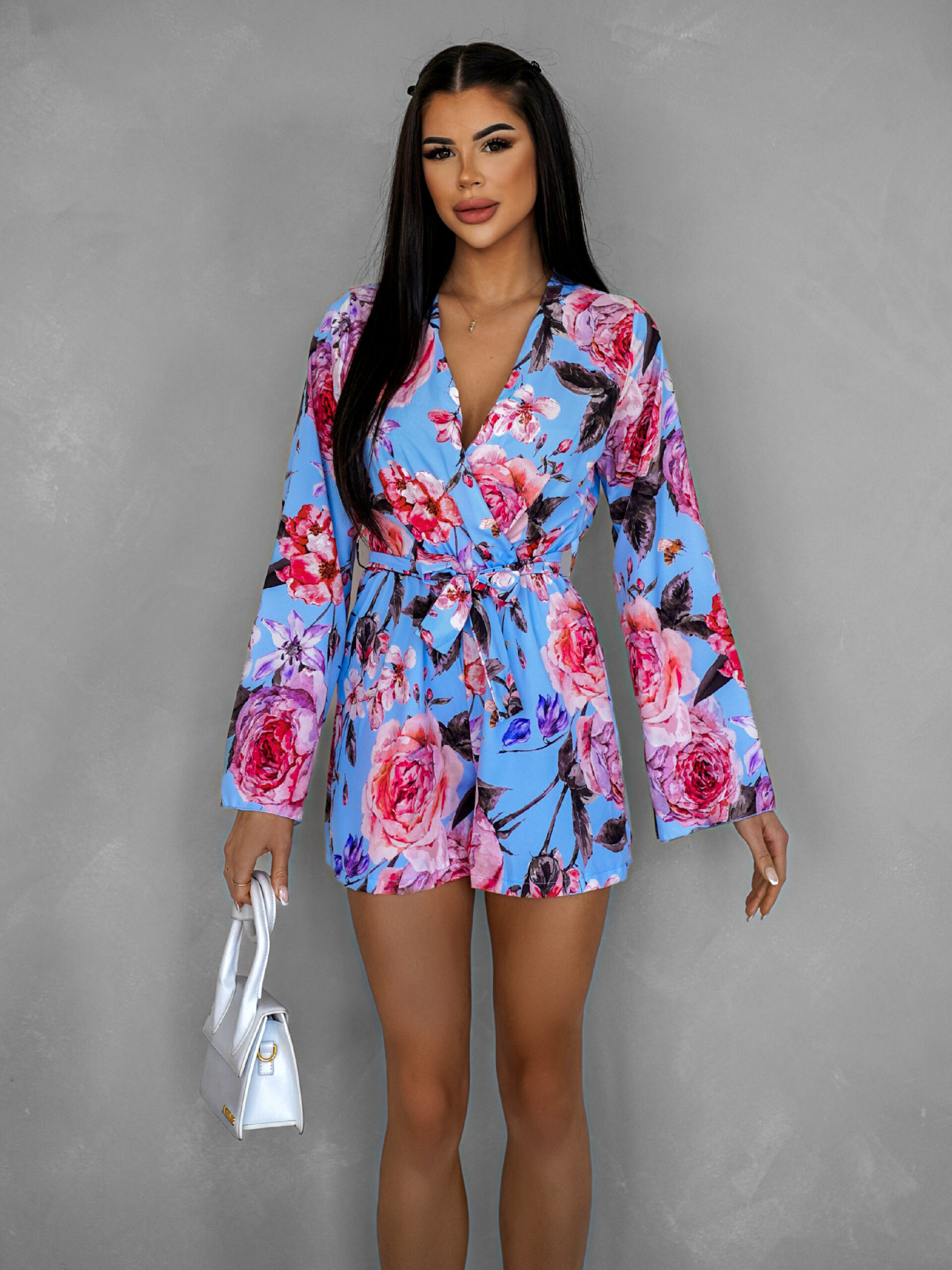 Modrý letní květovaný overal VYSBY s páskem Velikost: ONESIZE