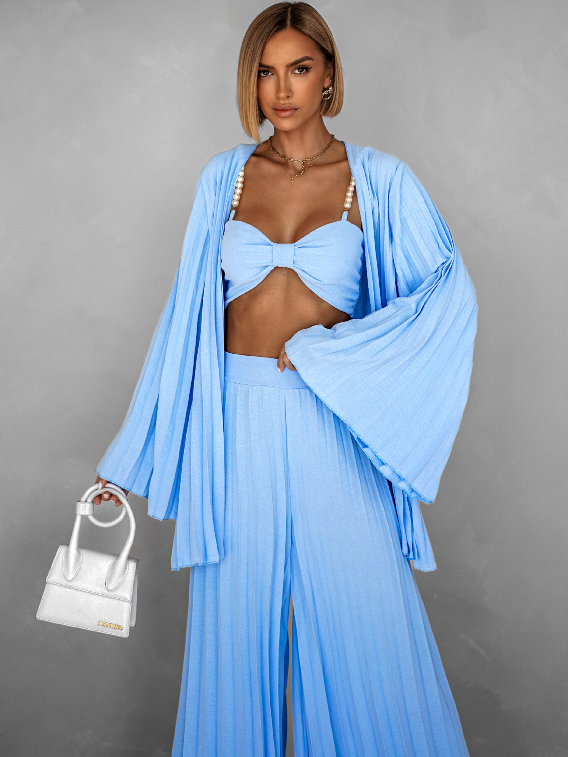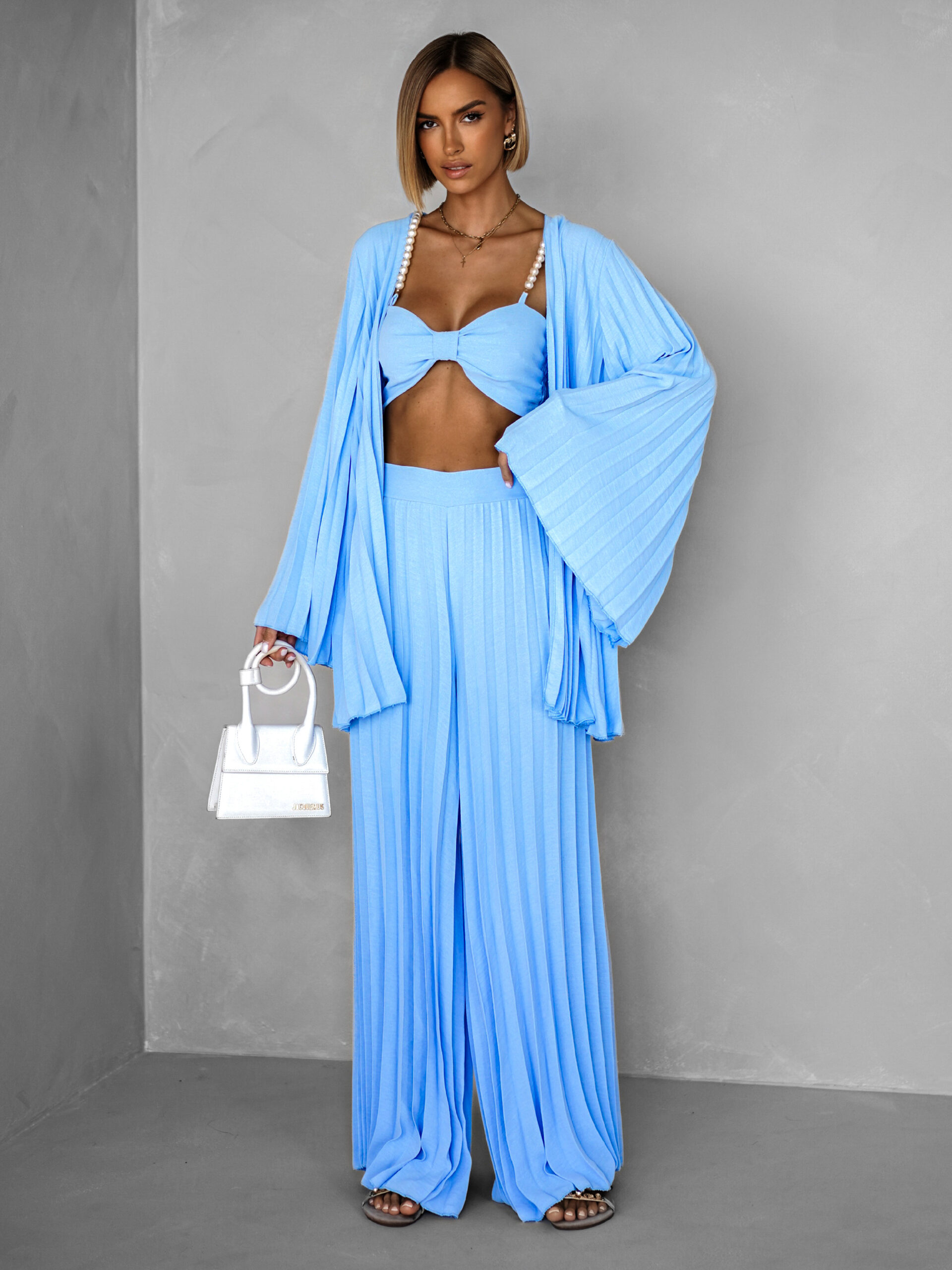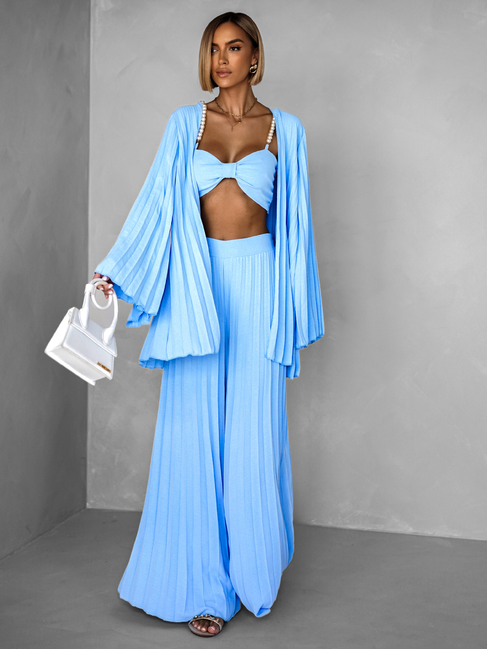Modrý plisovaný saténový komplet MERYSE Velikost: ONESIZE