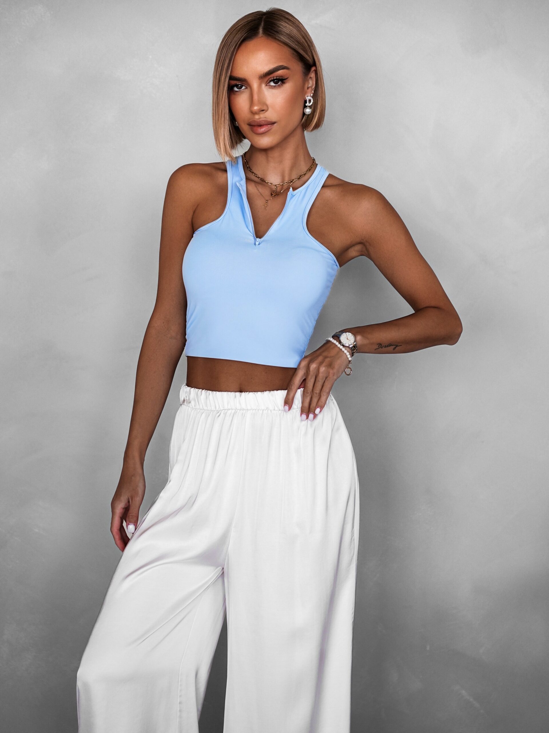Modrý sportovní crop top ALADIN na zip Velikost: ONESIZE