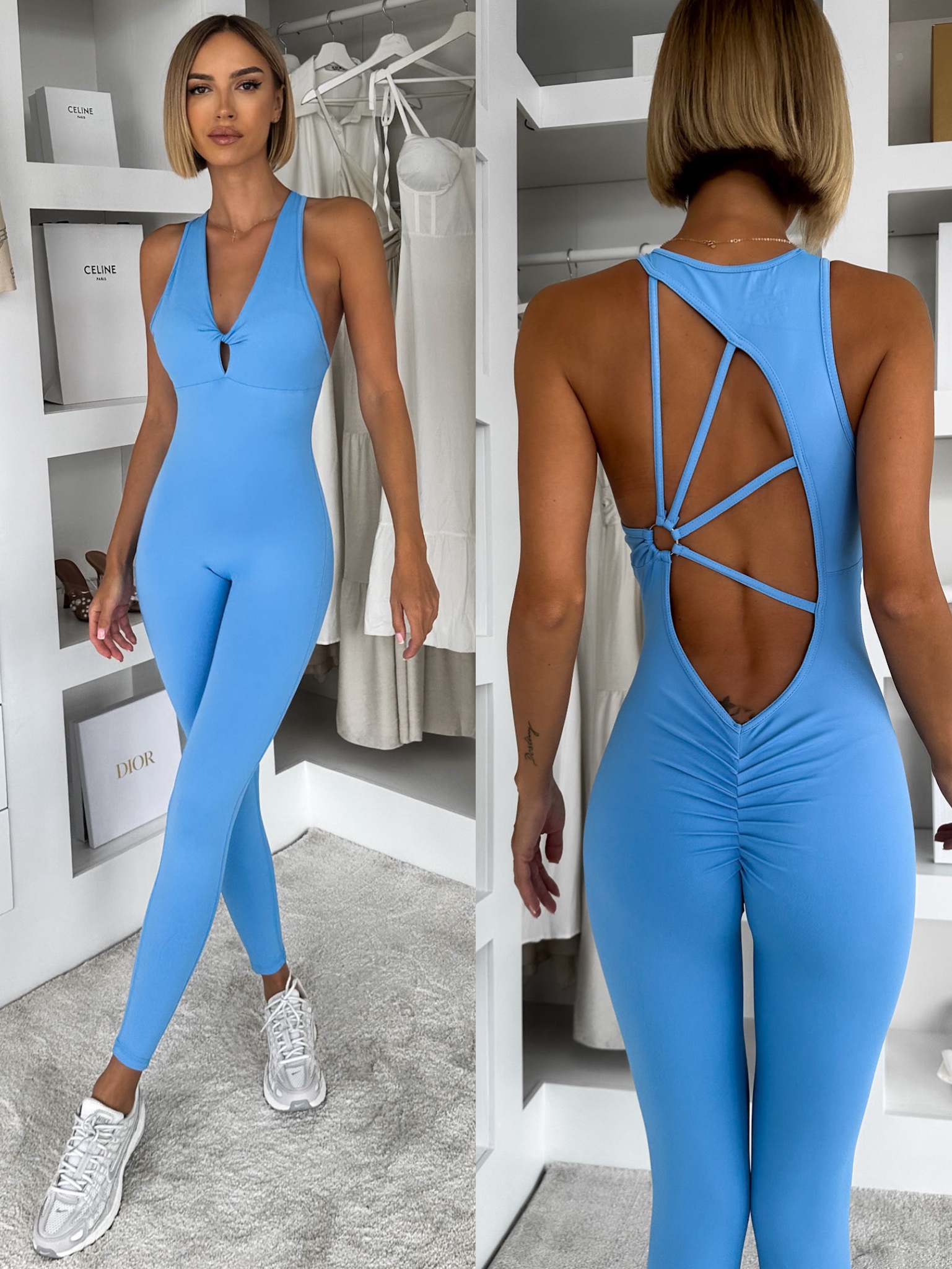 Modrý tvarující dlouhý elastický overal ROSELA Velikost: M/L