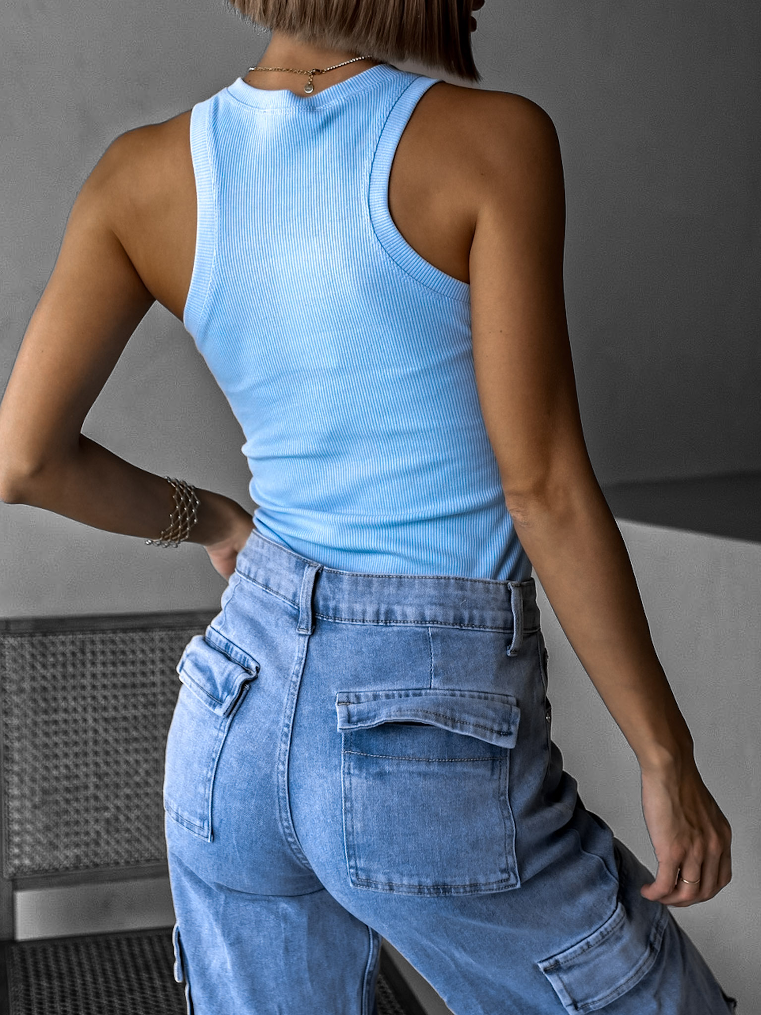 Modrý žebrovaný top MOMMO Velikost: S/M