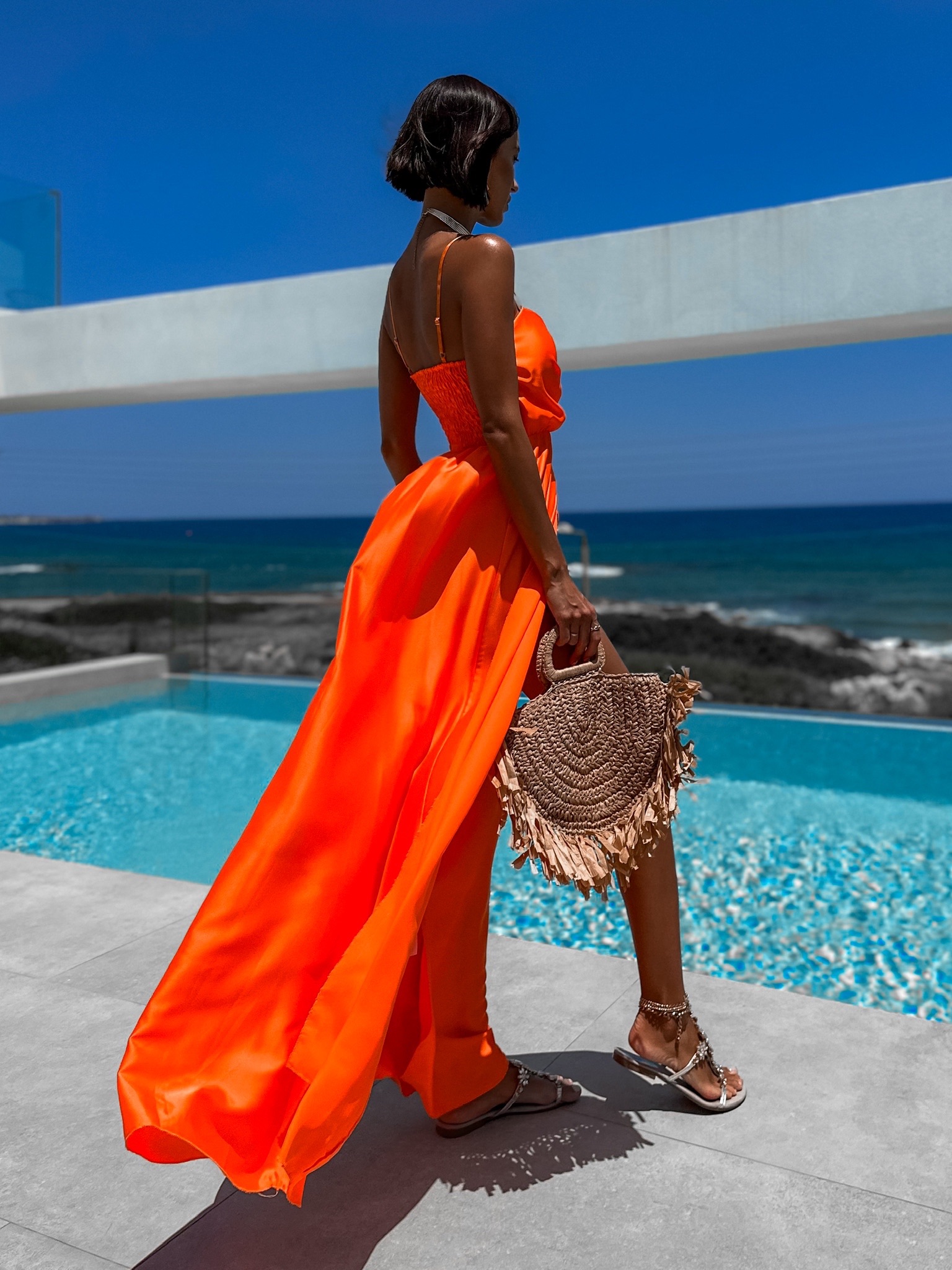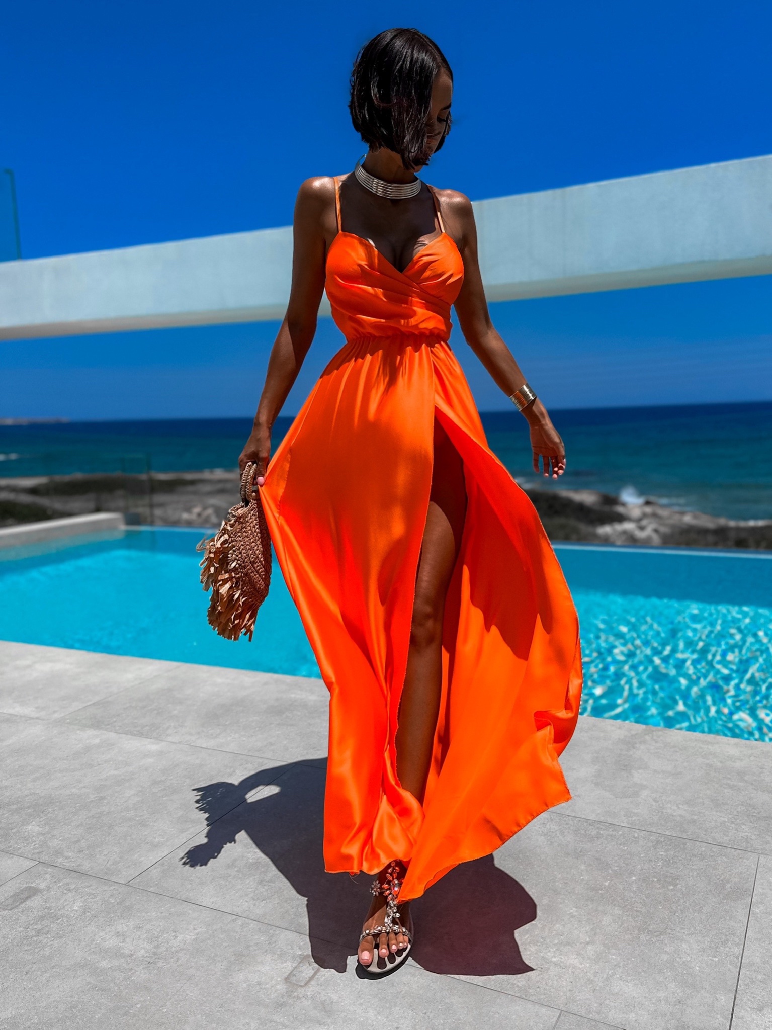 Neon oranžové elegantní šaty PATILLA s rozparkem Velikost: ONESIZE