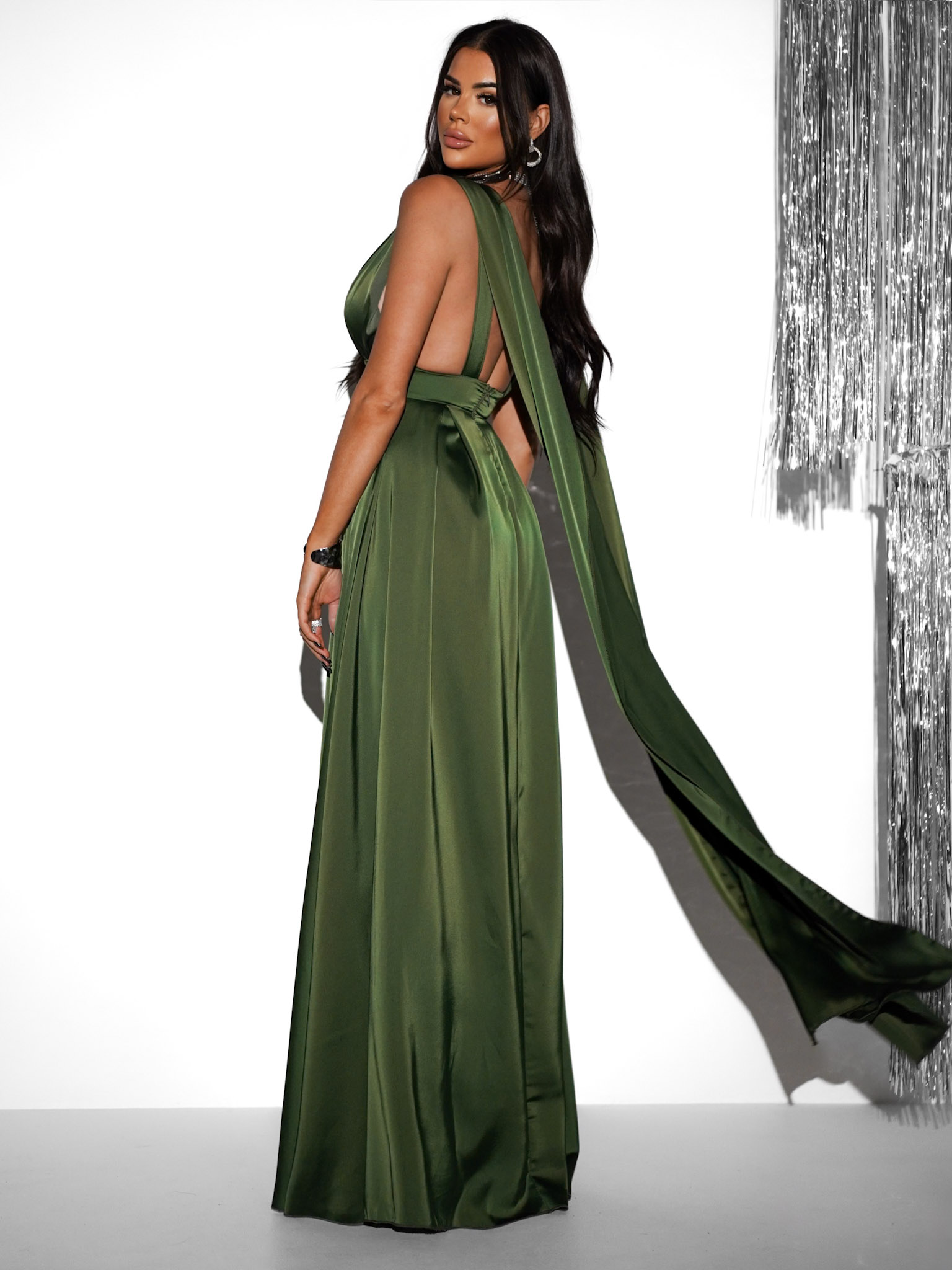 Olivové plesové saténové šaty ARMYTE Velikost: ONESIZE